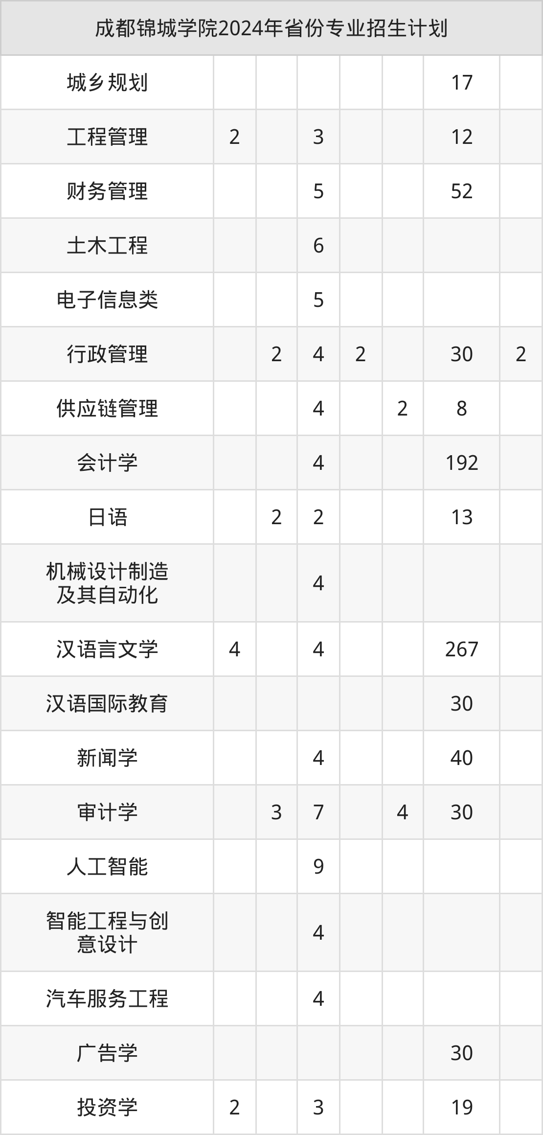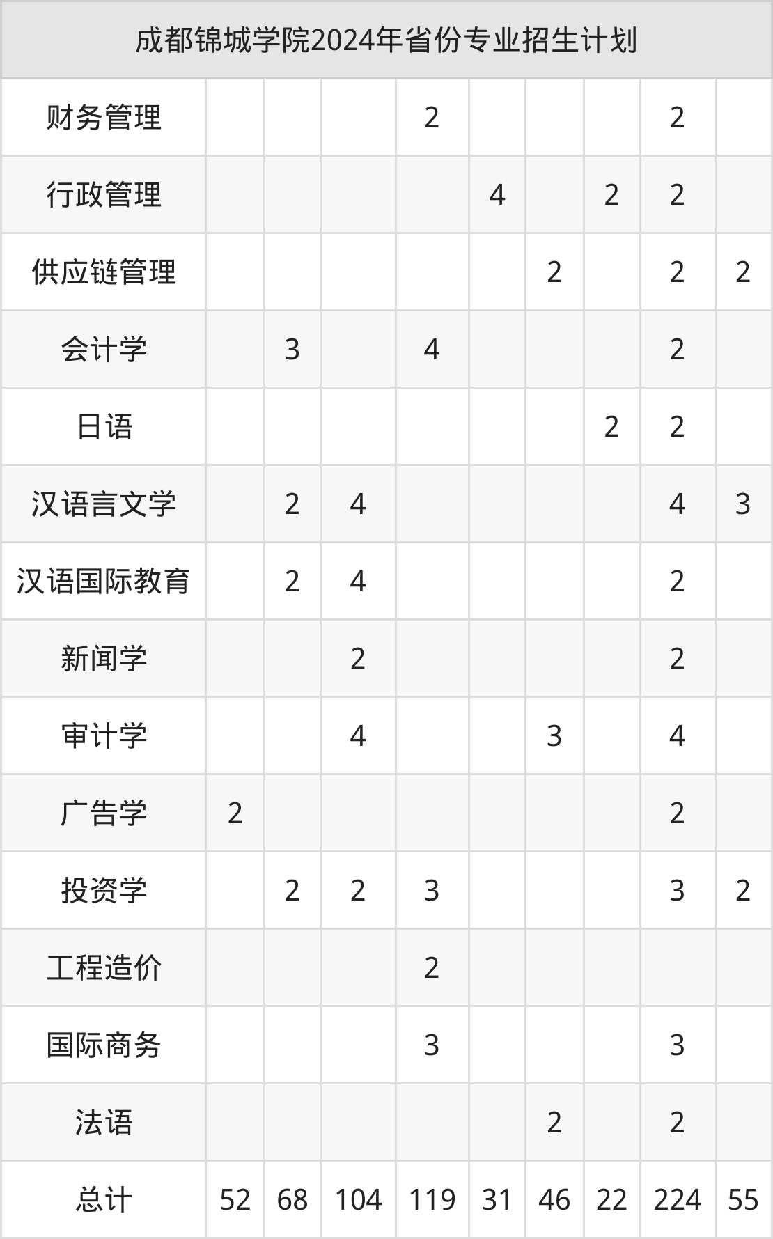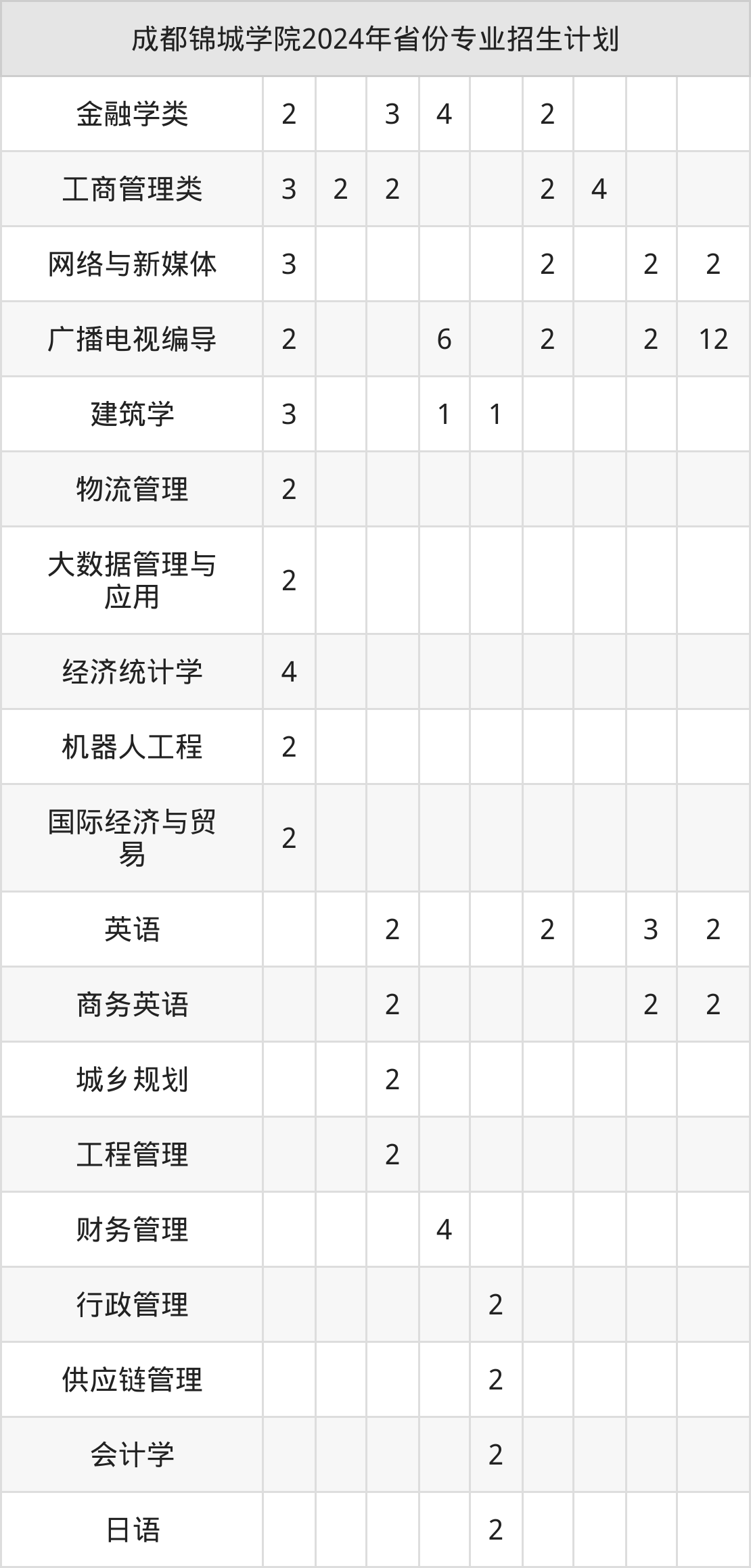 2025年成都锦城学院本科招生计划待公布,下面附上2024年数据,暂供参考: