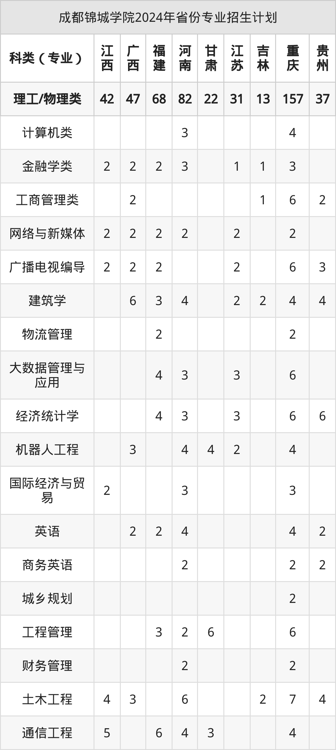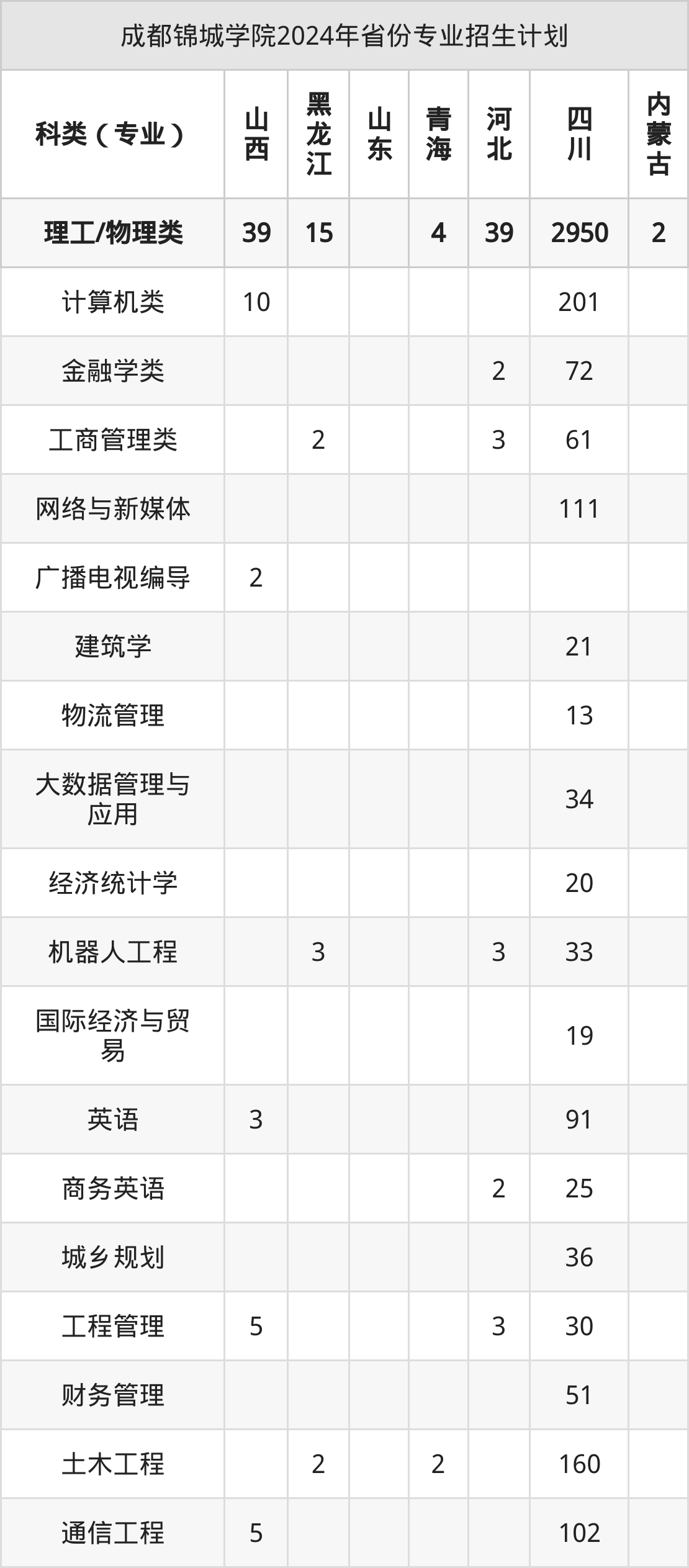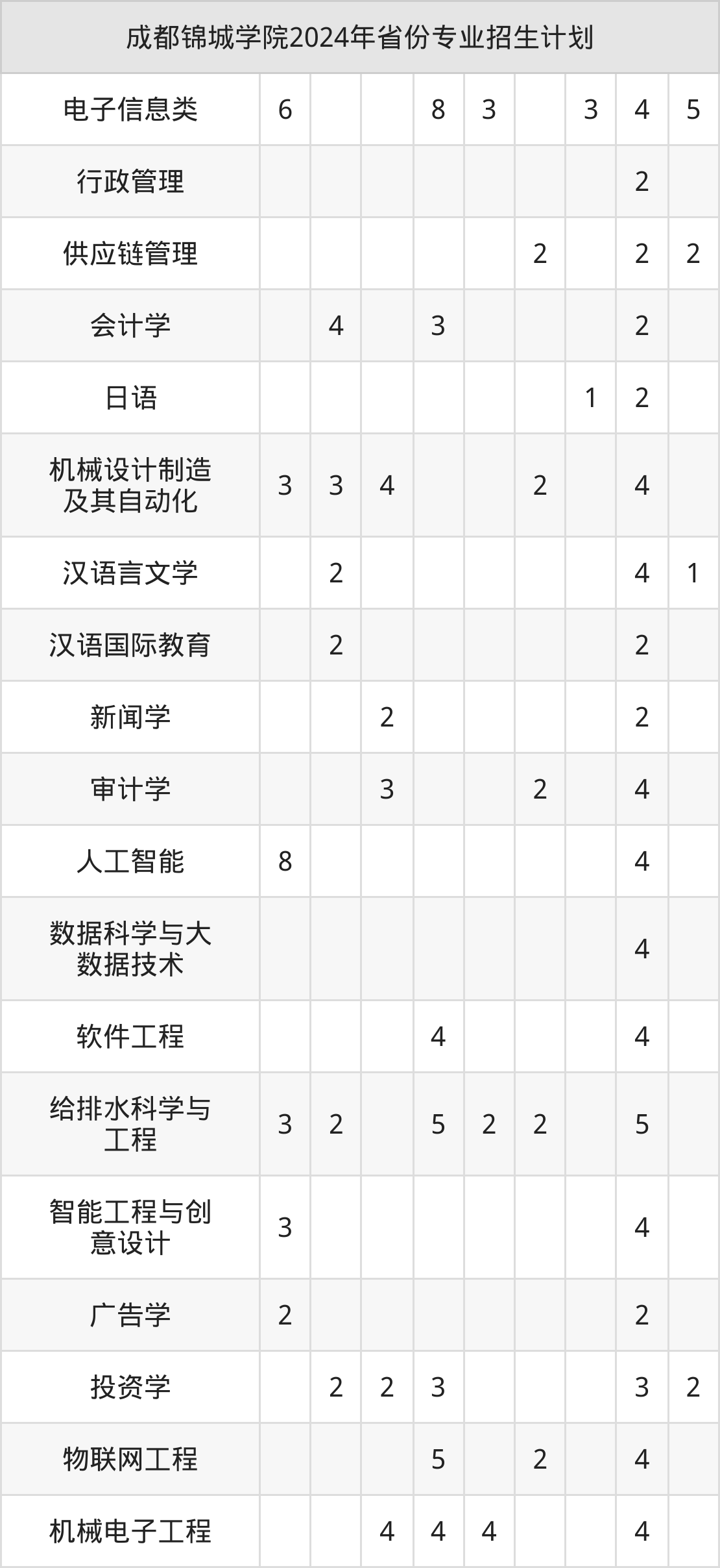 2025年成都锦城学院本科招生计划待公布,下面附上2024年数据,暂供参考: