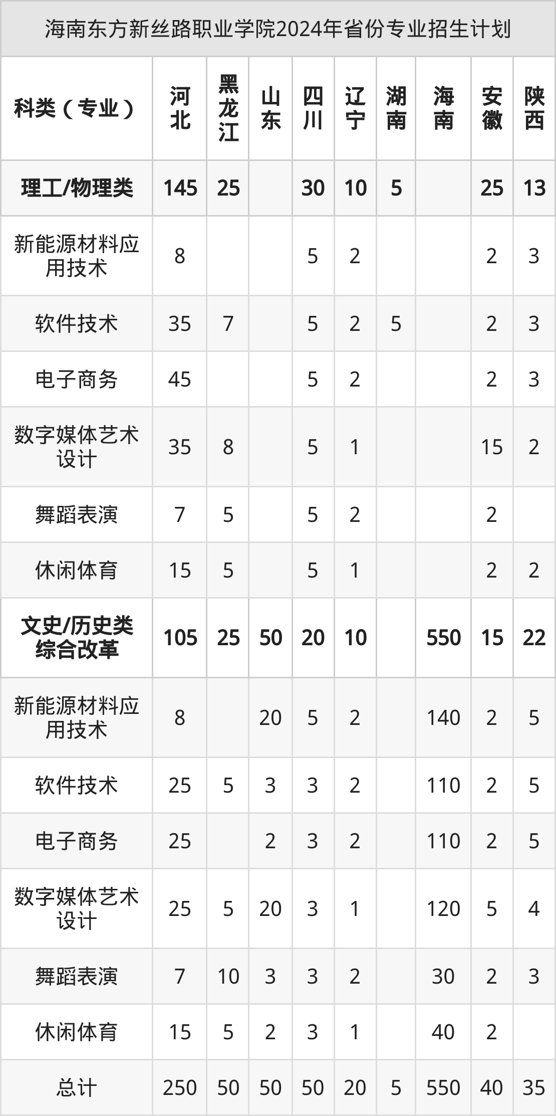 2025年海南东方新丝路职业学院专科招生计划待公布,下面附上2024年数据,暂供参考: