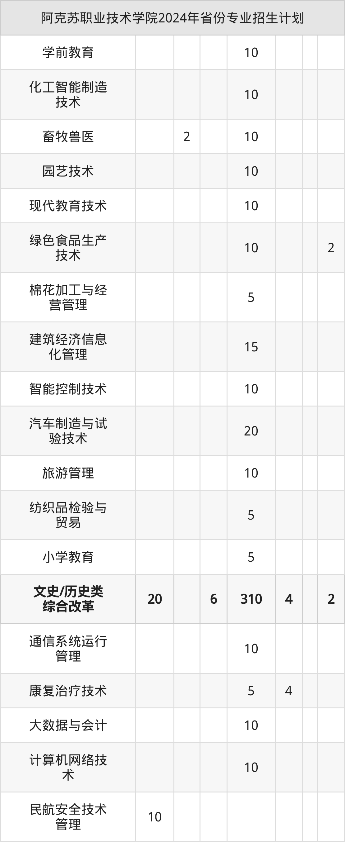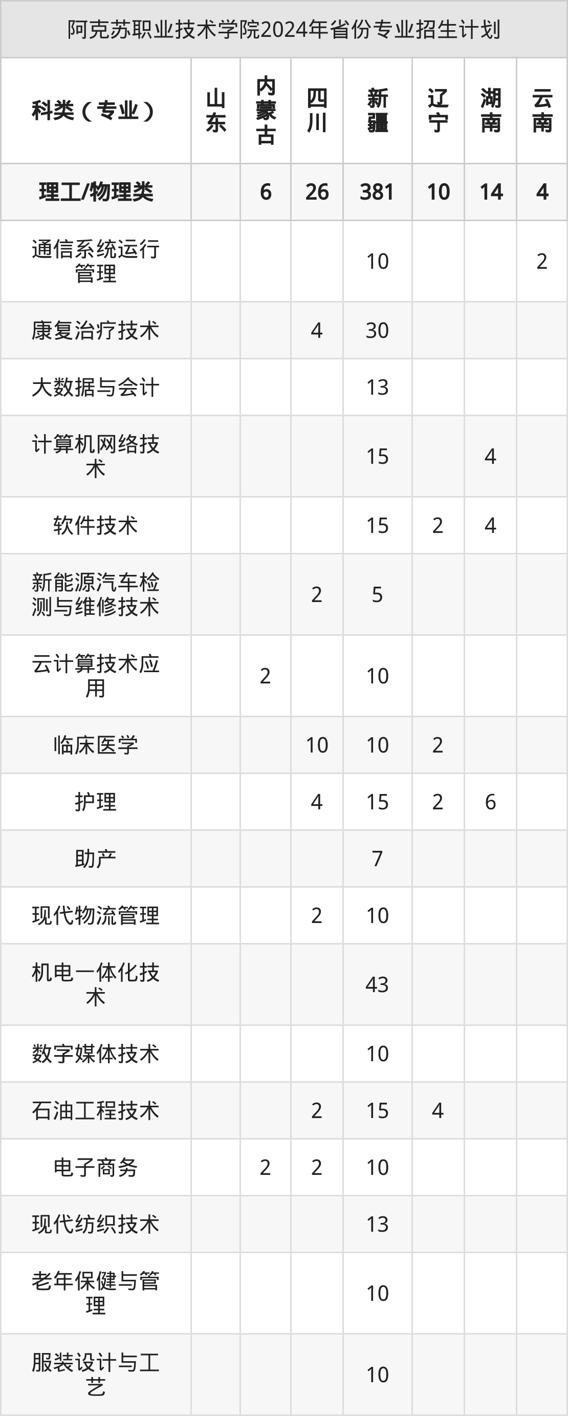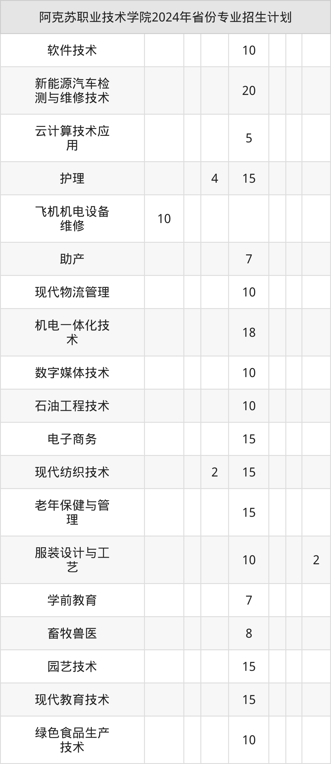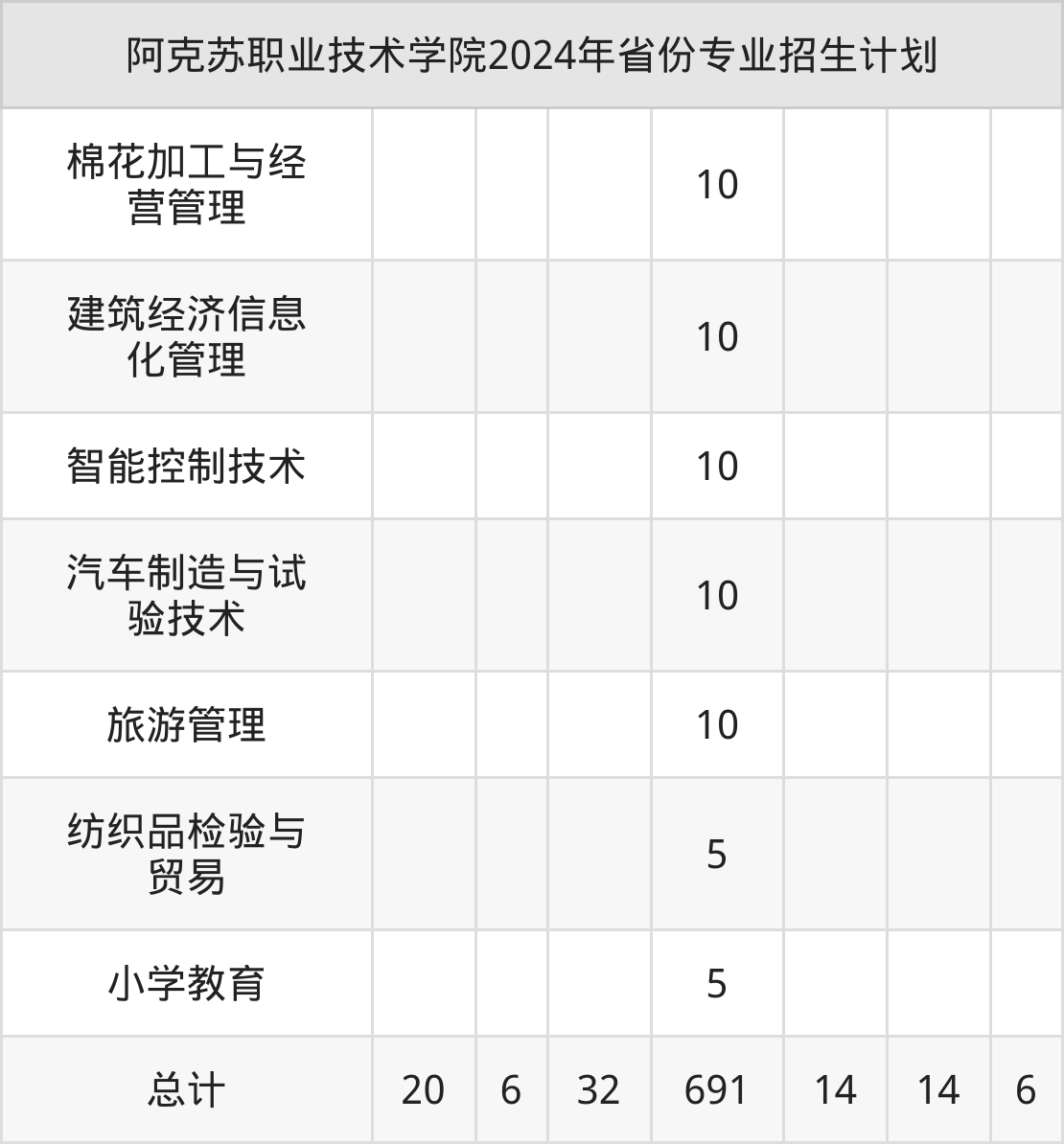 2025年阿克苏职业技术学院专科招生计划待公布,下面附上2024年数据,暂供参考: