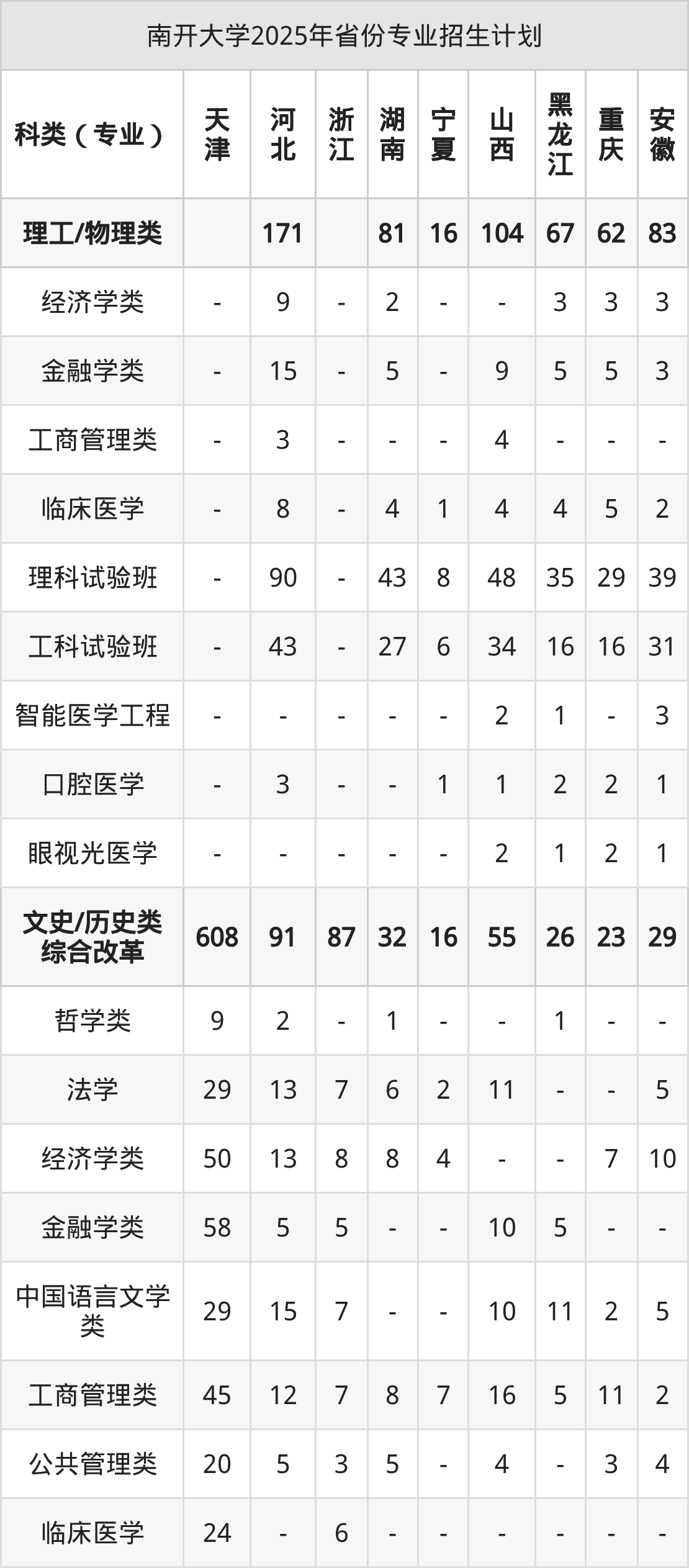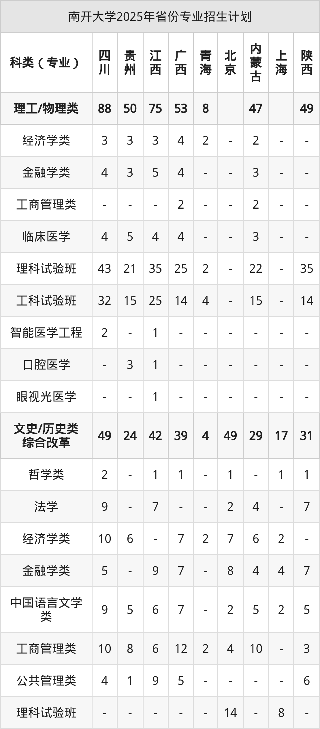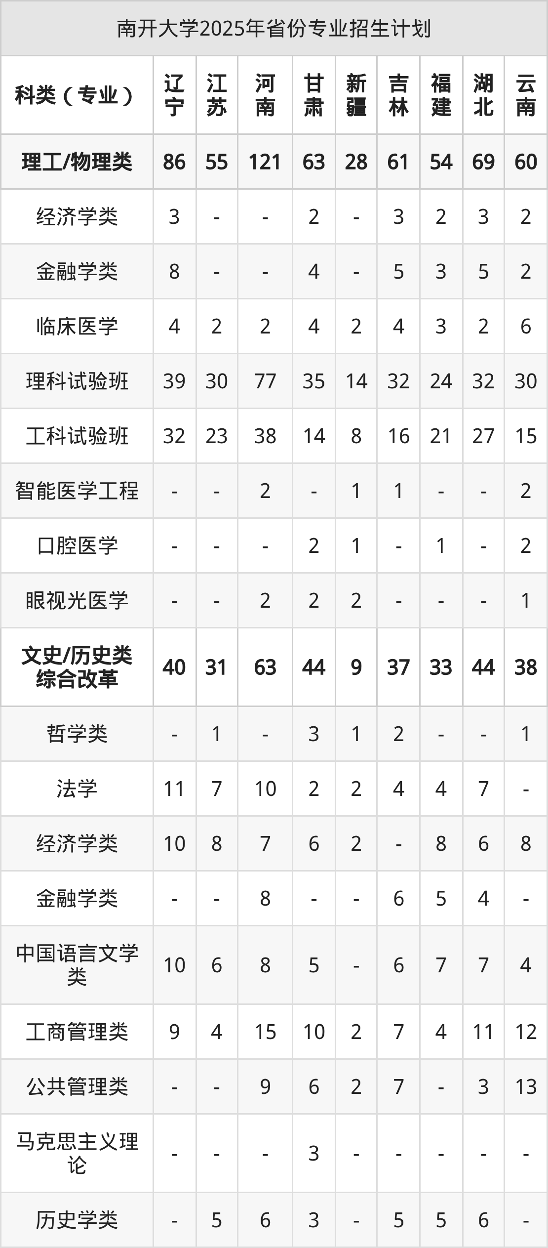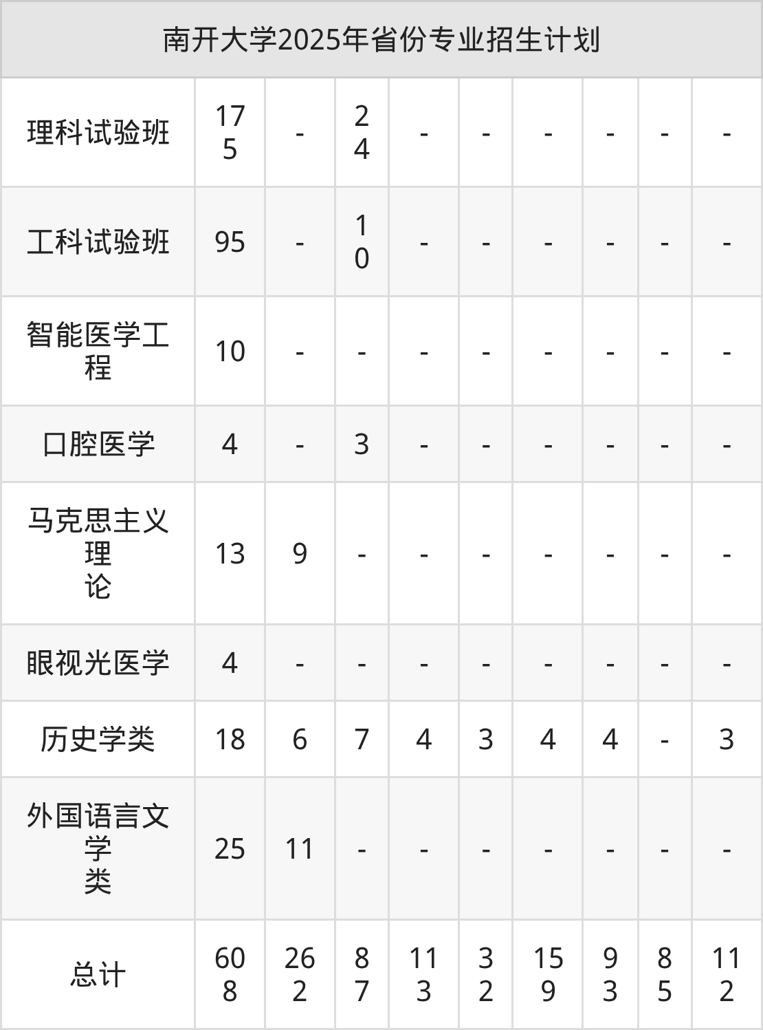 2026年南开大学本科招生计划待公布,下面附上2025年数据,暂供参考: