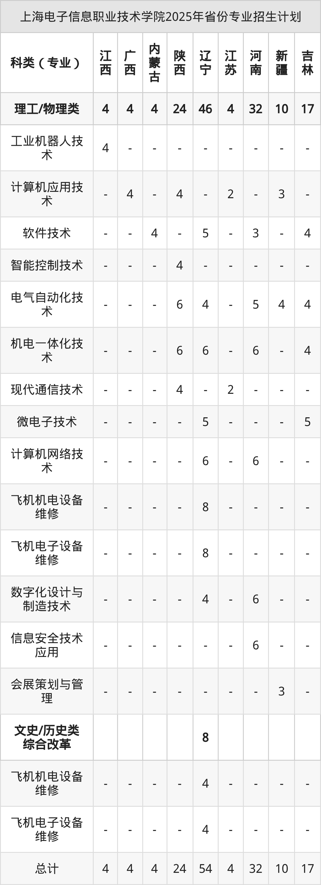 2026年上海电子信息职业技术学院专科招生计划待公布,下面附上2025年数据,暂供参考: