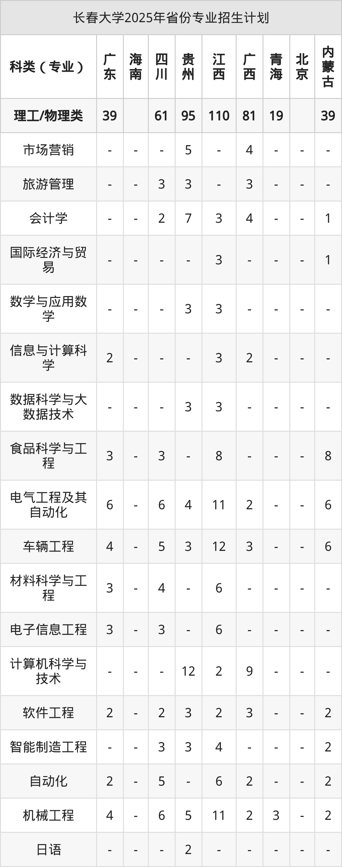 二、长春大学2025年招生计划