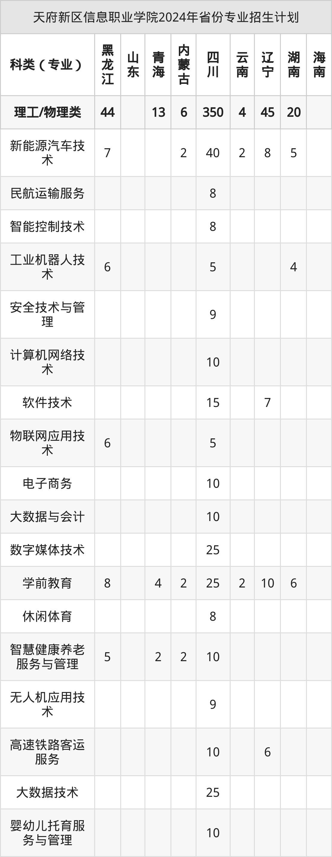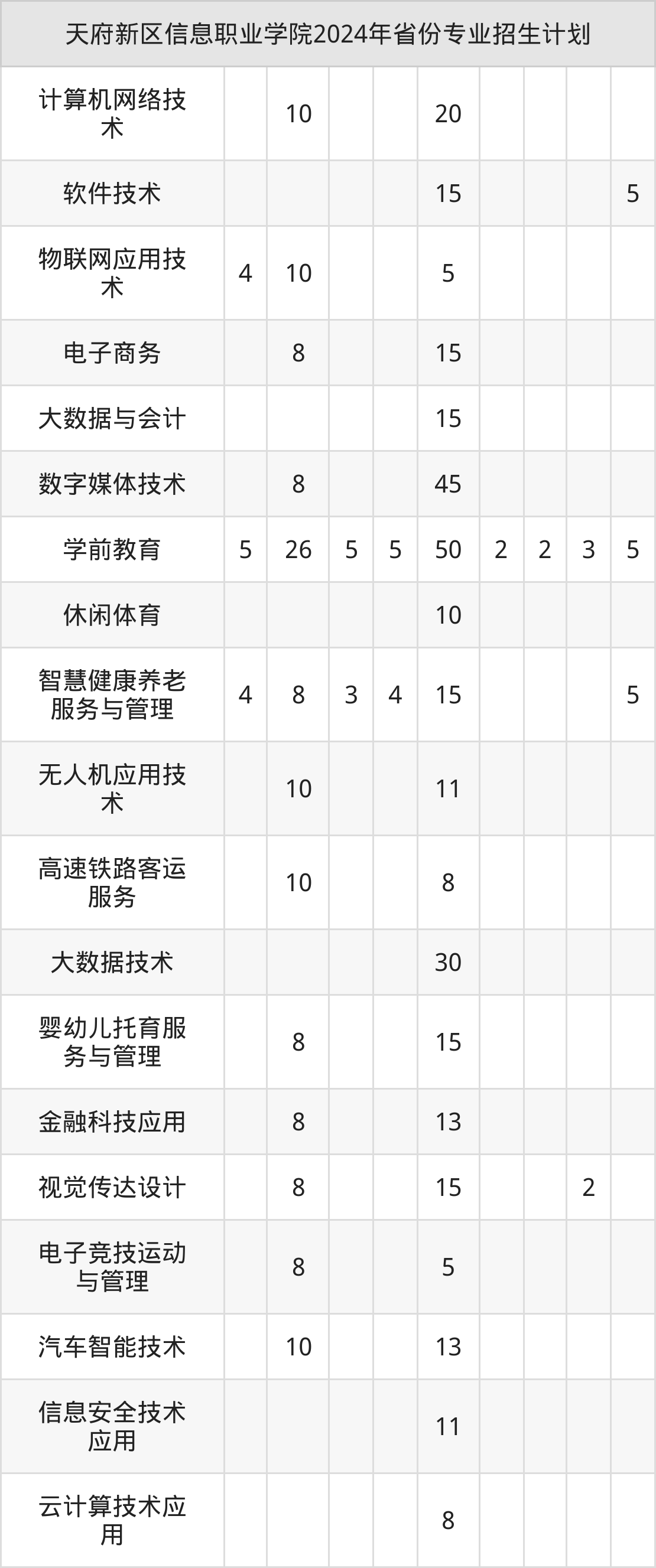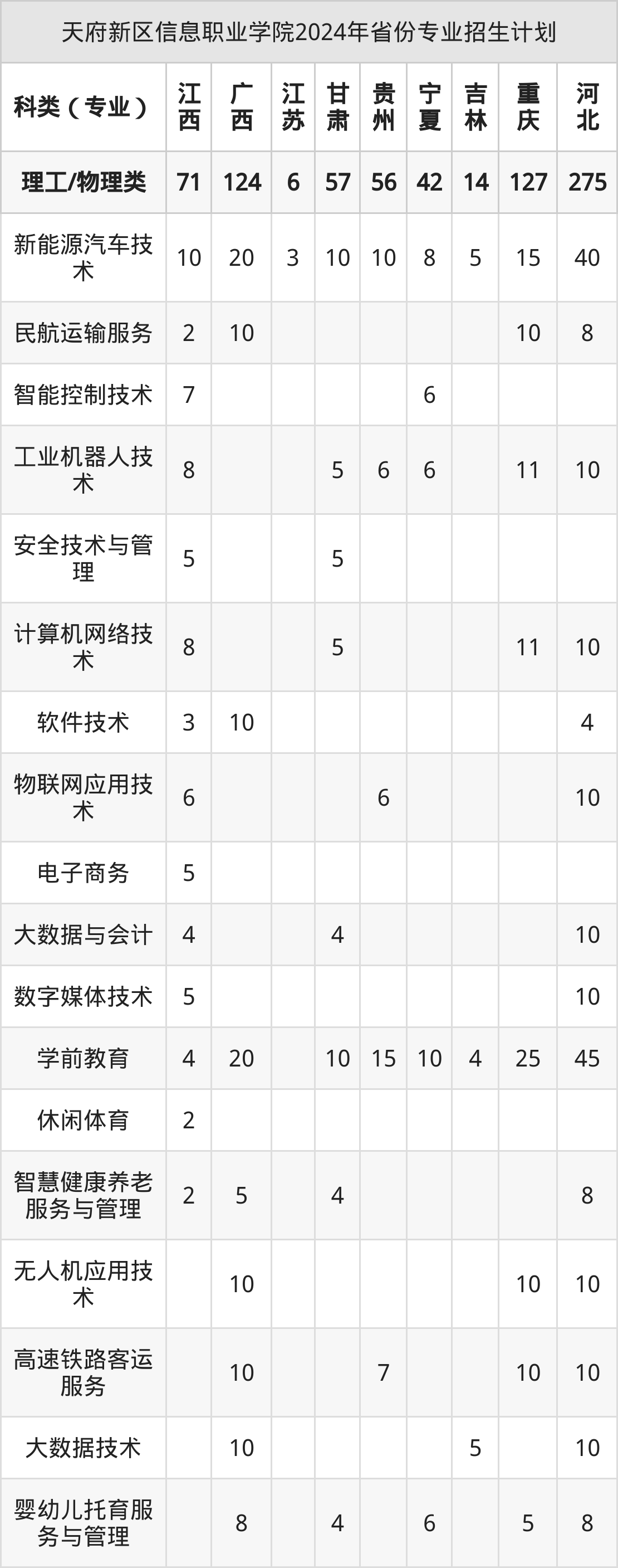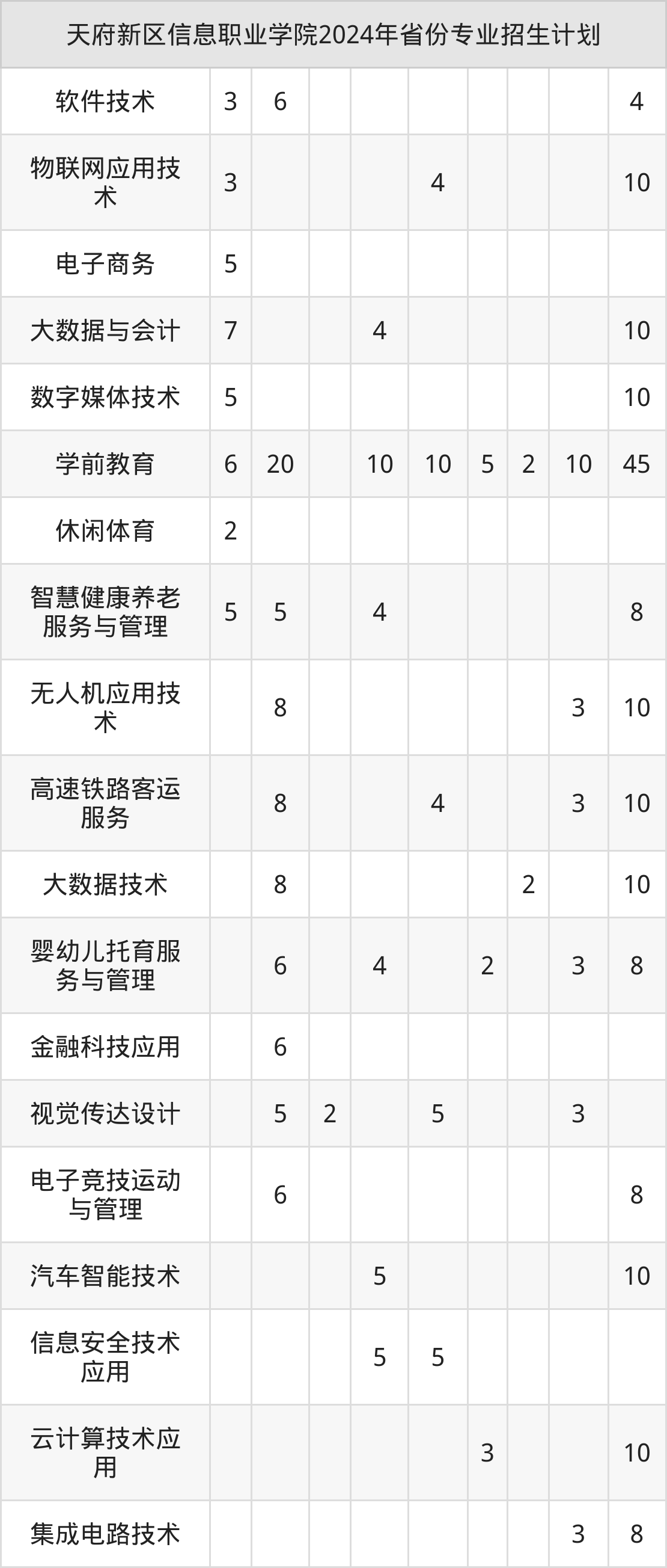 2025年天府新区信息职业学院专科招生计划待公布,下面附上2024年数据,暂供参考: