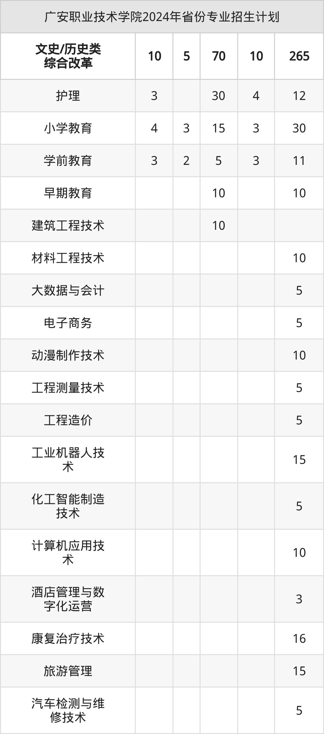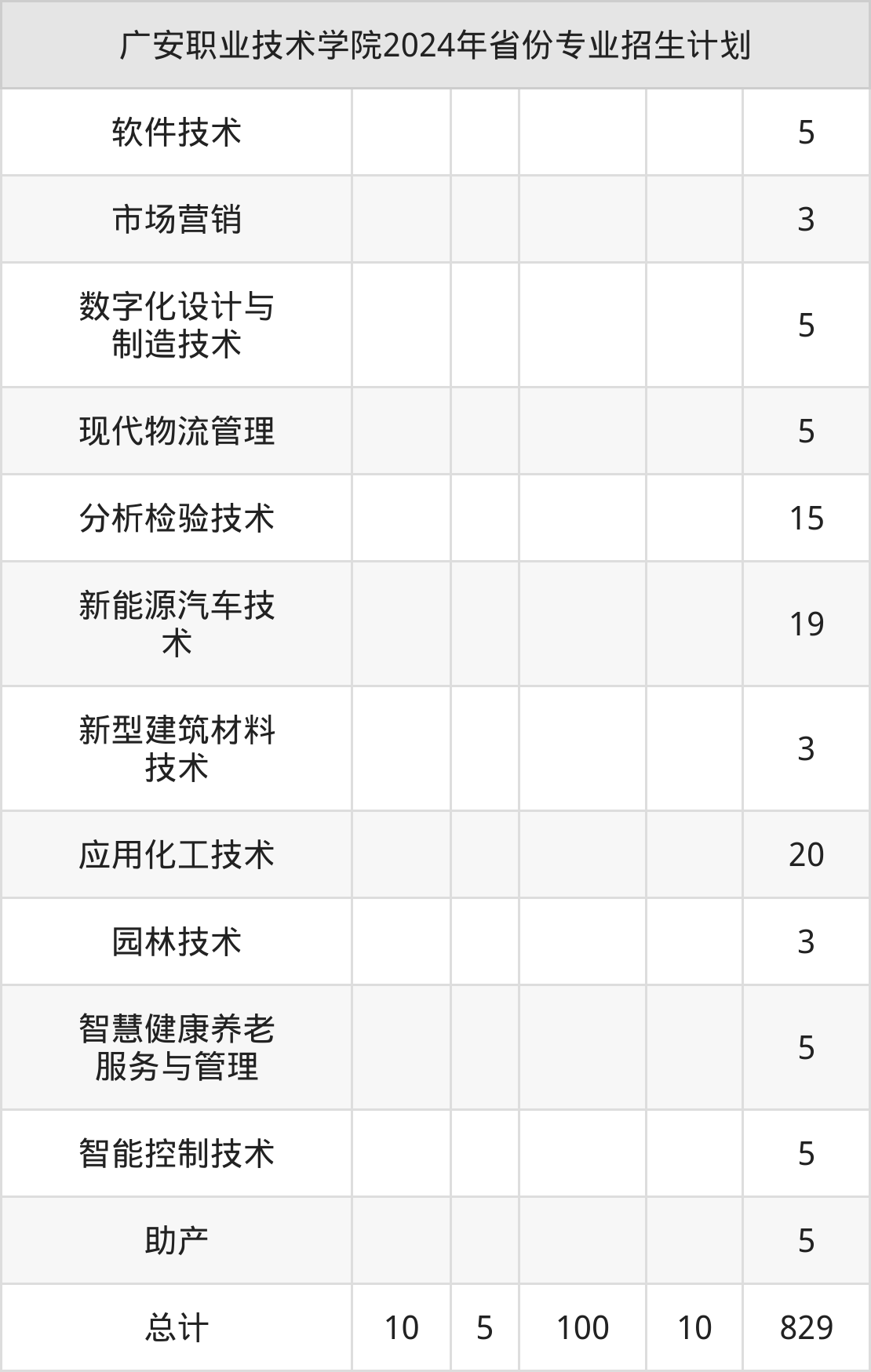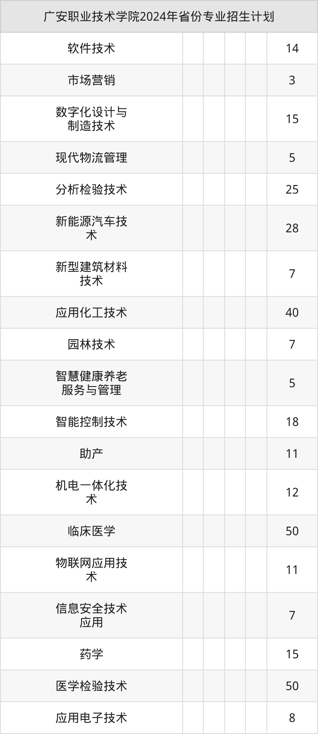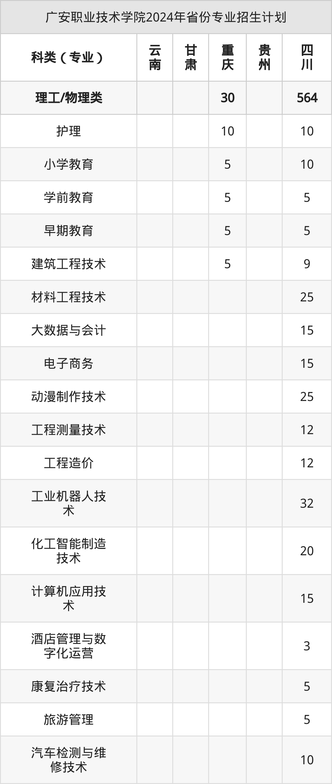 2025年广安职业技术学院专科招生计划待公布,下面附上2024年数据,暂供参考: