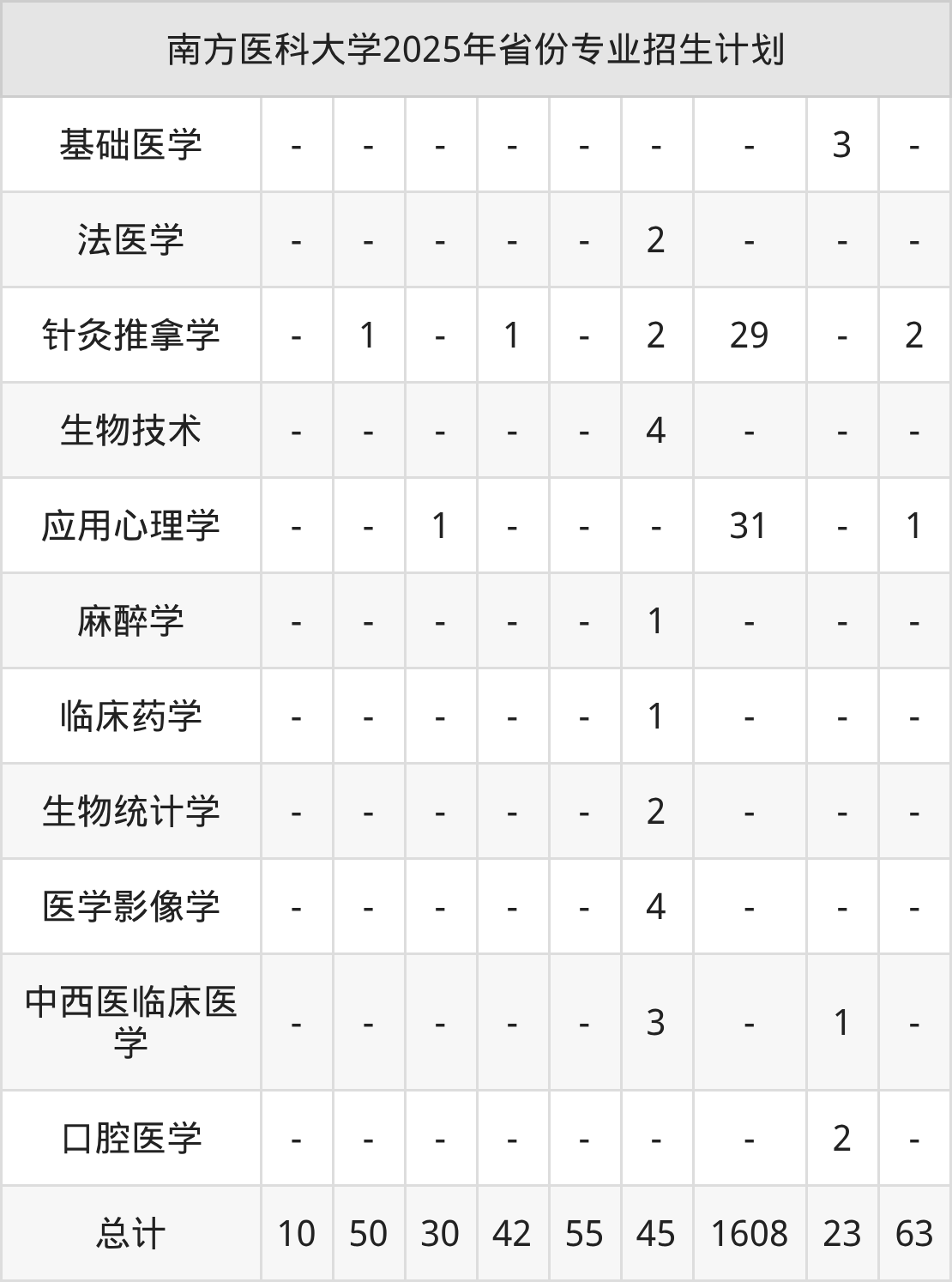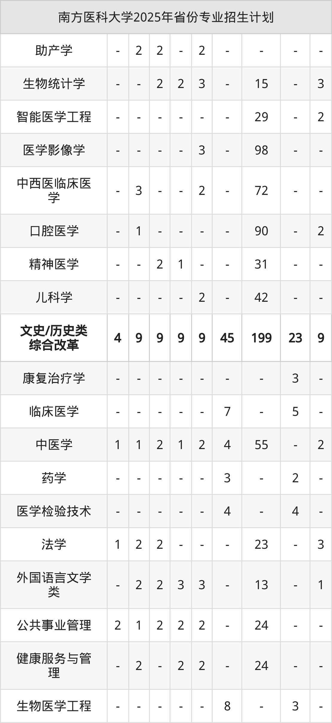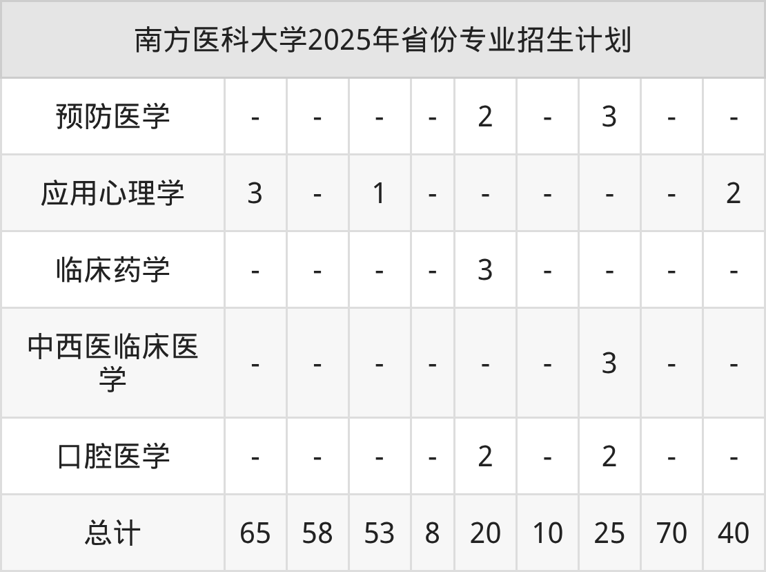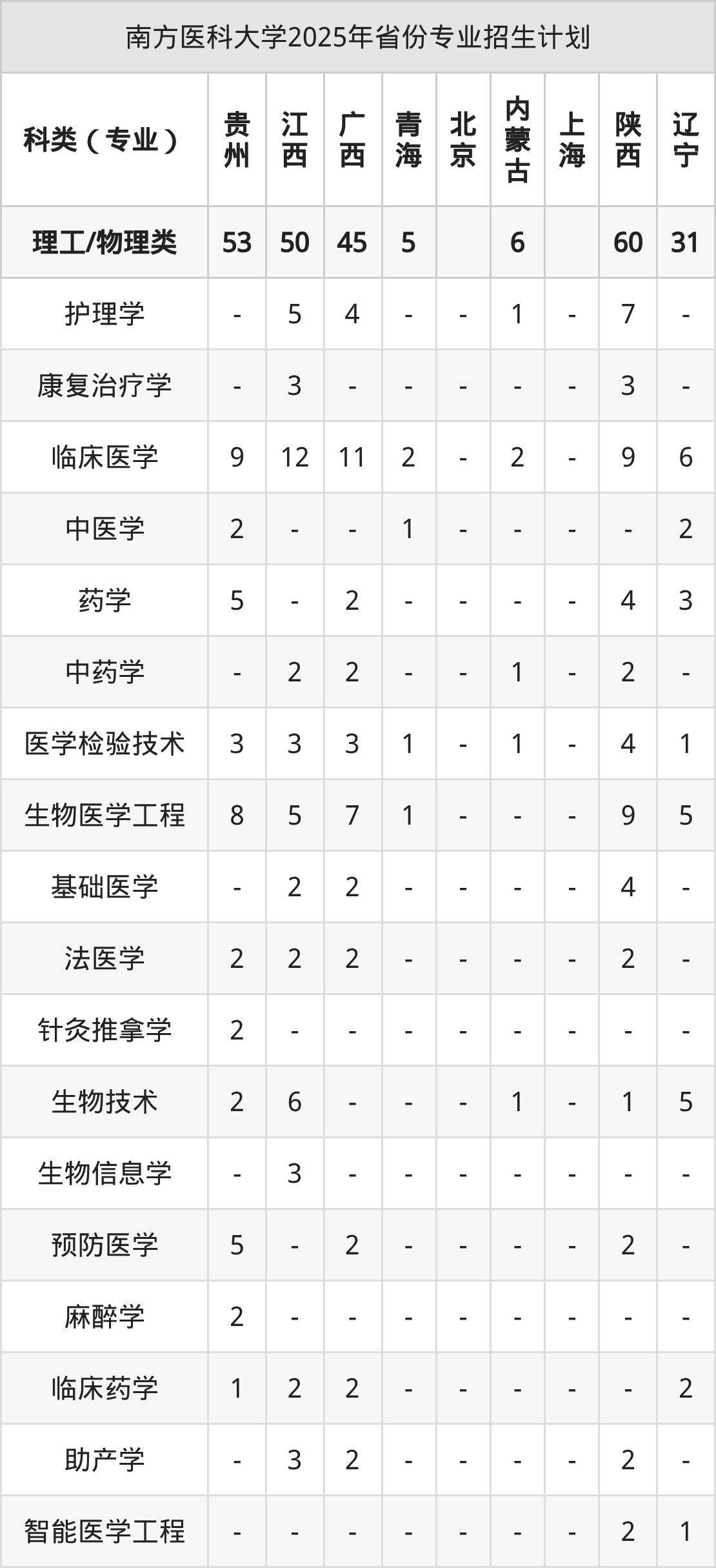 2026年南方医科大学本科招生计划待公布,下面附上2025年数据,暂供参考:
