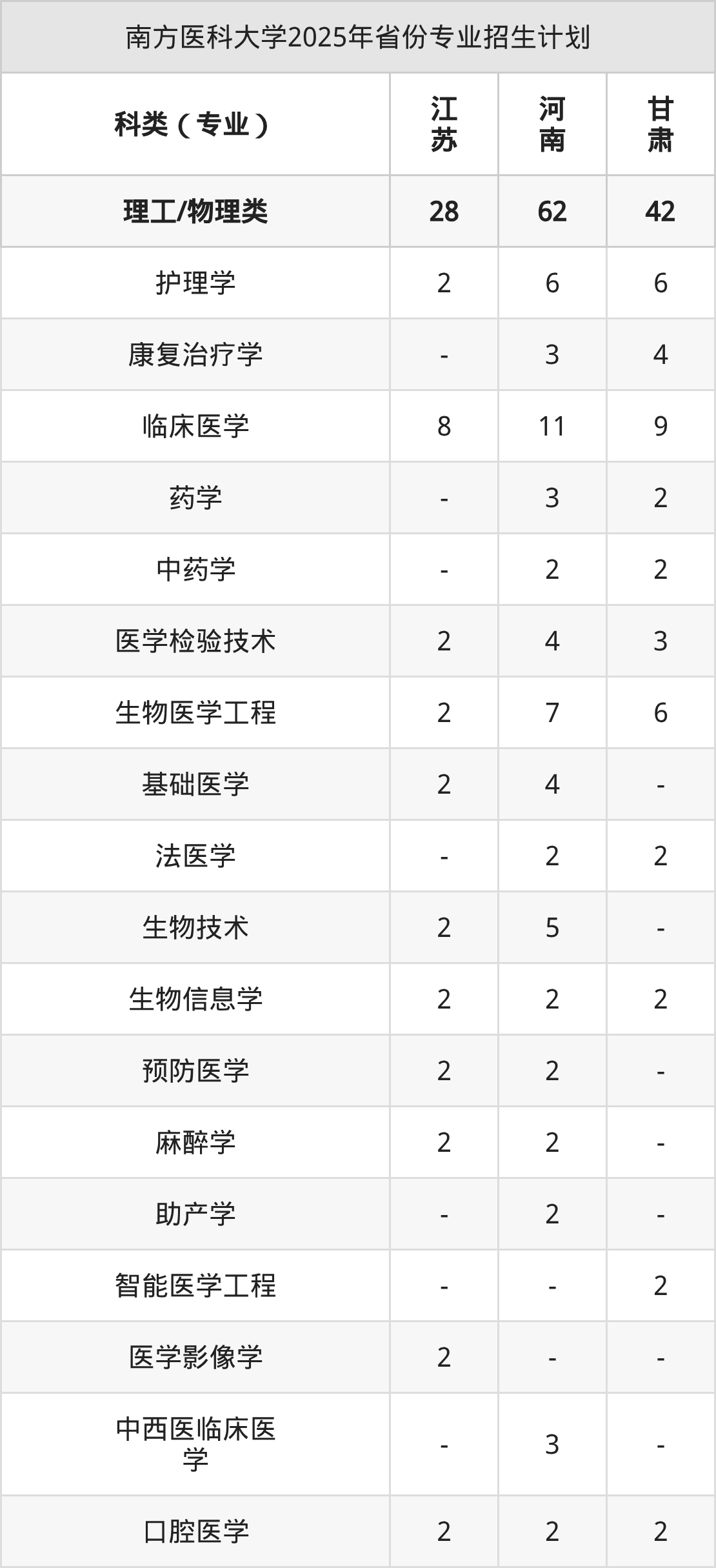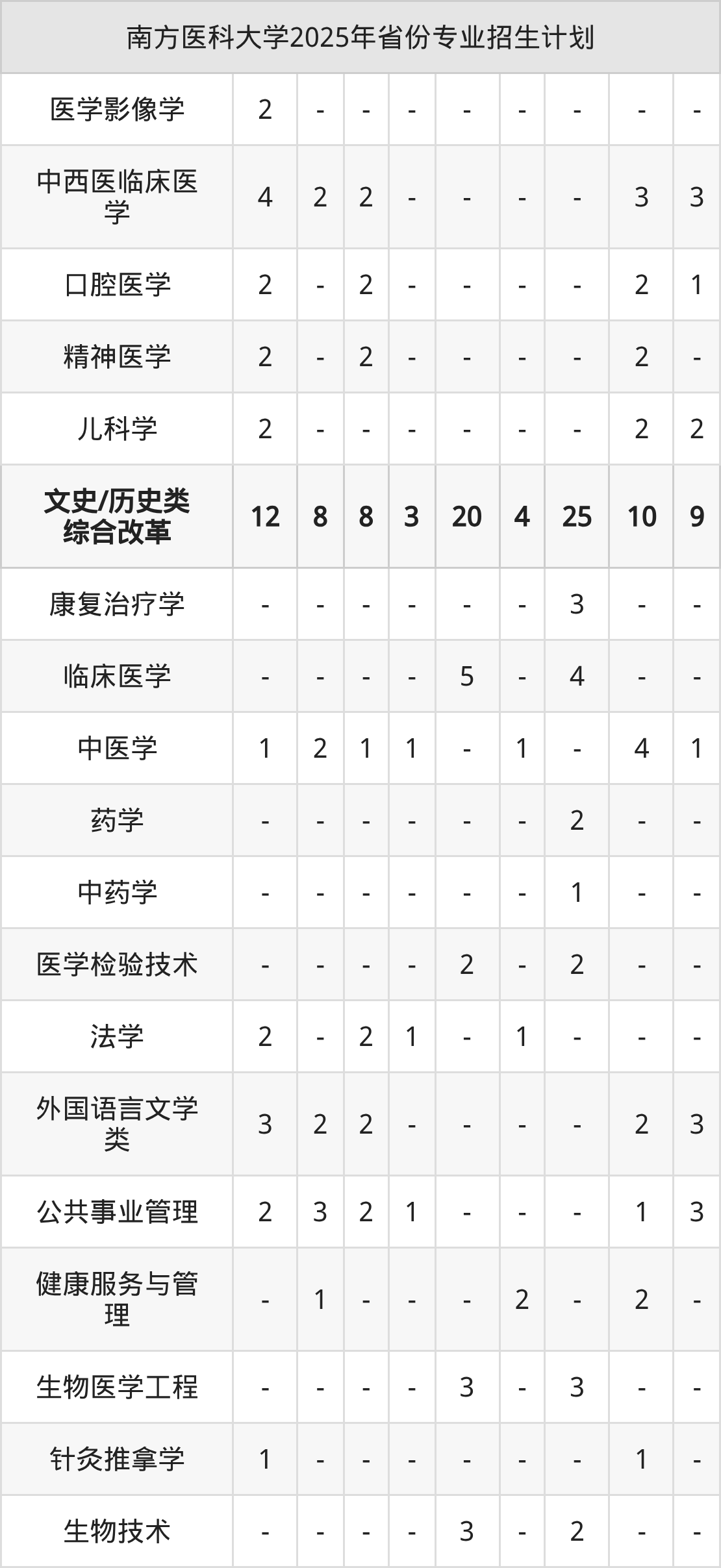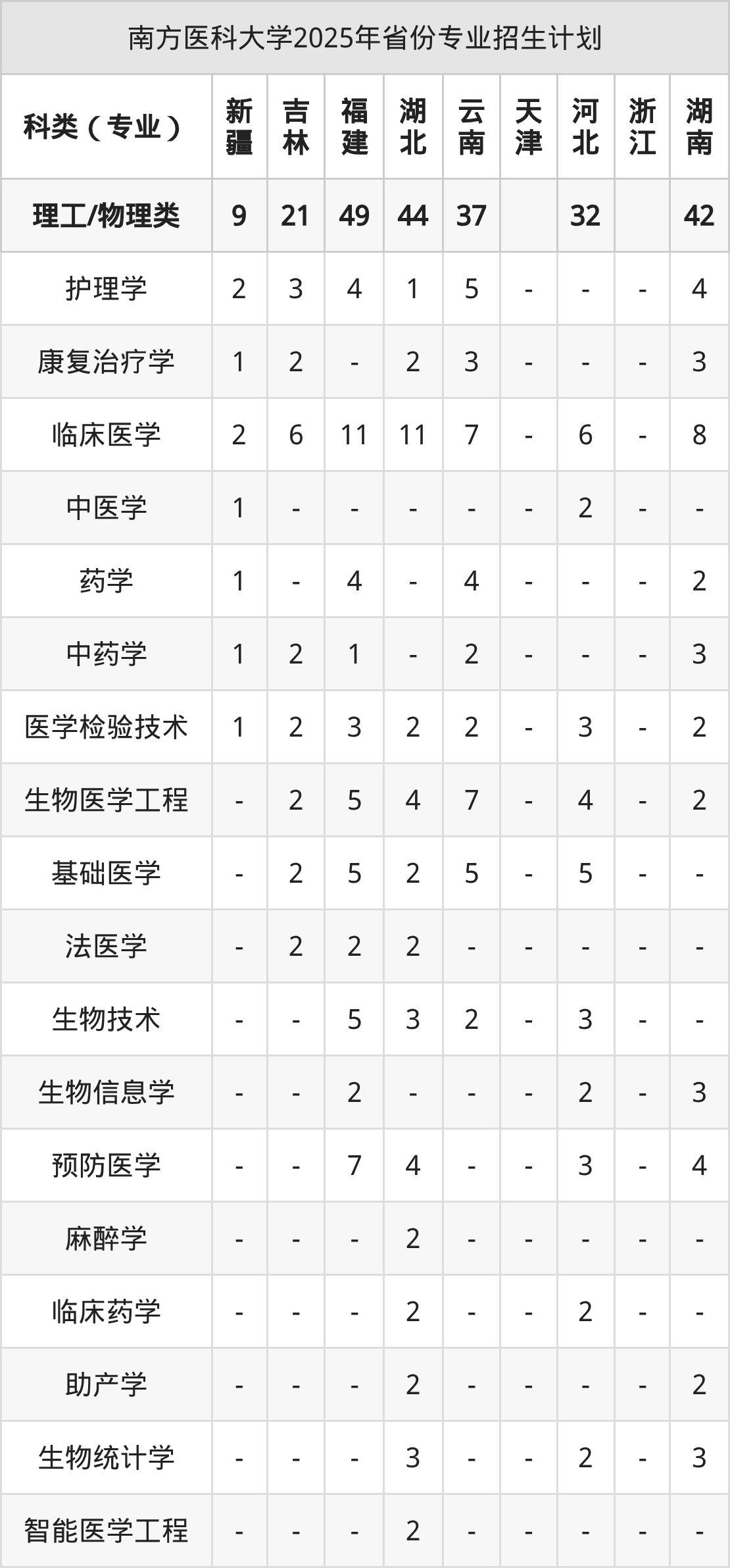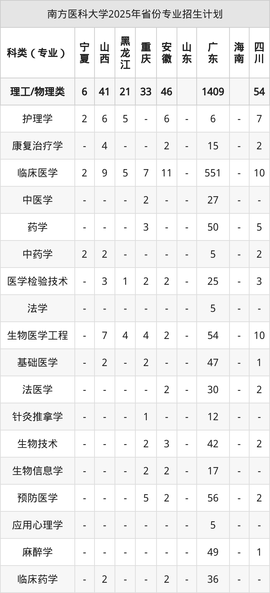 2026年南方医科大学本科招生计划待公布,下面附上2025年数据,暂供参考: