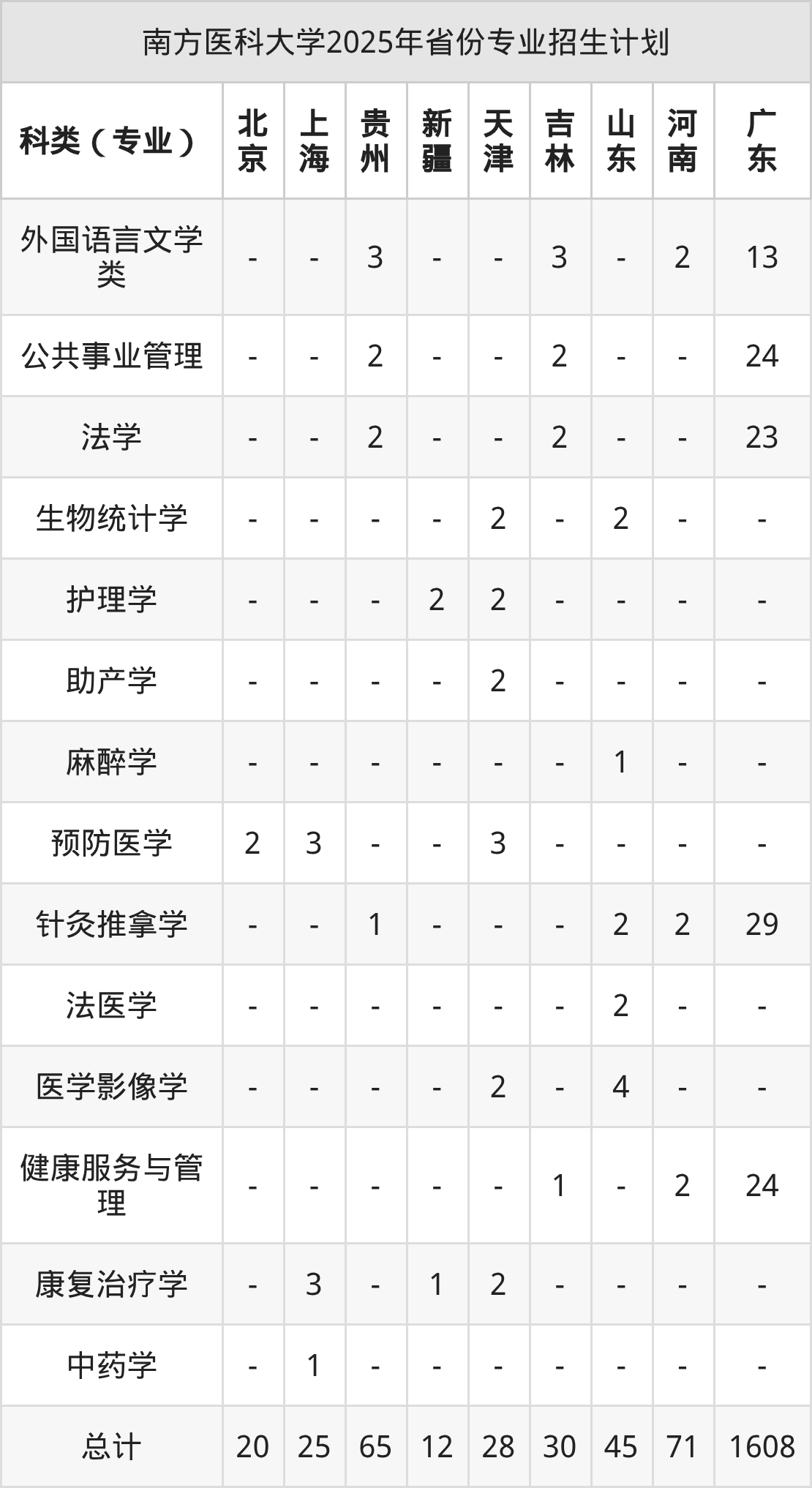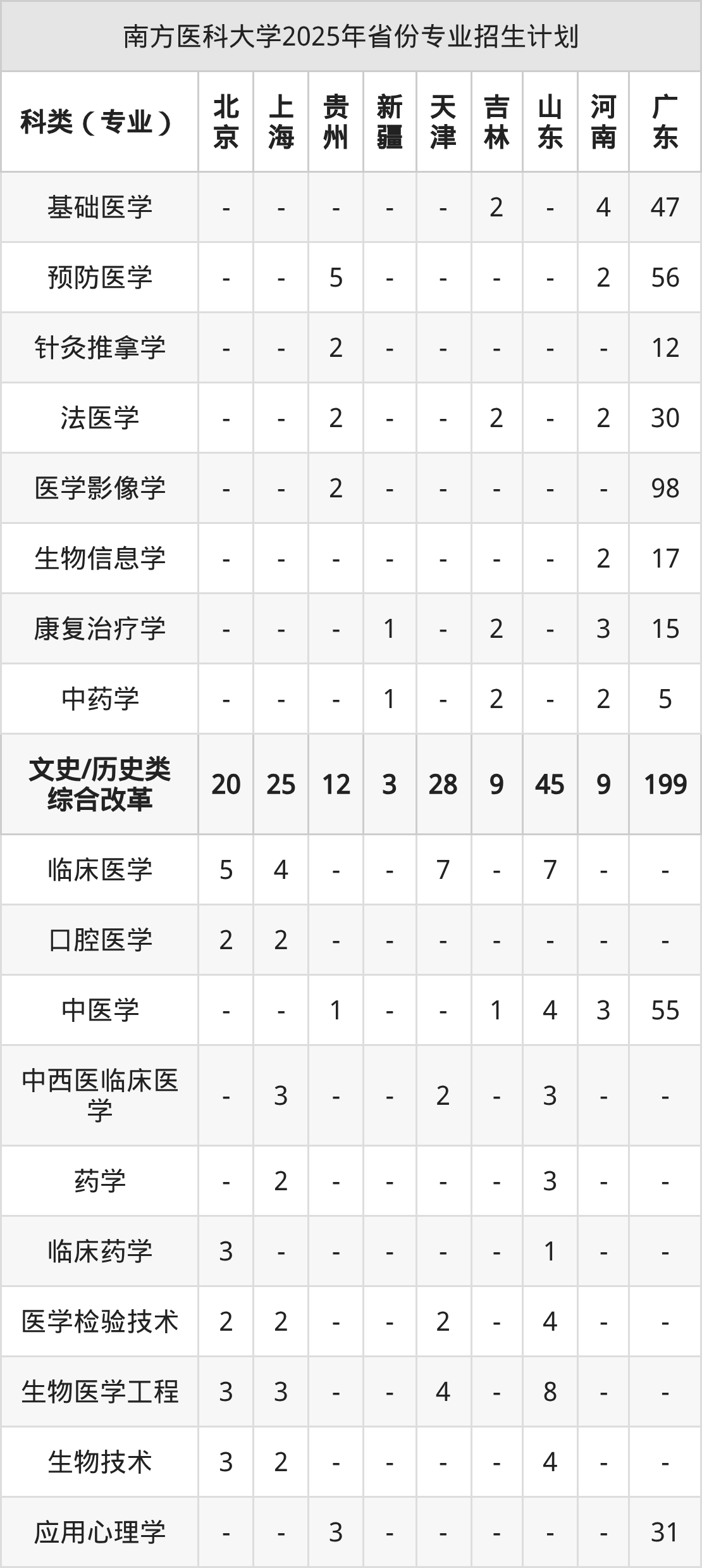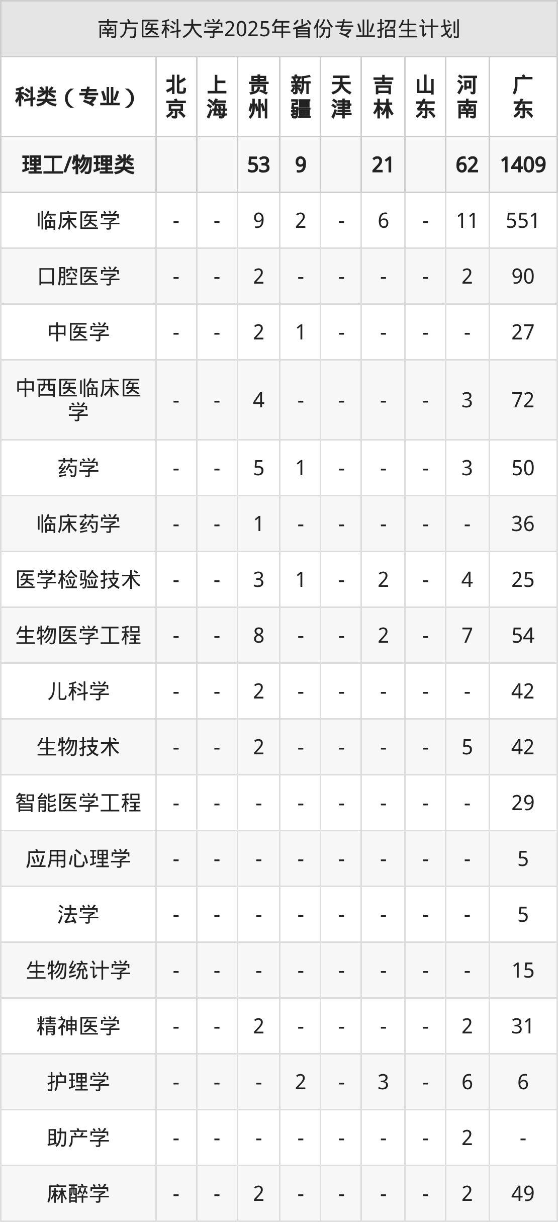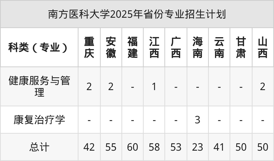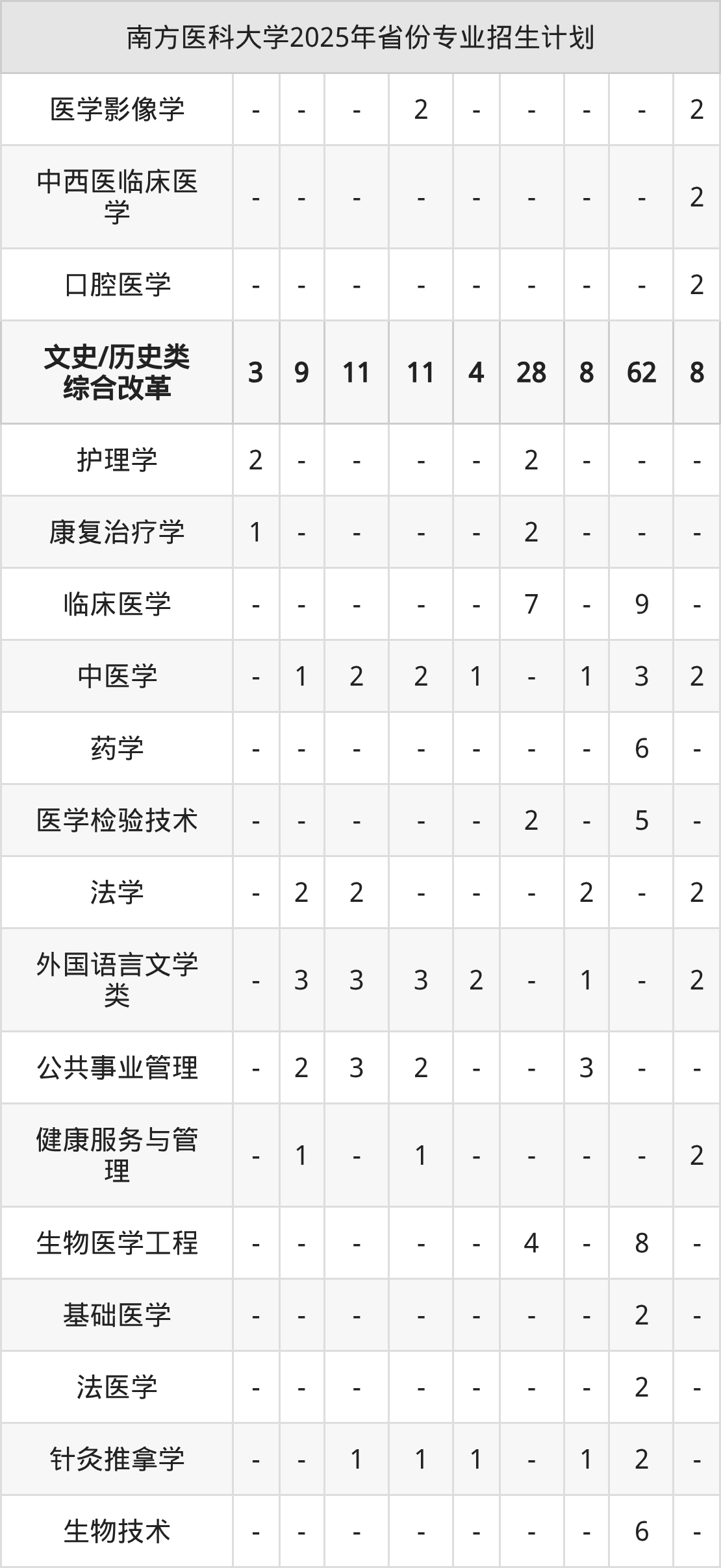 2026年南方医科大学本科招生计划待公布,下面附上2025年数据,暂供参考: