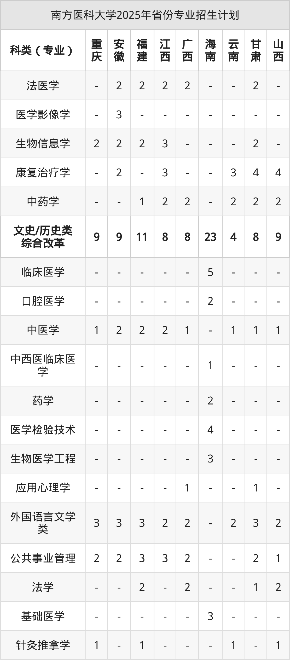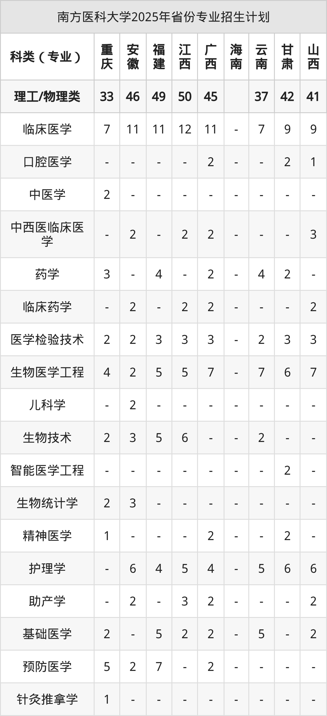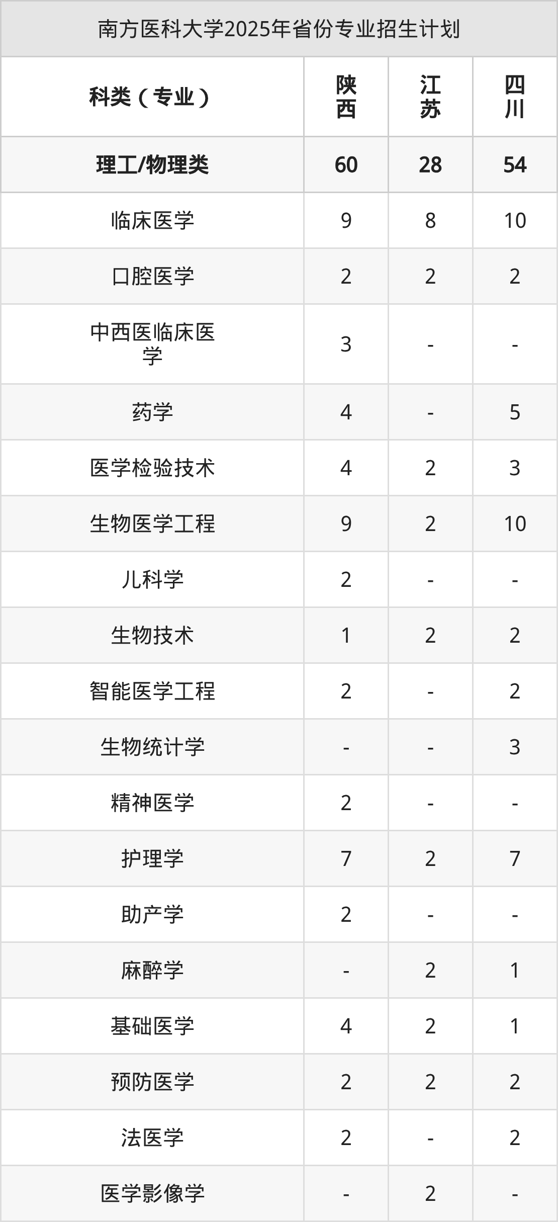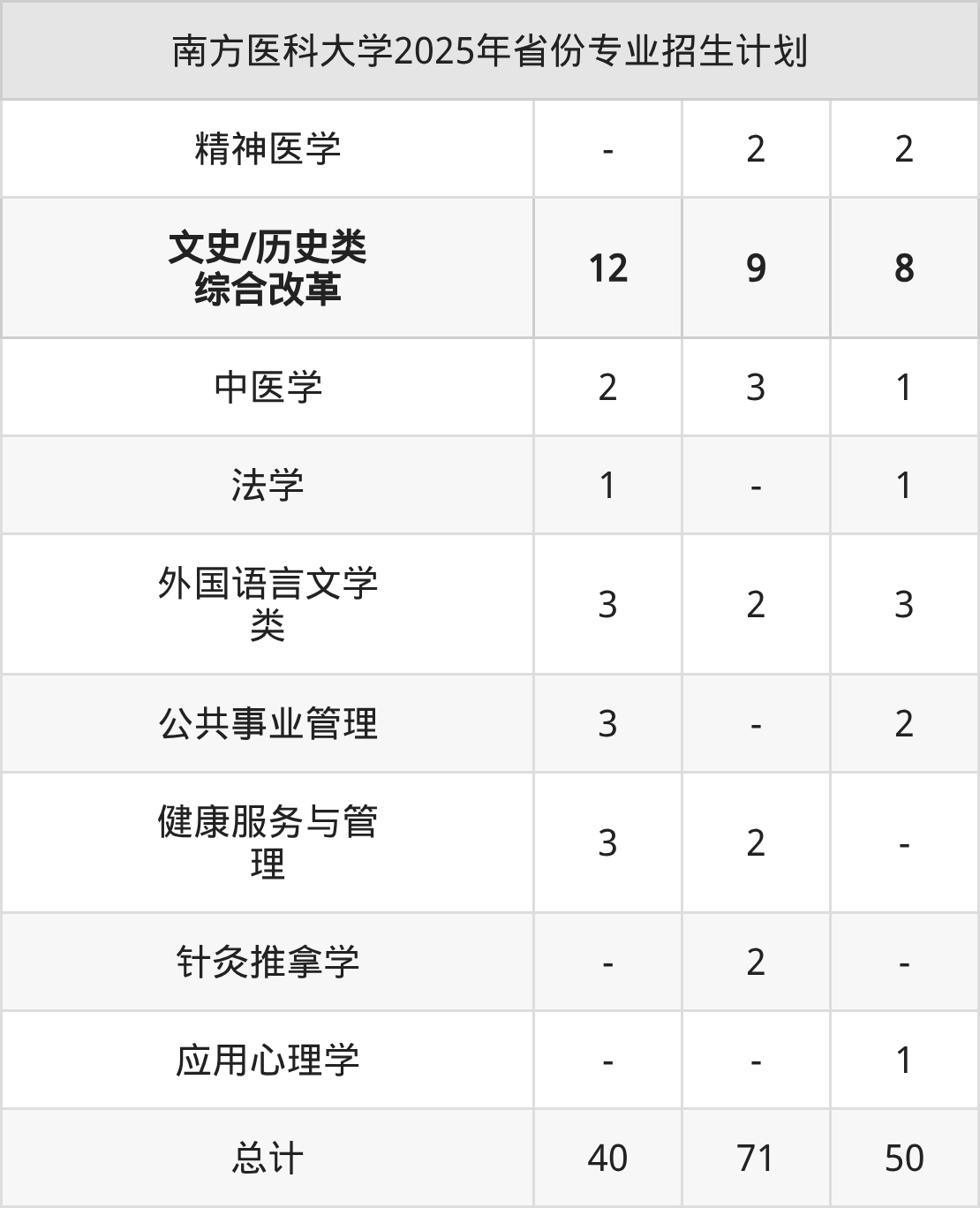 2026年南方医科大学本科招生计划待公布,下面附上2025年数据,暂供参考: