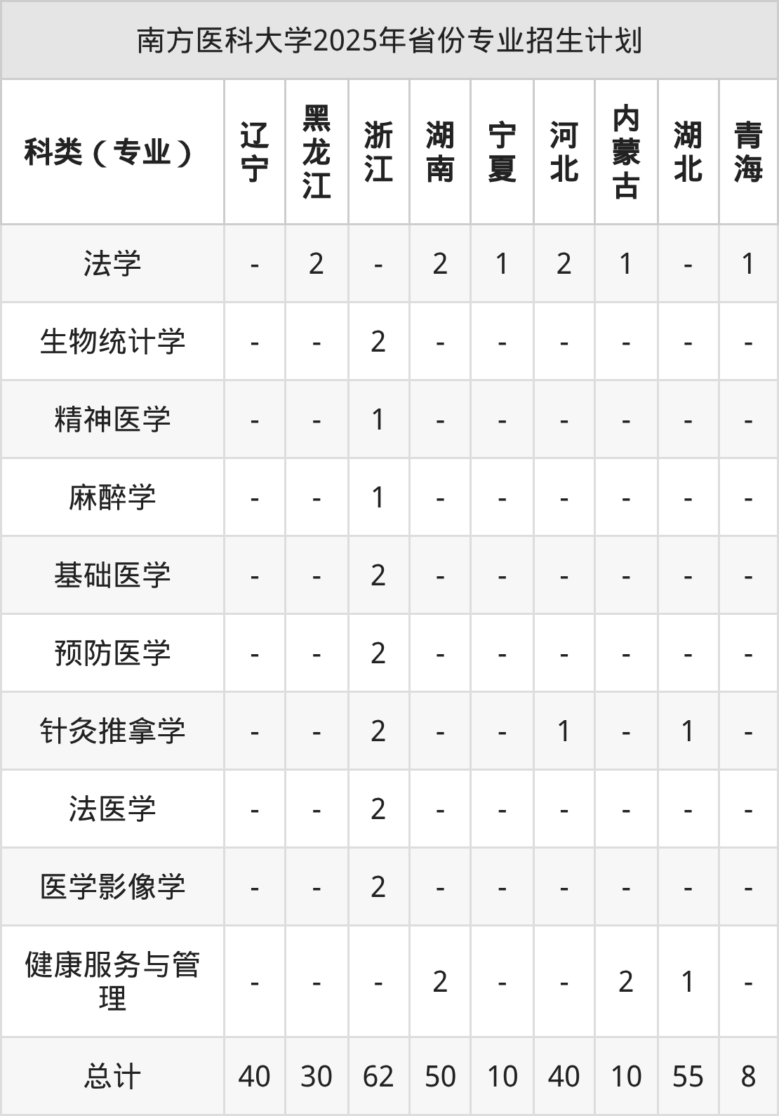 而各省份的招生计划数为内蒙古10人,福建60人,江西58人,甘肃50人,陕西70人等。