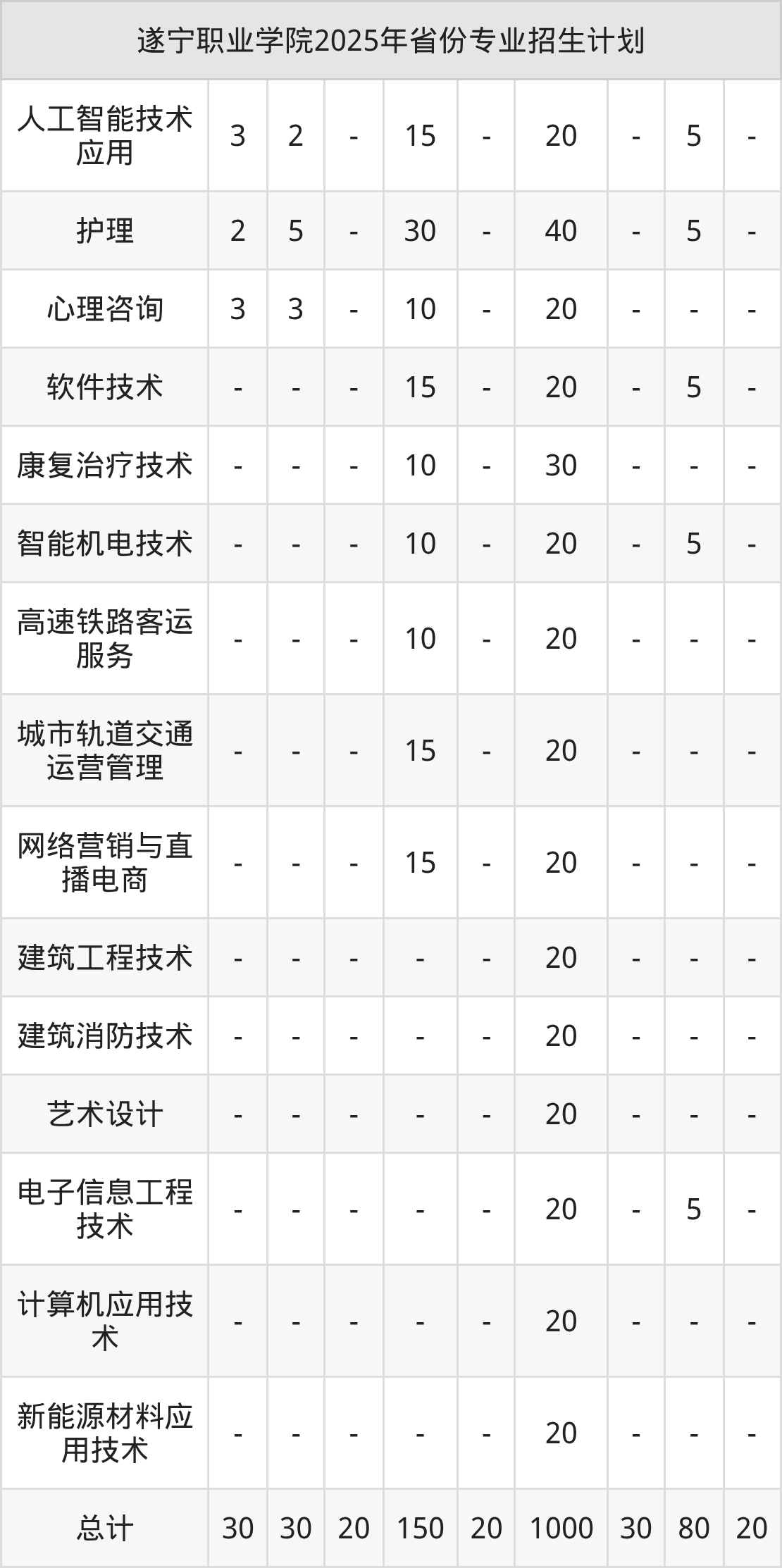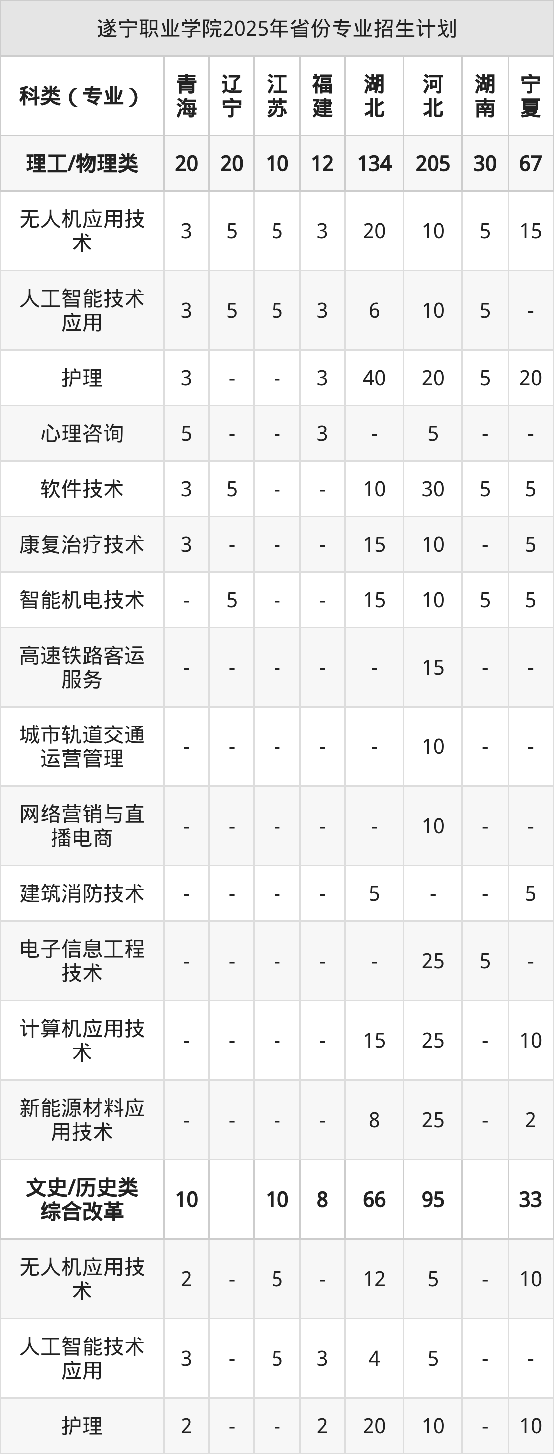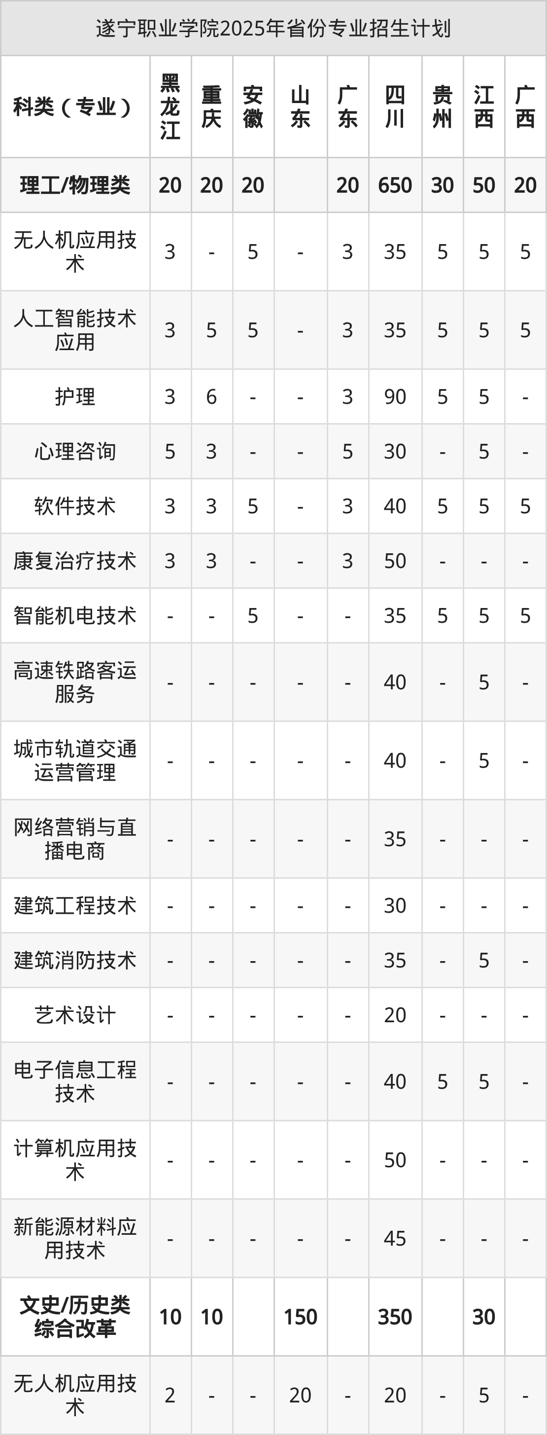 2026年遂宁职业学院专科招生计划待公布,下面附上2025年数据,暂供参考: