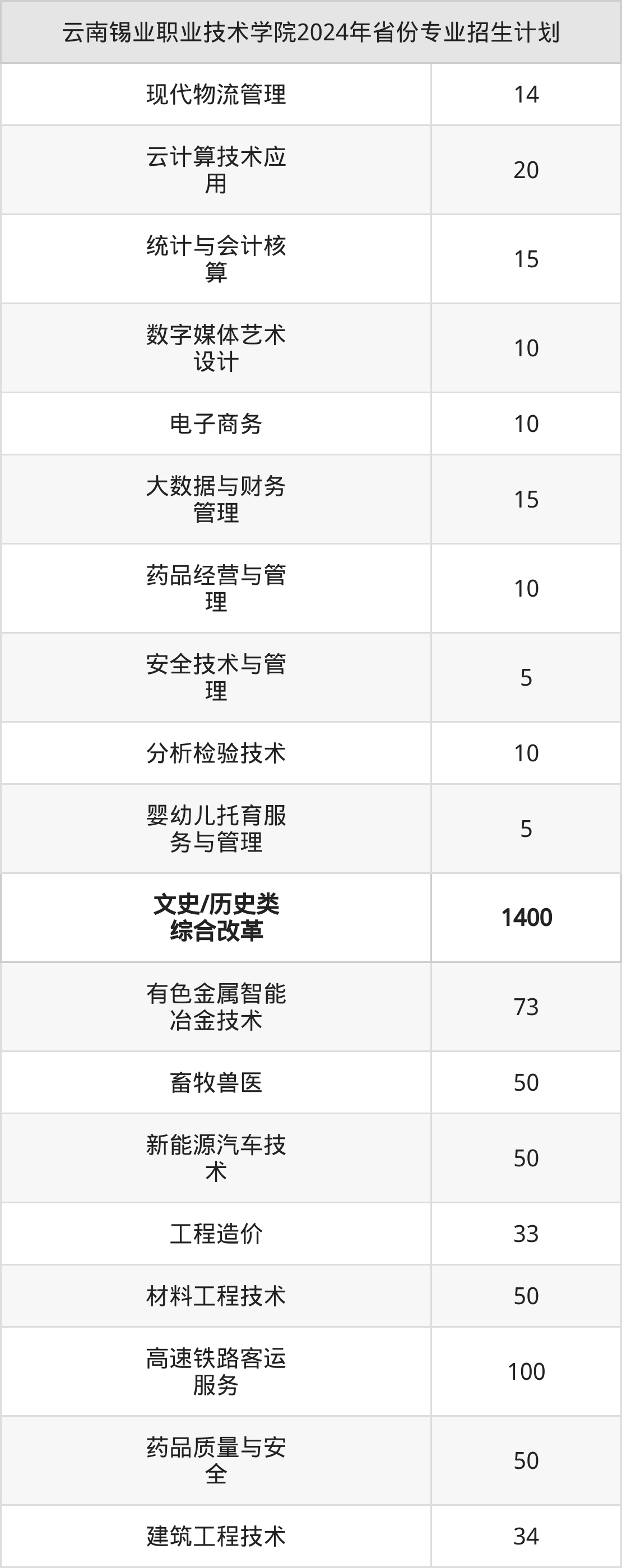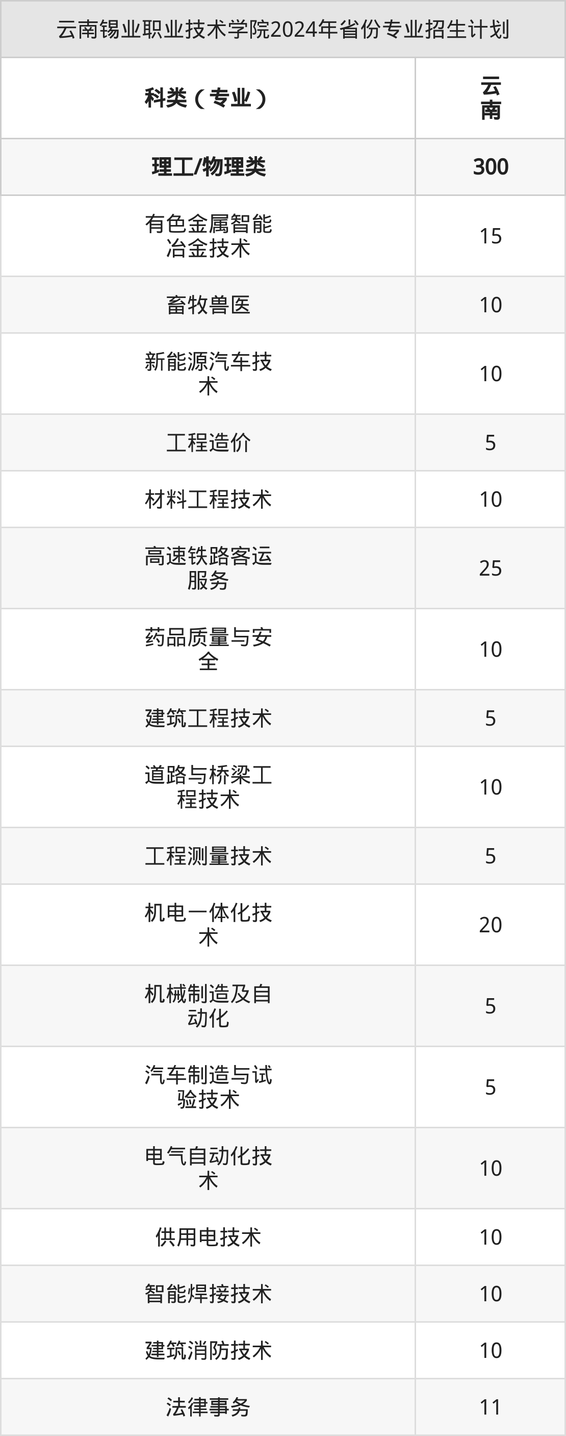 2025年云南锡业职业技术学院专科招生计划待公布,下面附上2024年数据,暂供参考: