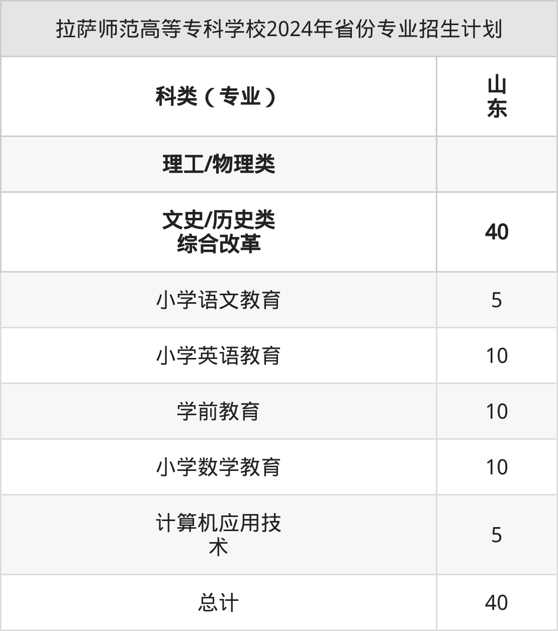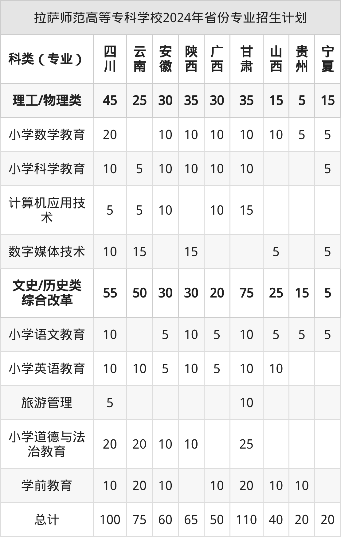2025年拉萨师范高等专科学校专科招生计划待公布,下面附上2024年数据,暂供参考: