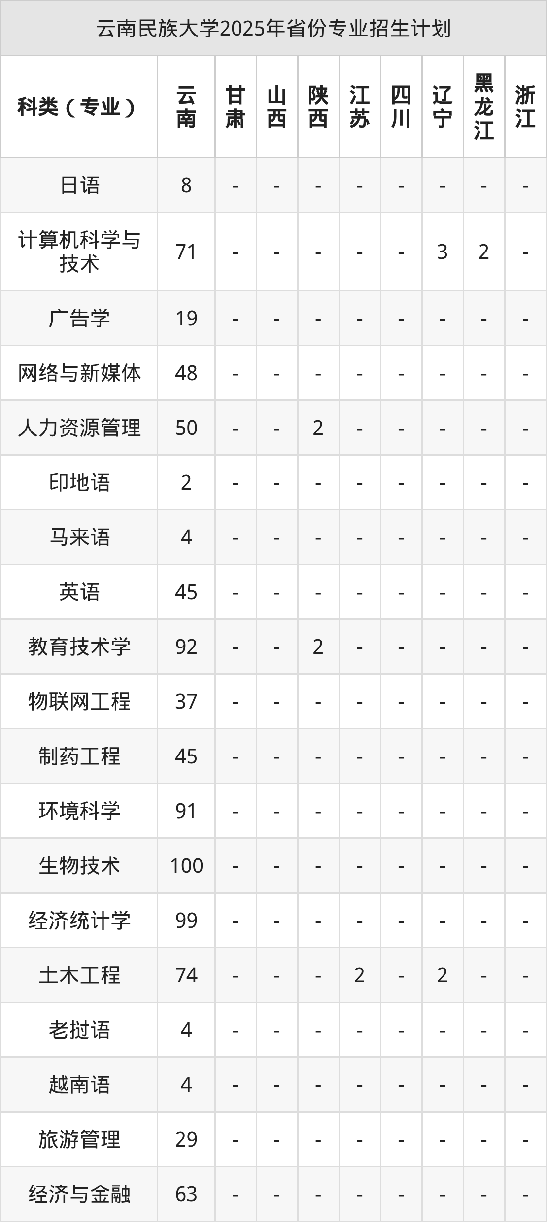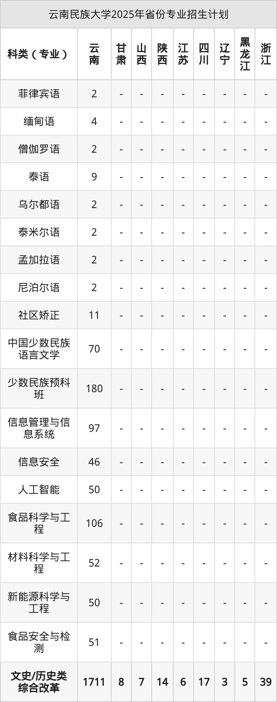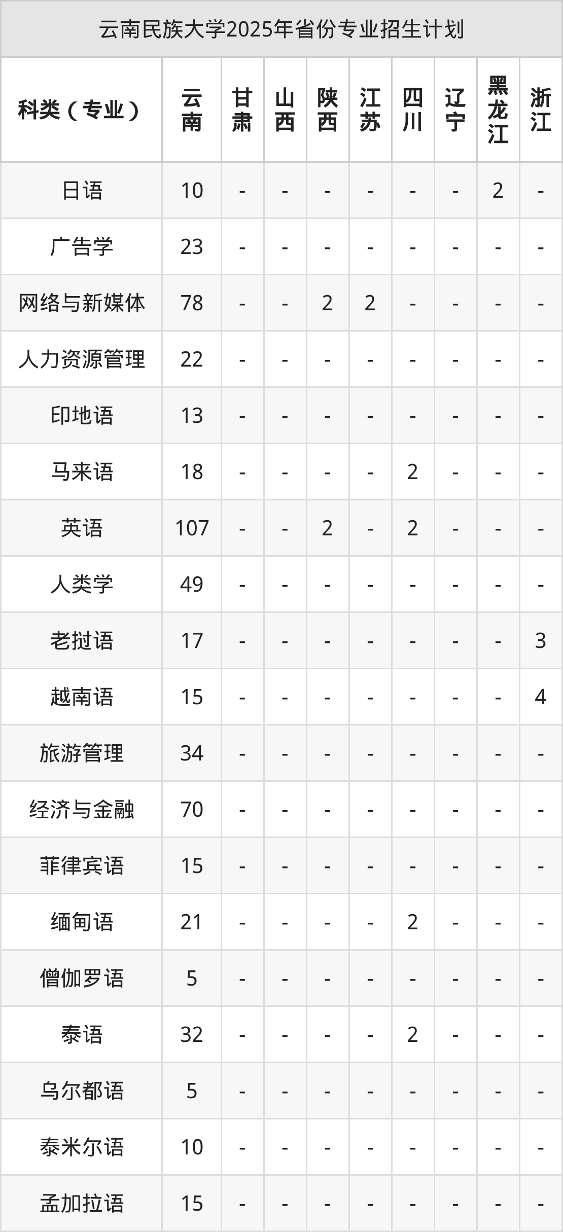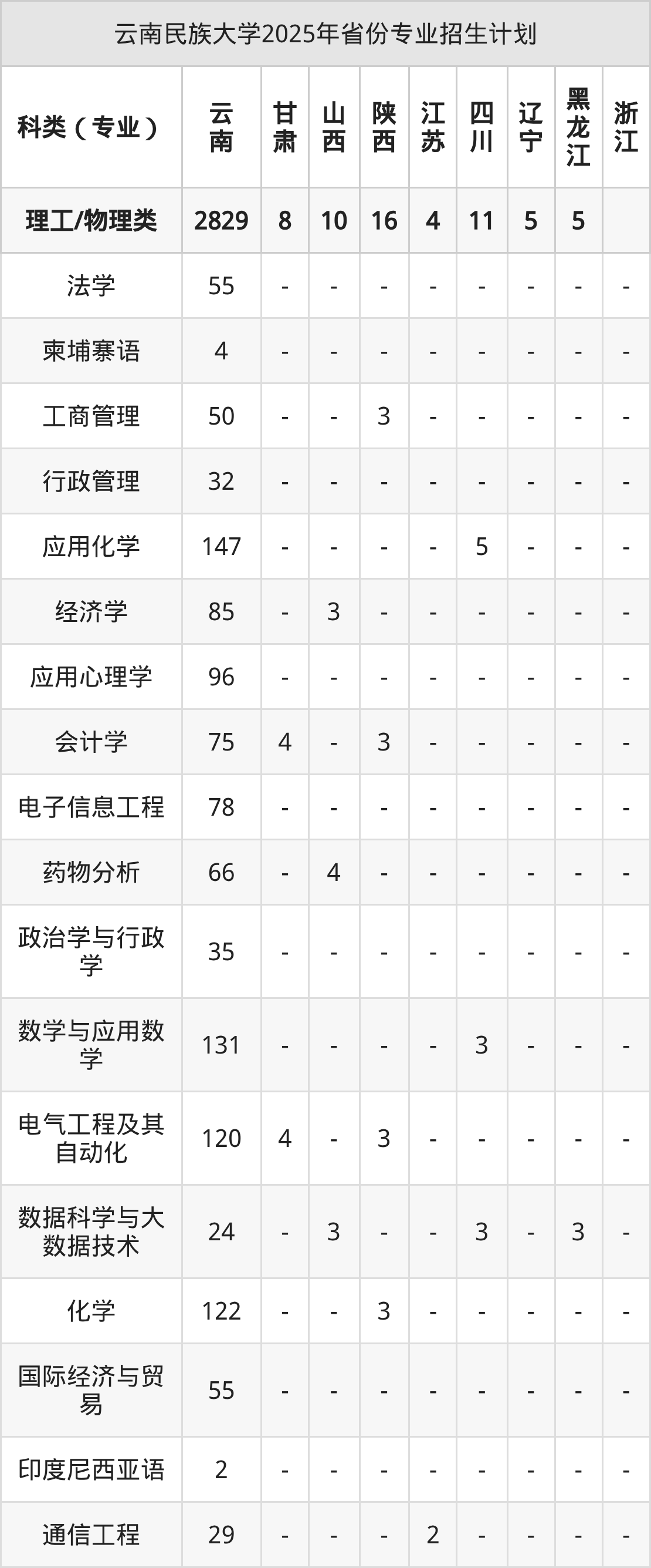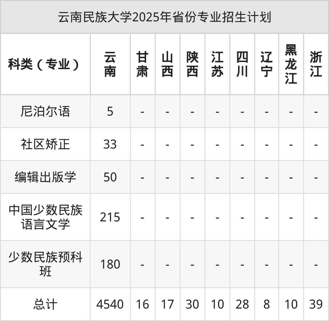 2026年云南民族大学本科招生计划待公布,下面附上2025年数据,暂供参考: