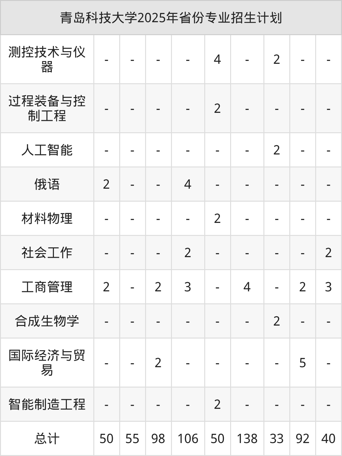 2026年青岛科技大学本科招生计划待公布,下面附上2025年数据,暂供参考: