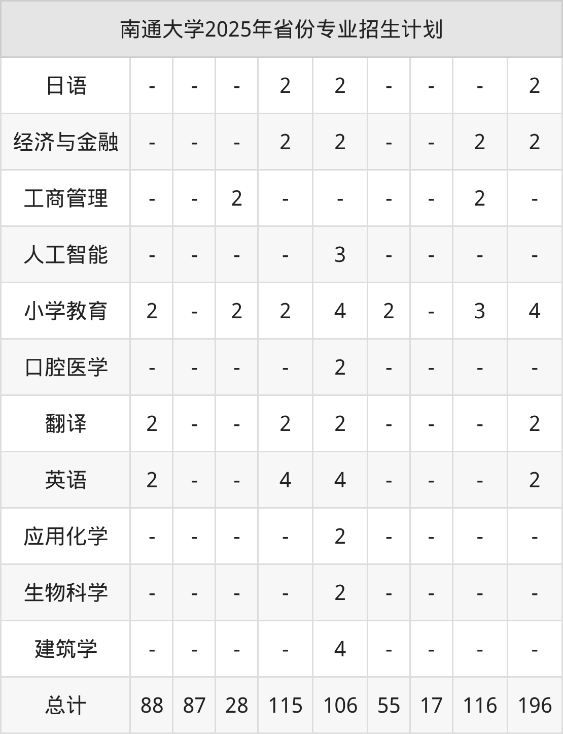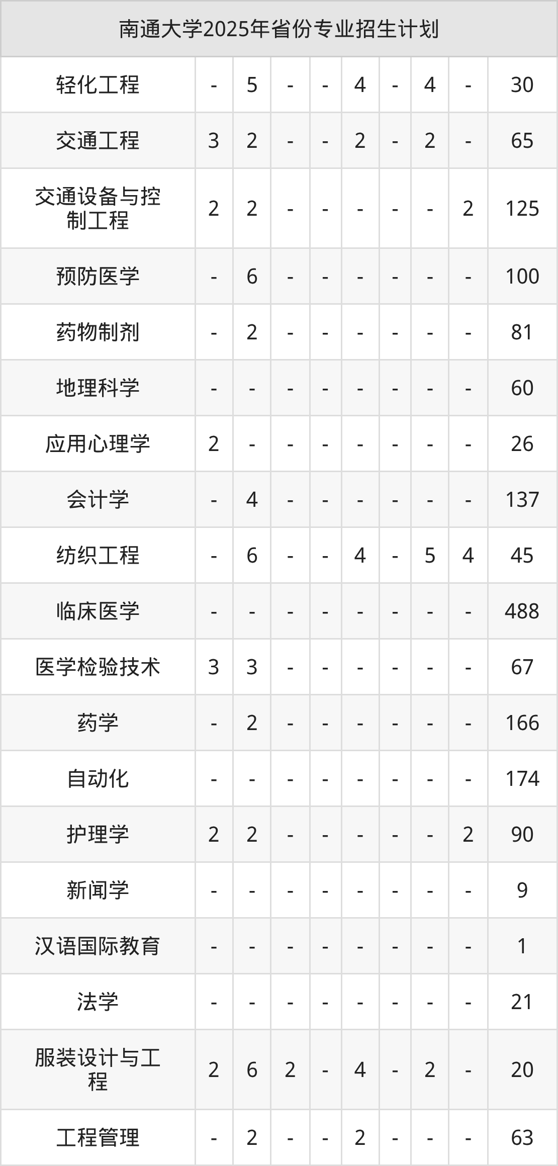 2026年南通大学本科招生计划待公布,下面附上2025年数据,暂供参考: