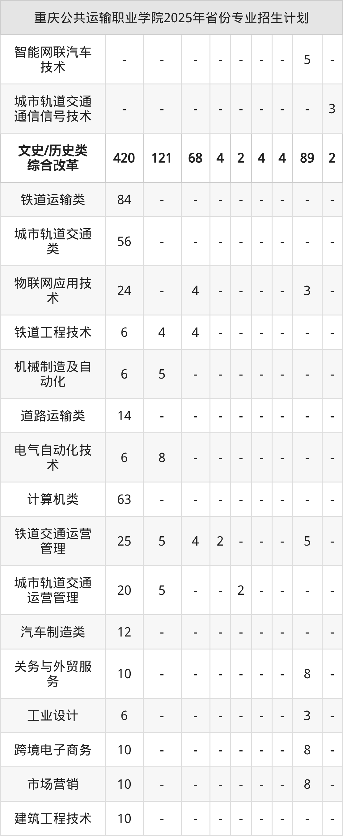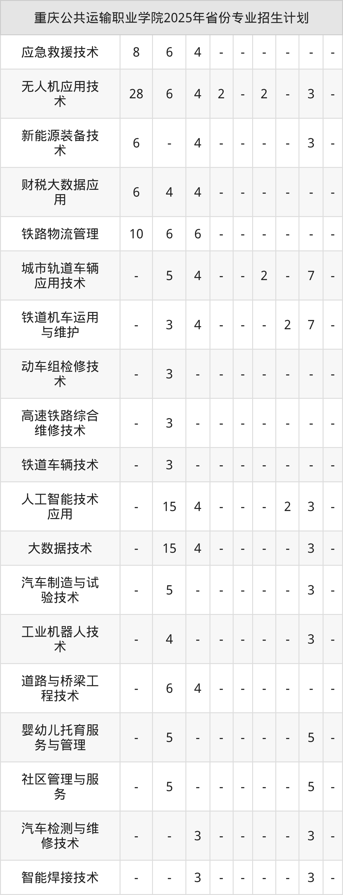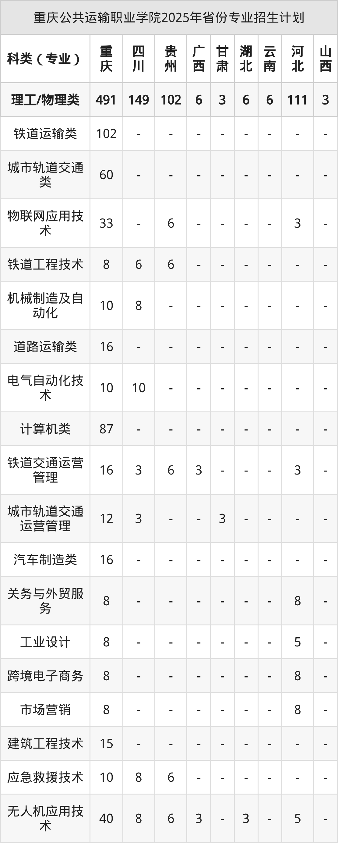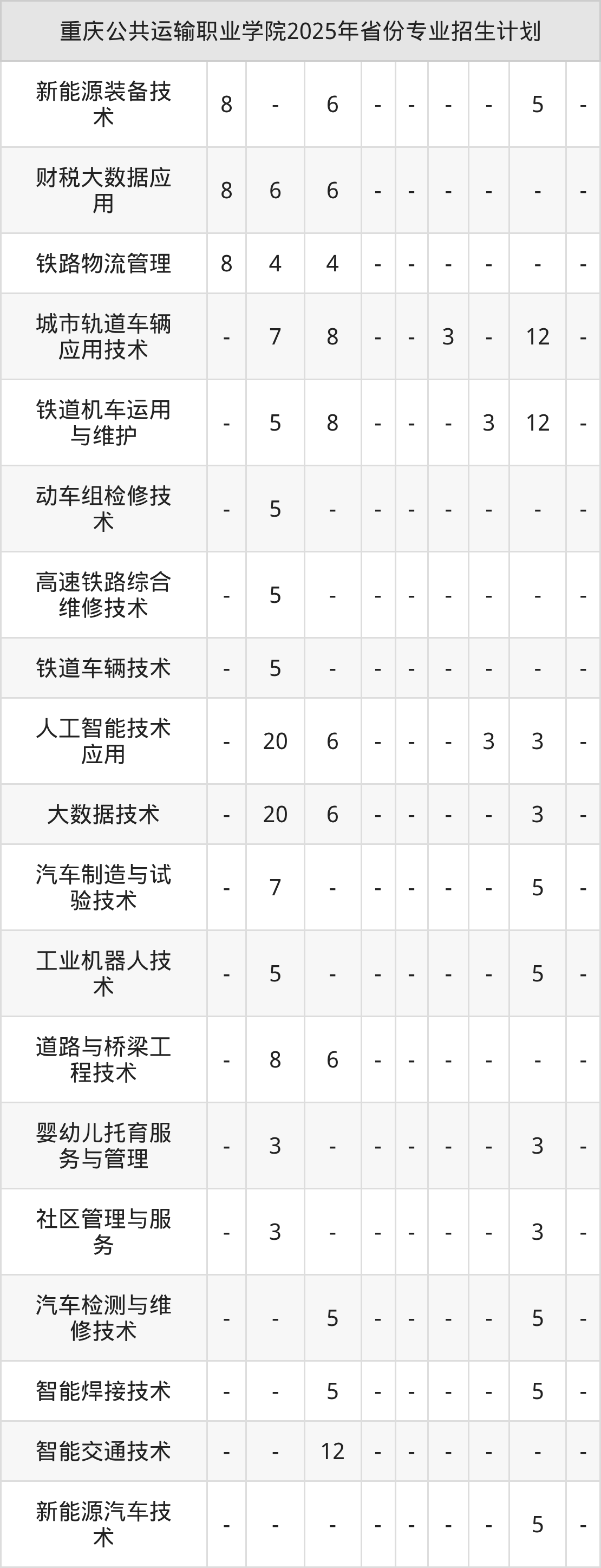 2026年重庆公共运输职业学院专科招生计划待公布,下面附上2025年数据,暂供参考:
