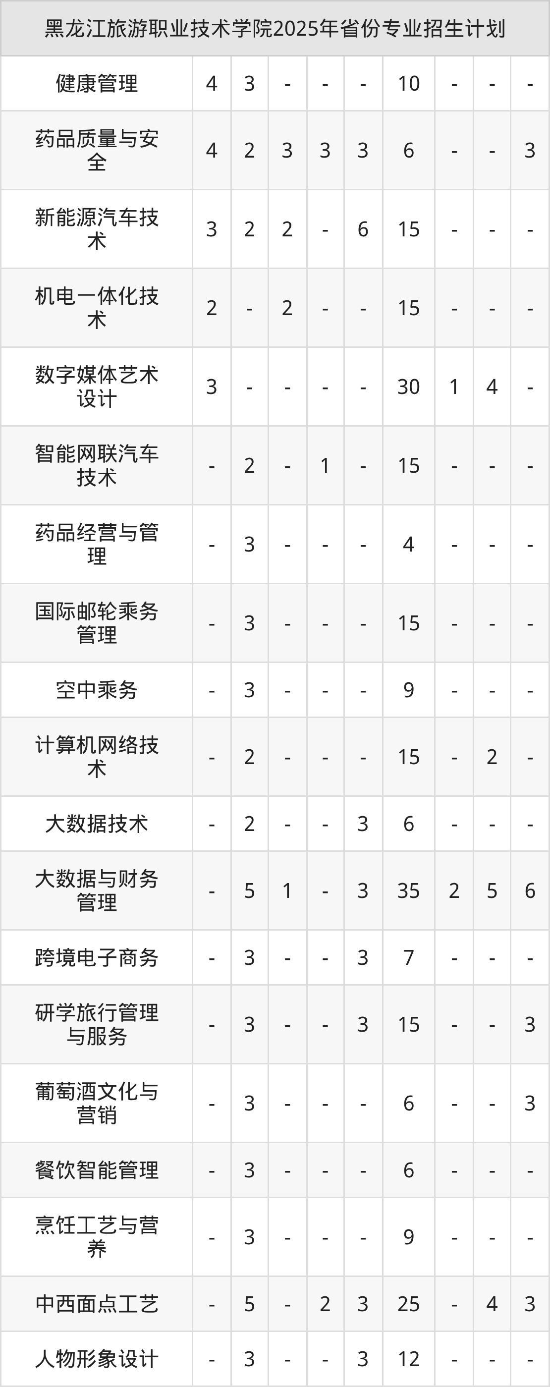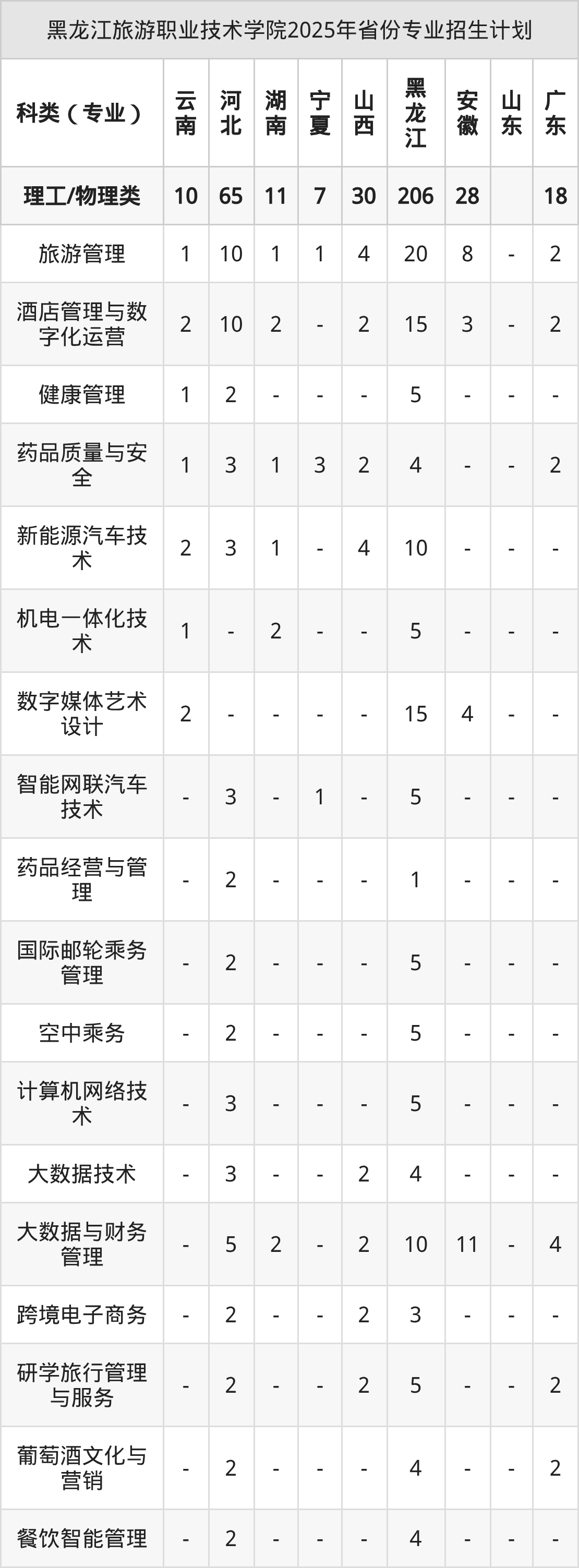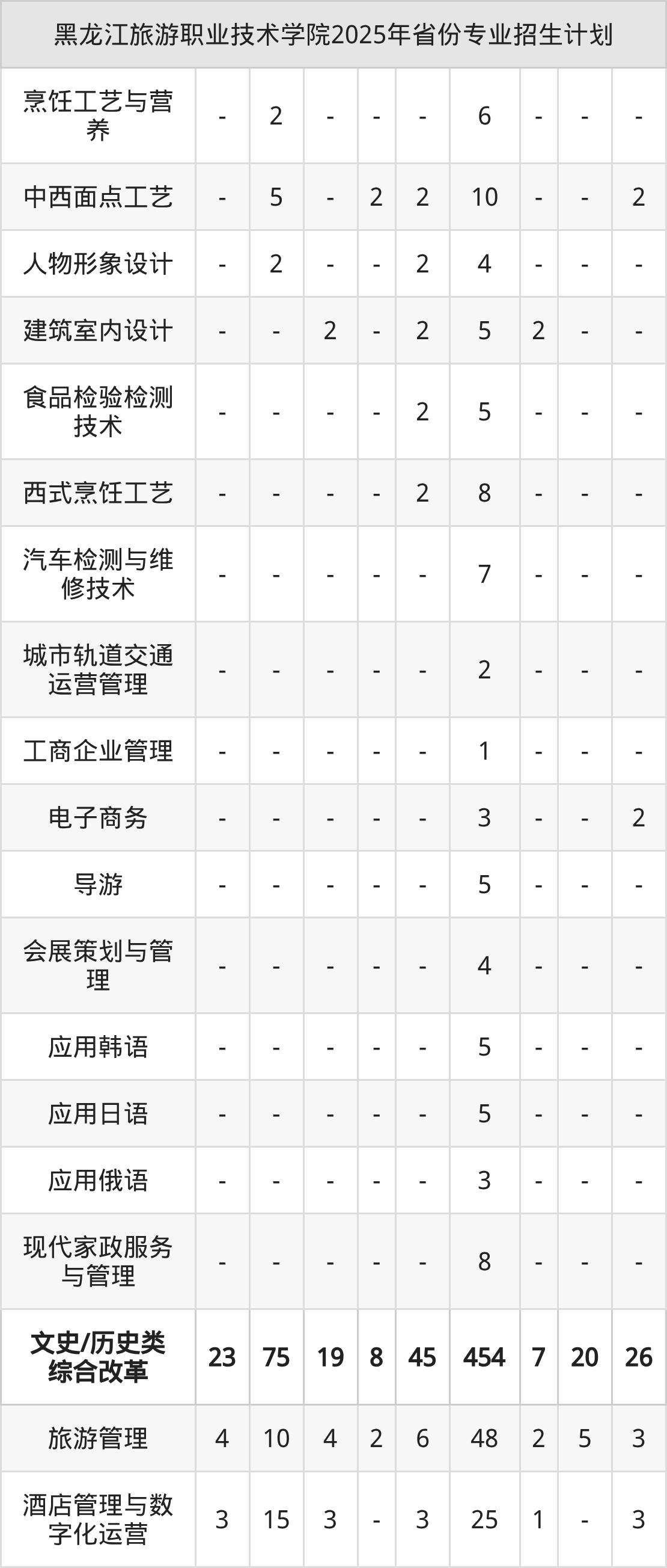 2026年黑龙江旅游职业技术学院专科招生计划待公布,下面附上2025年数据,暂供参考: