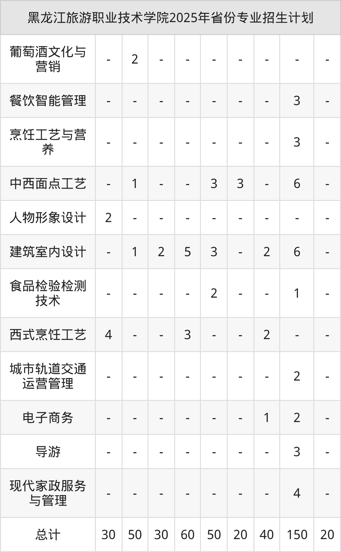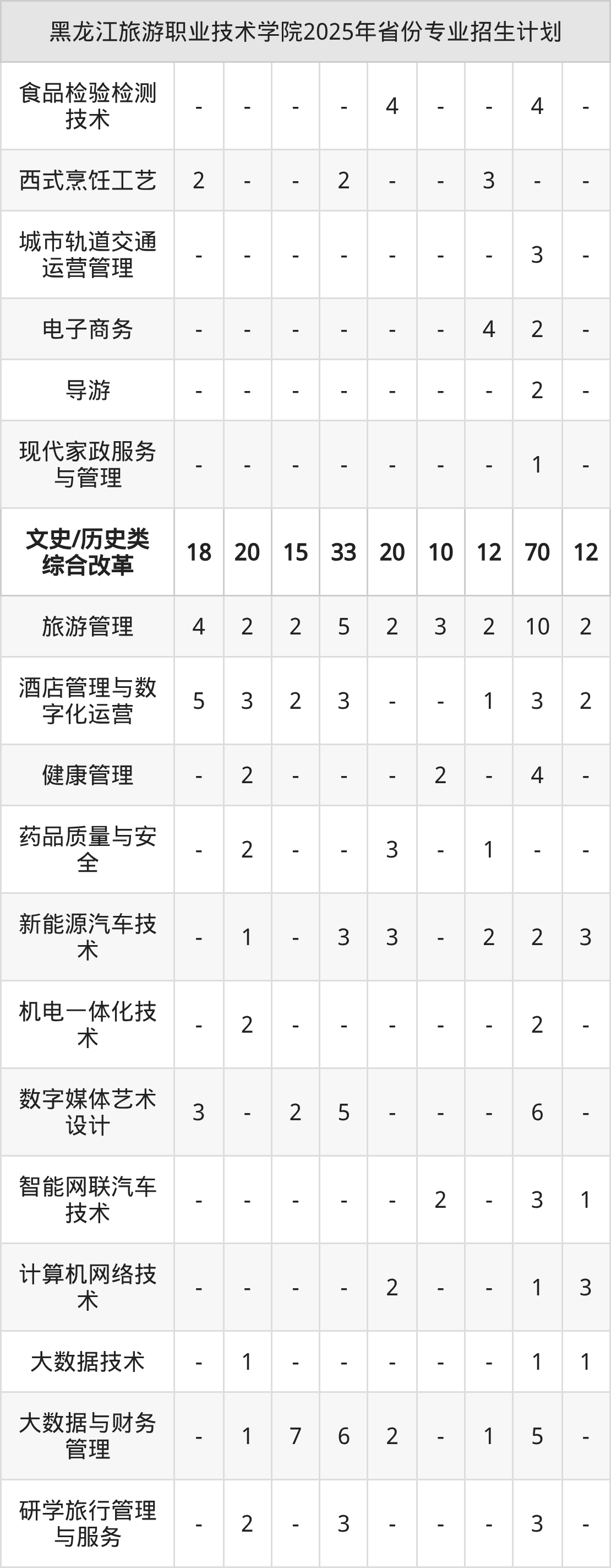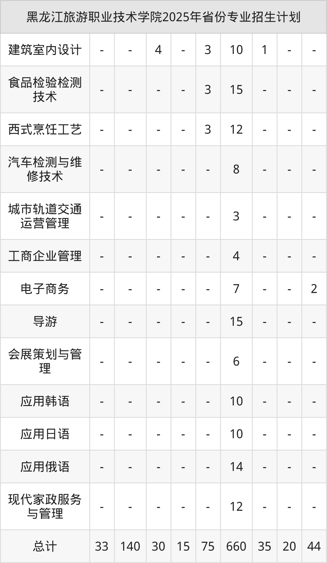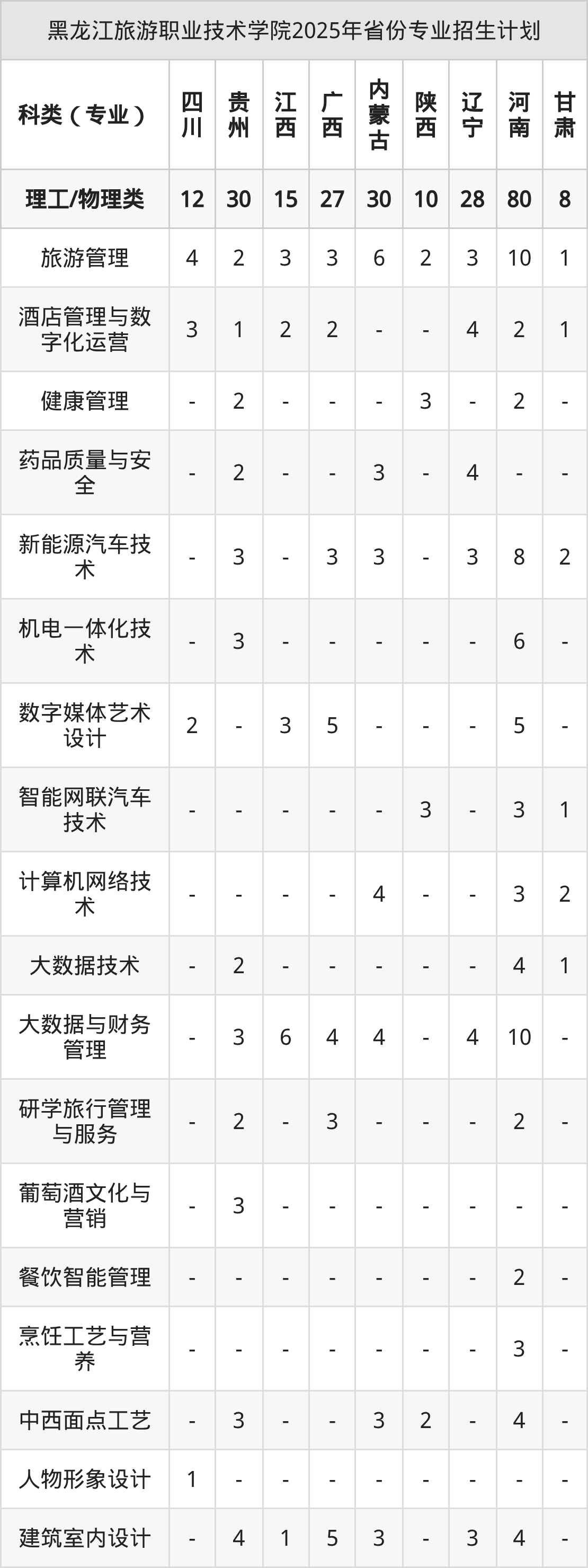 2026年黑龙江旅游职业技术学院专科招生计划待公布,下面附上2025年数据,暂供参考: