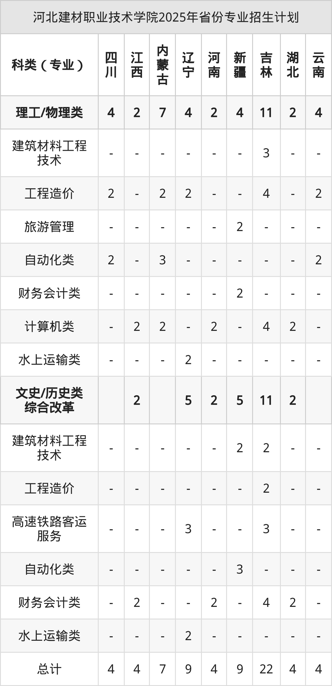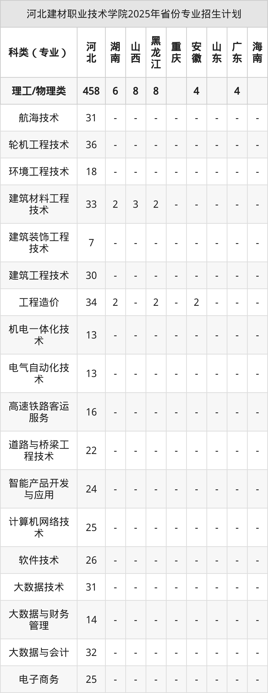 2026年河北建材职业技术学院专科招生计划待公布,下面附上2025年数据,暂供参考: