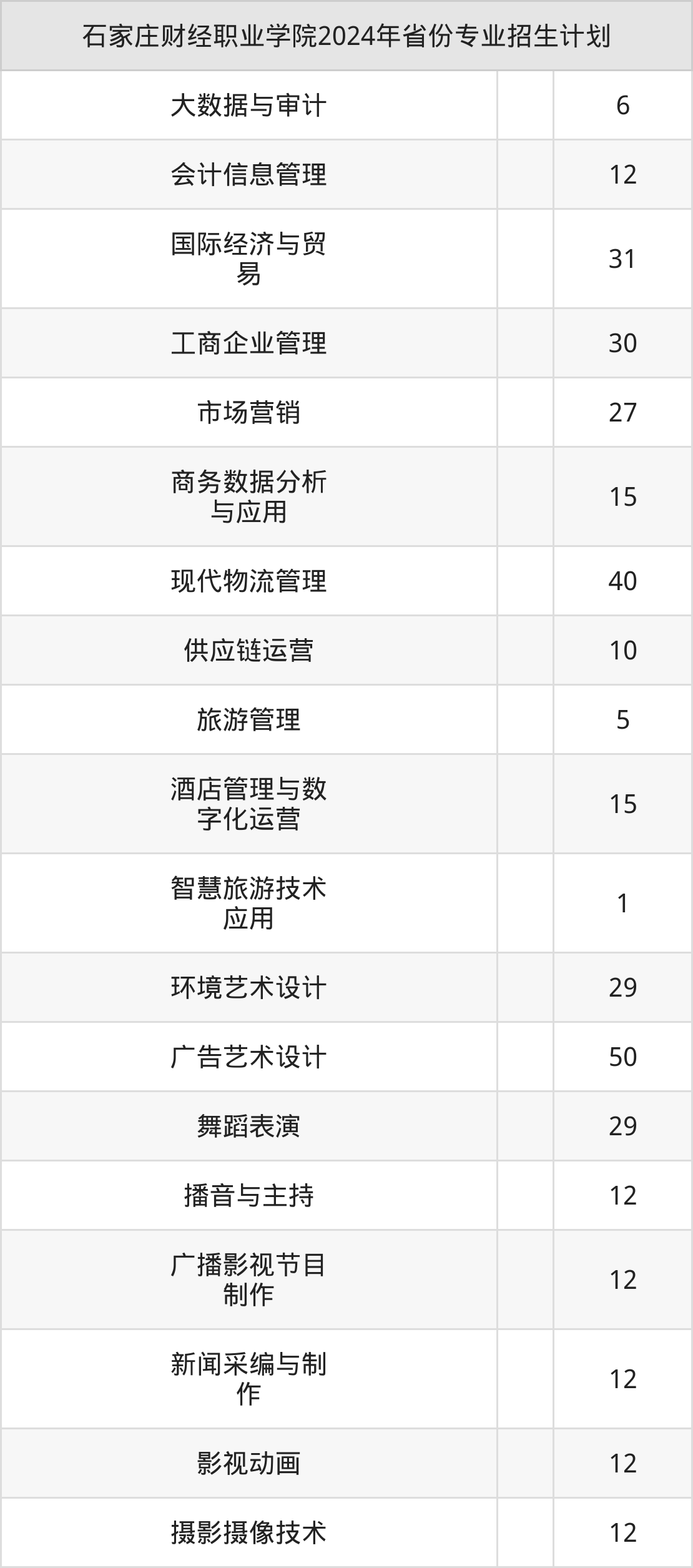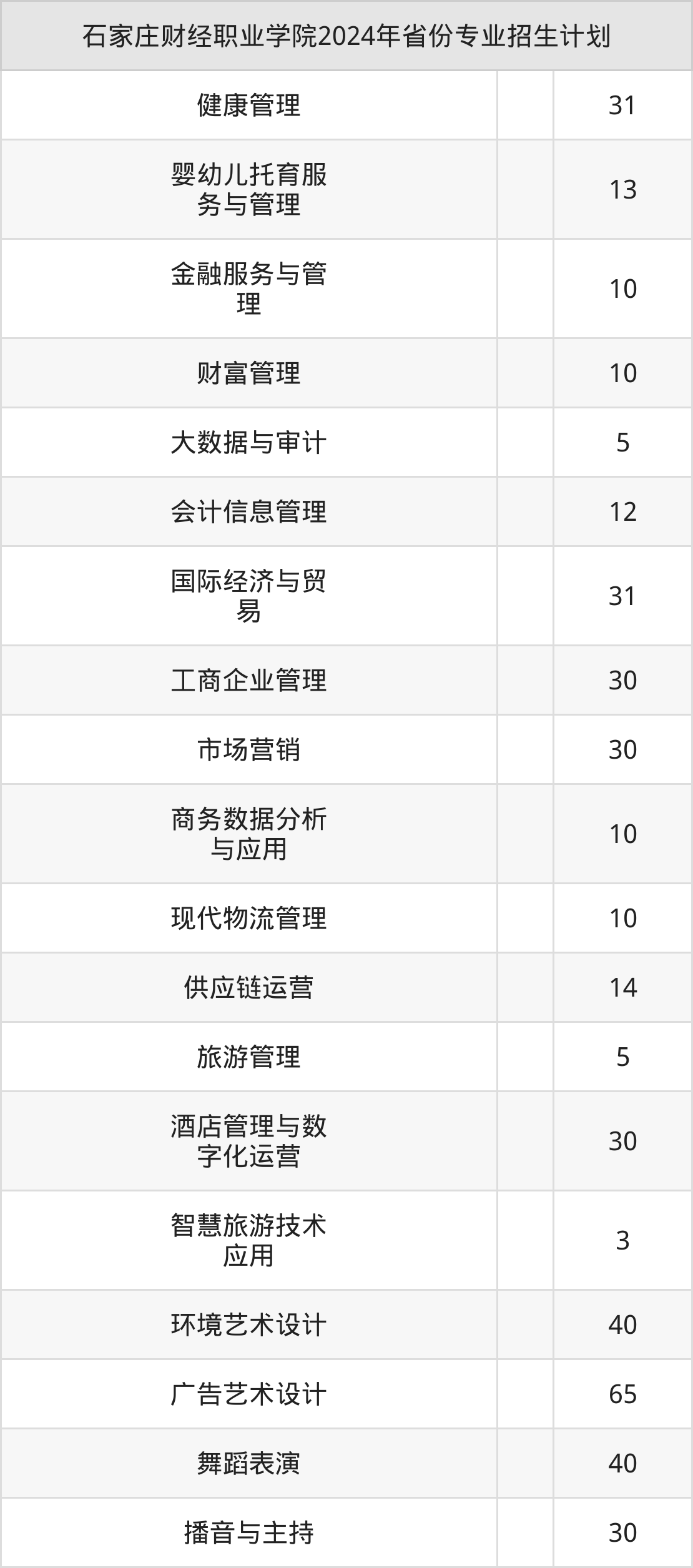 2025年石家庄财经职业学院专科招生计划待公布,下面附上2024年数据,暂供参考: