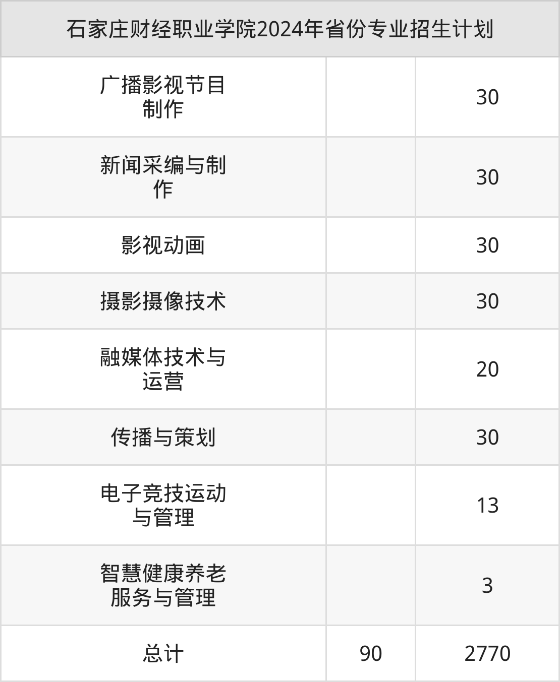 而各省份的招生计划数为河北2770人,山西90人。