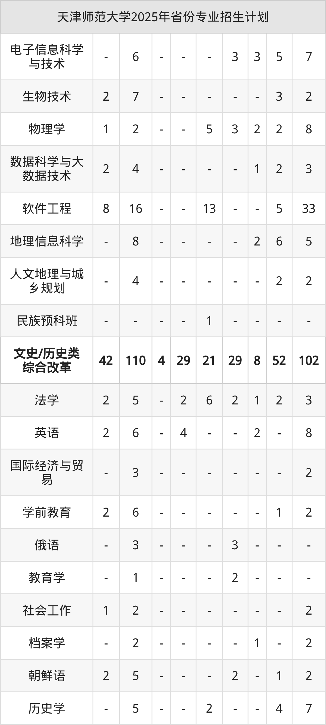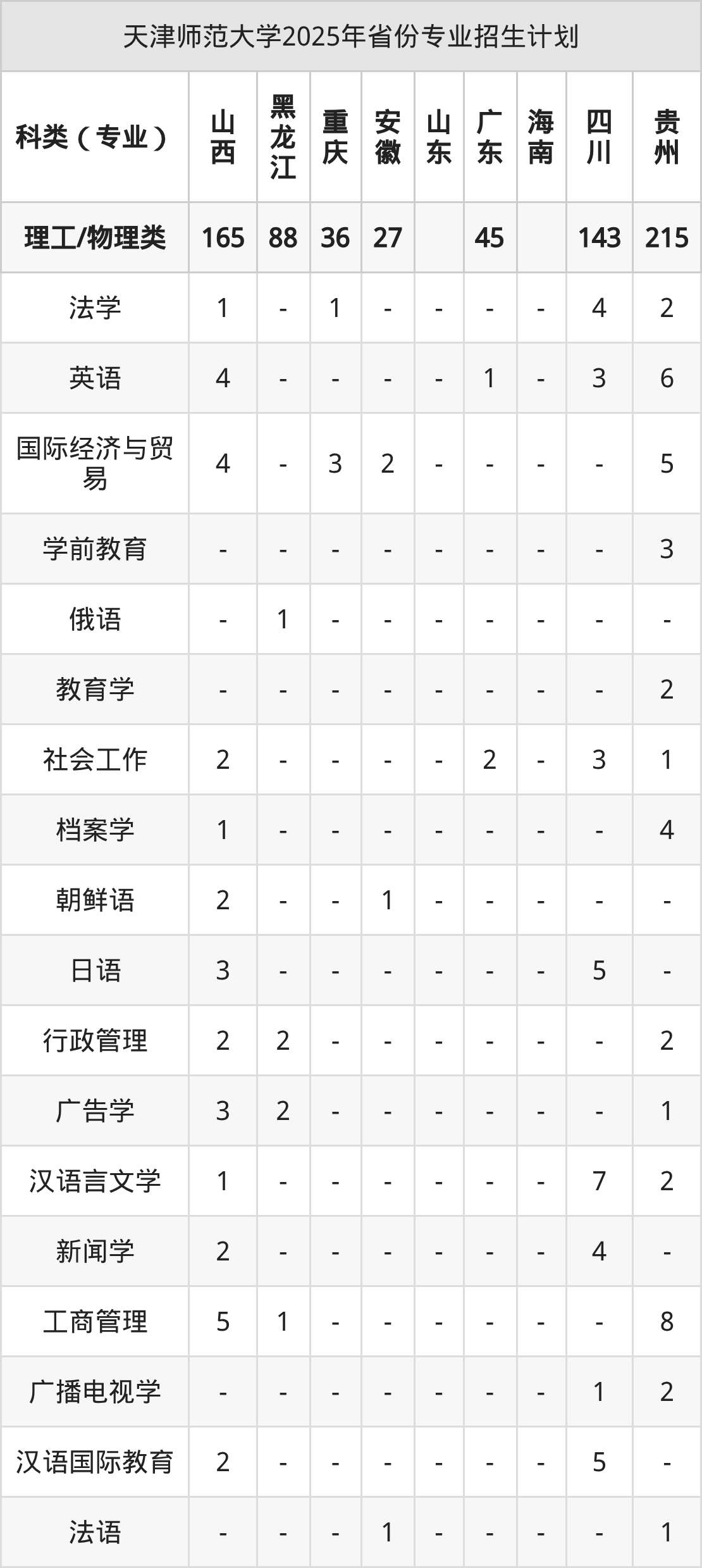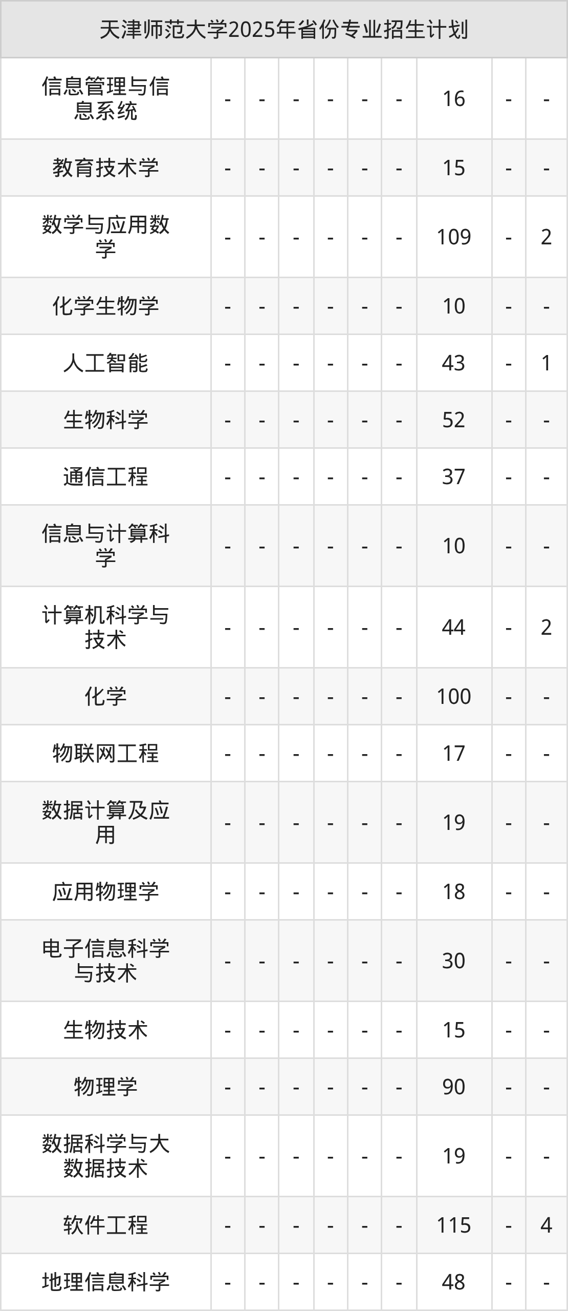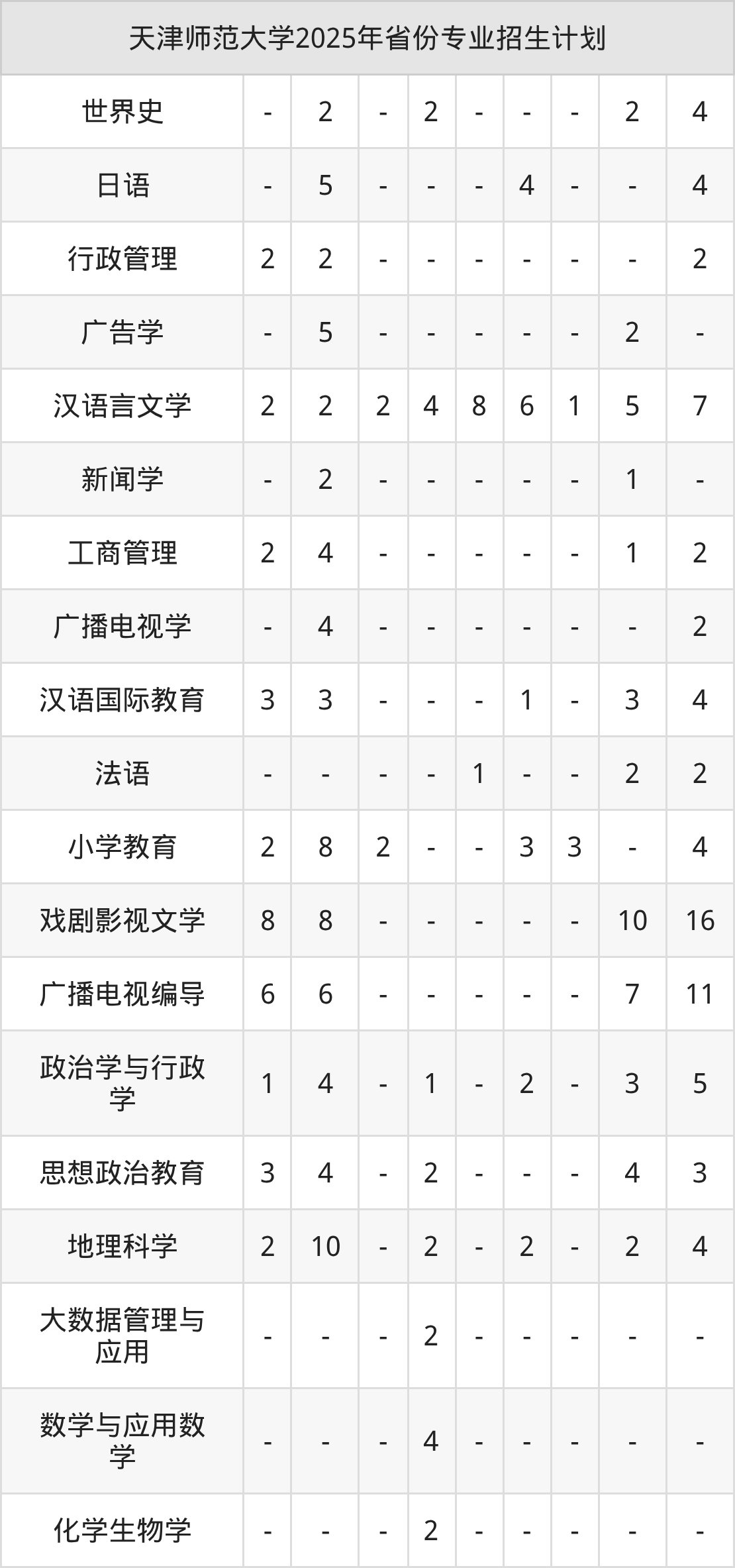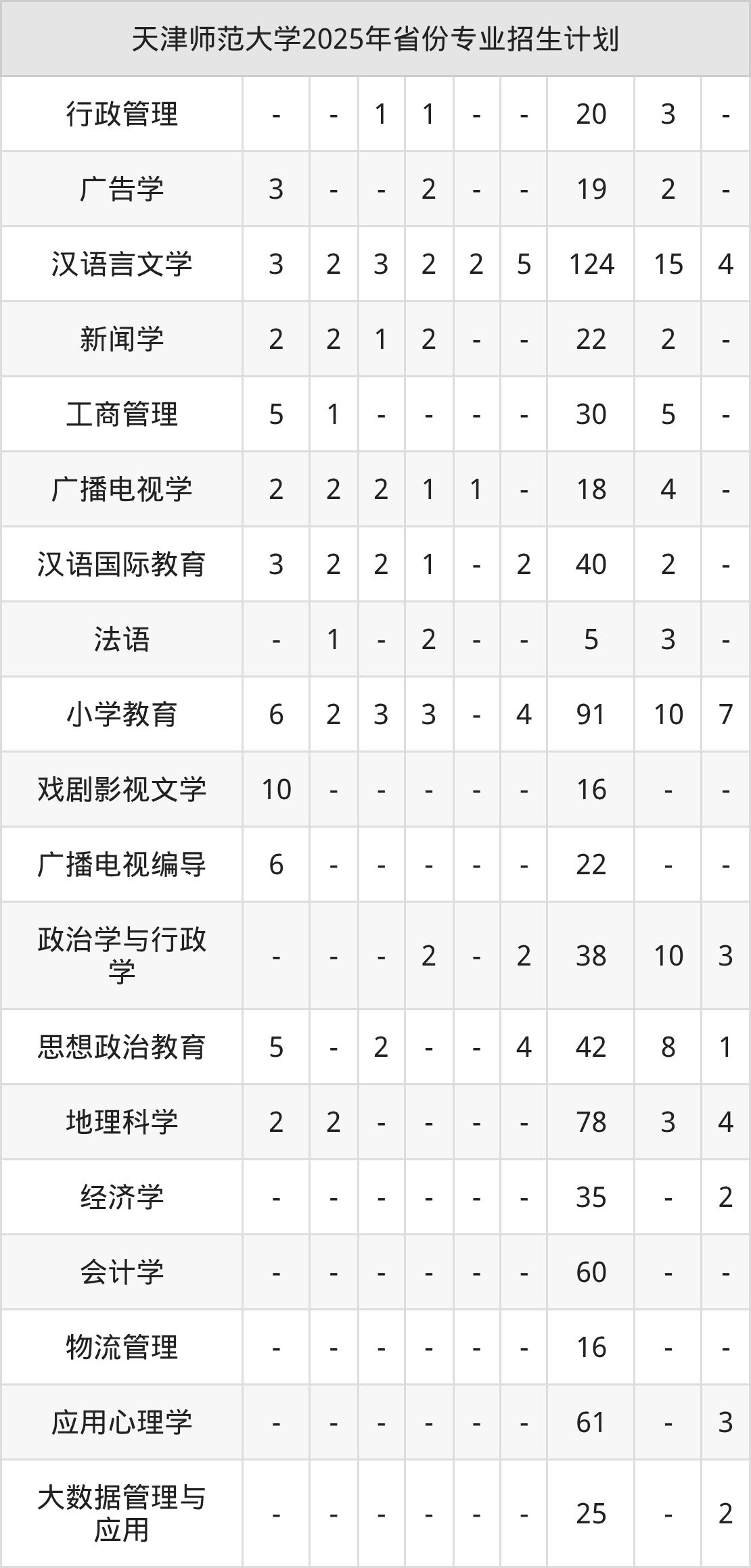 2026年天津师范大学本科招生计划待公布,下面附上2025年数据,暂供参考: