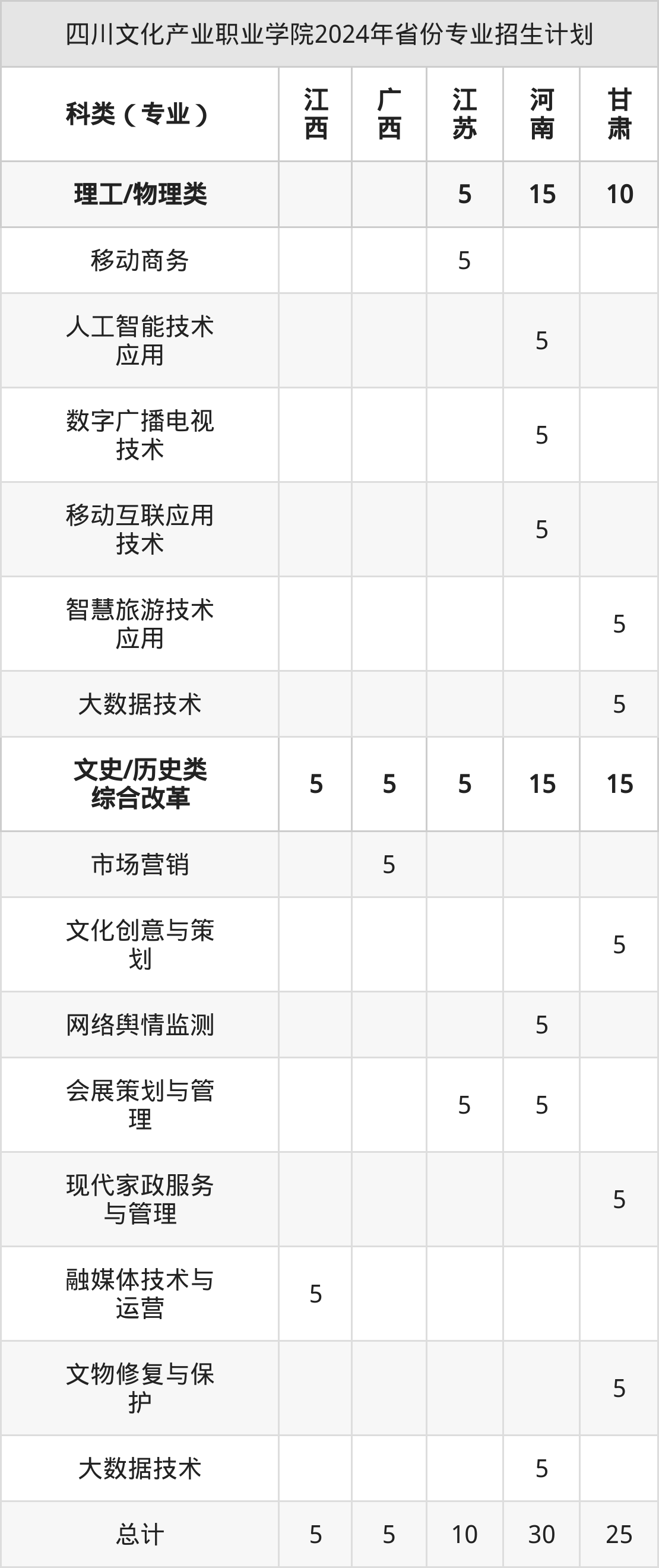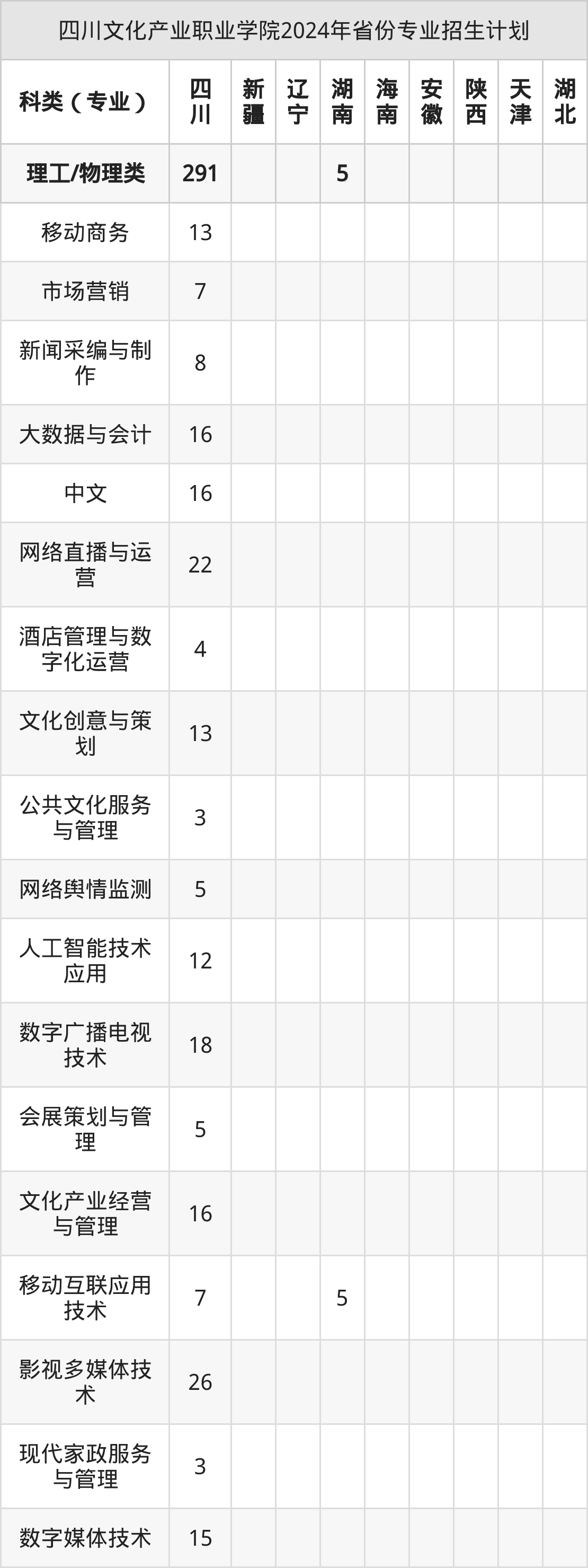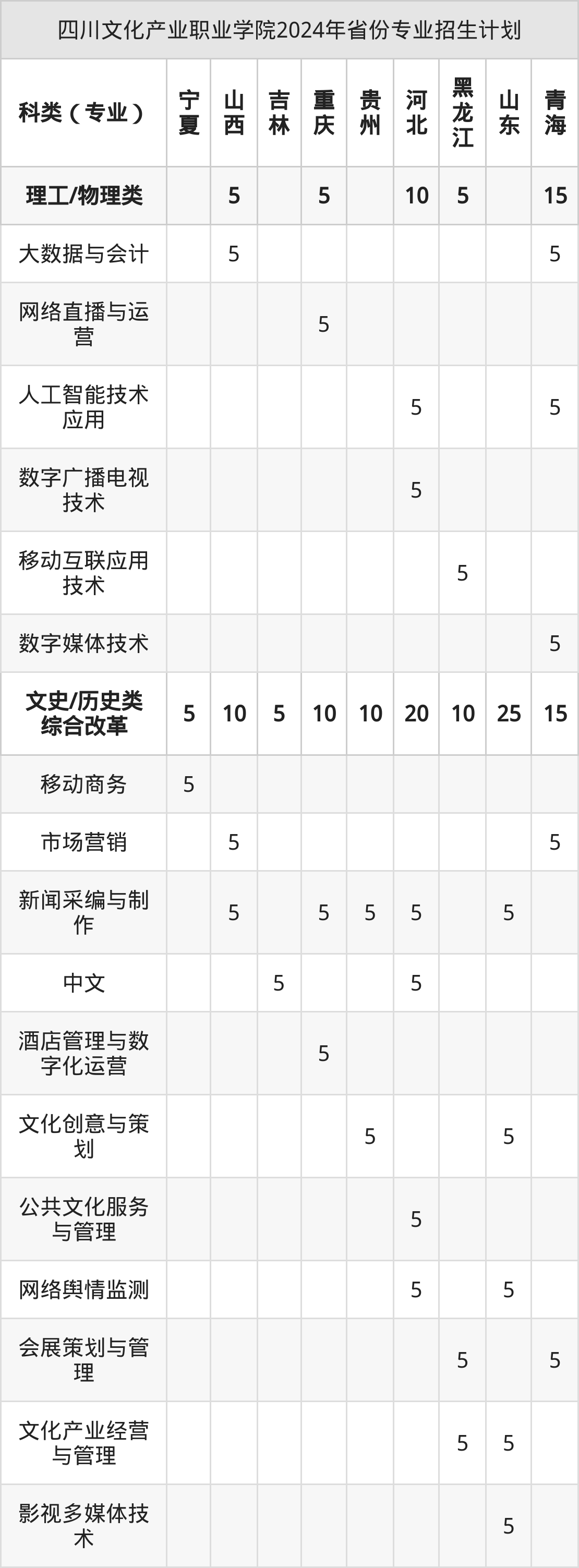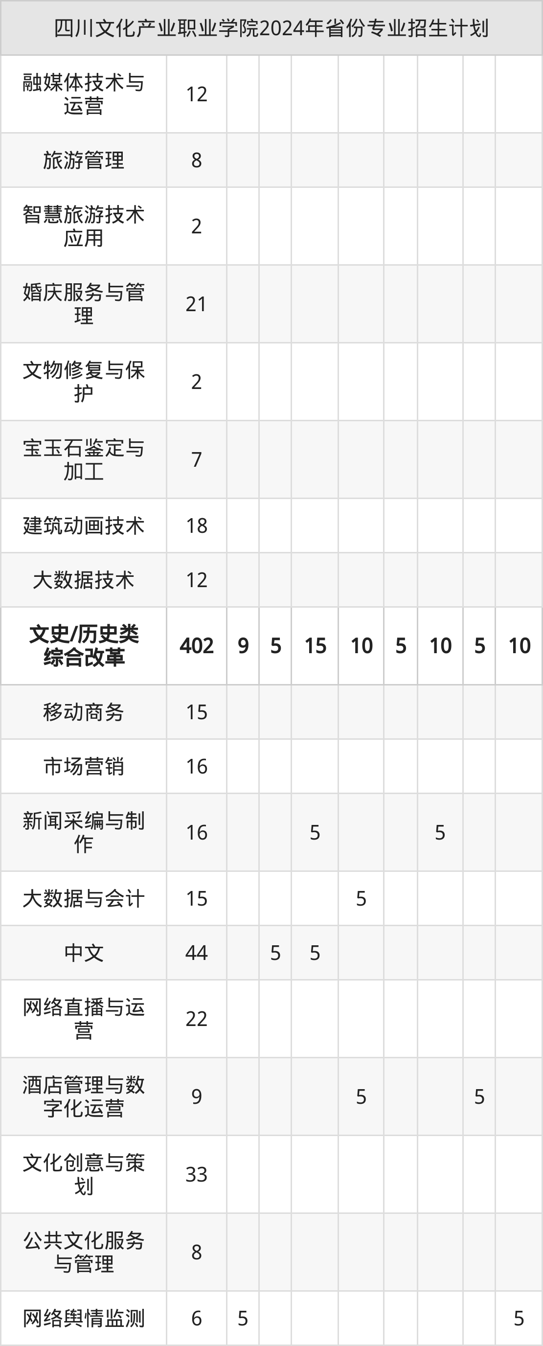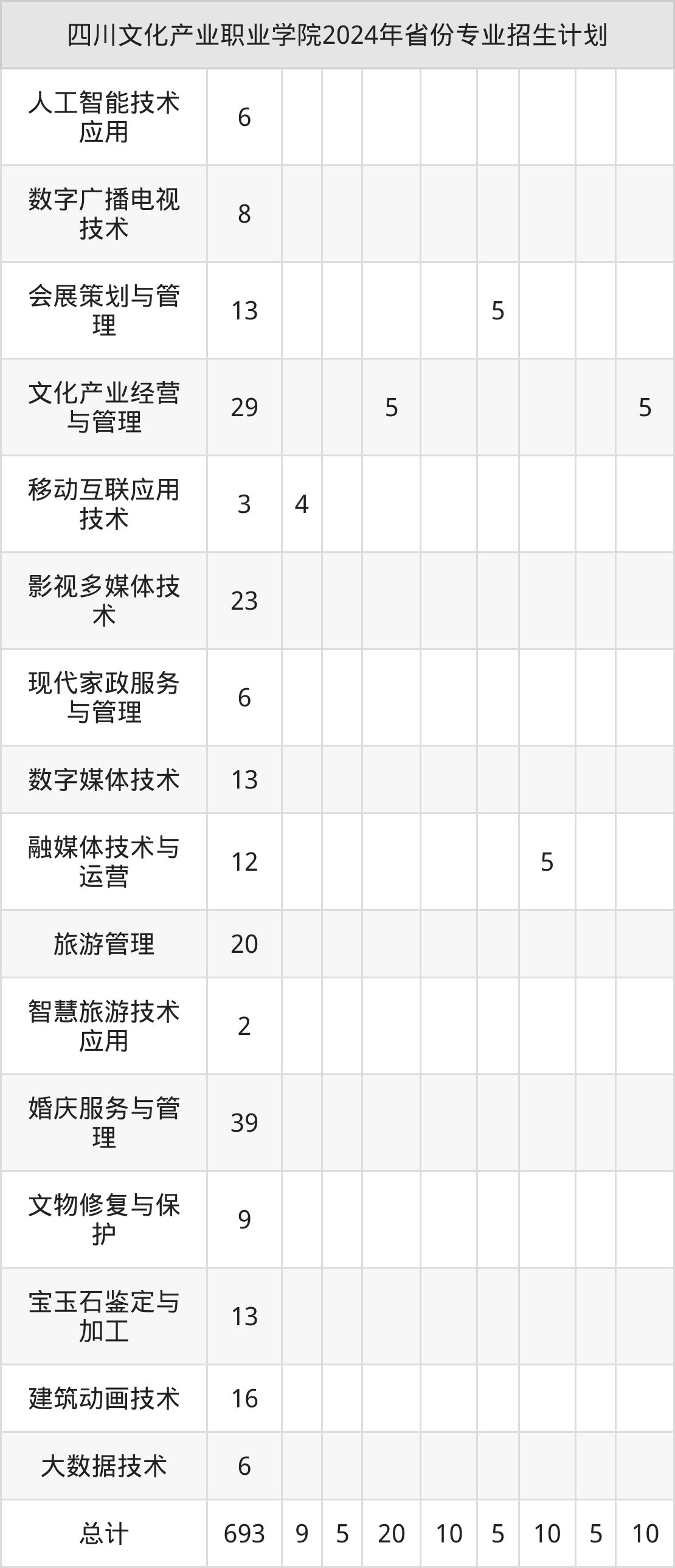 2025年四川文化产业职业学院专科招生计划待公布,下面附上2024年数据,暂供参考: