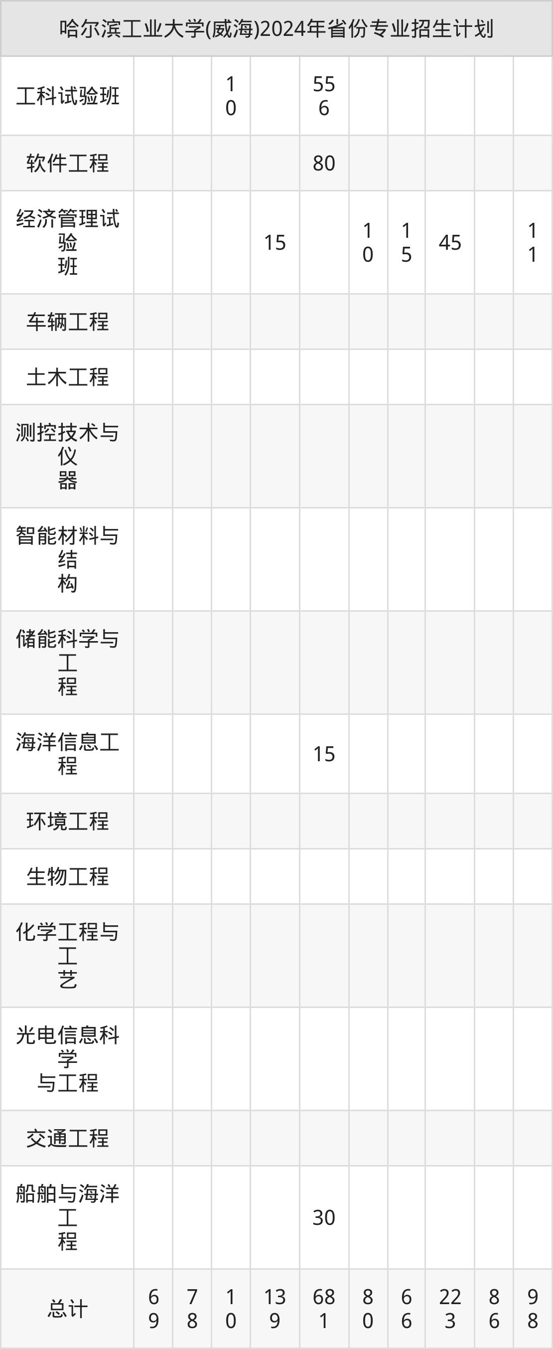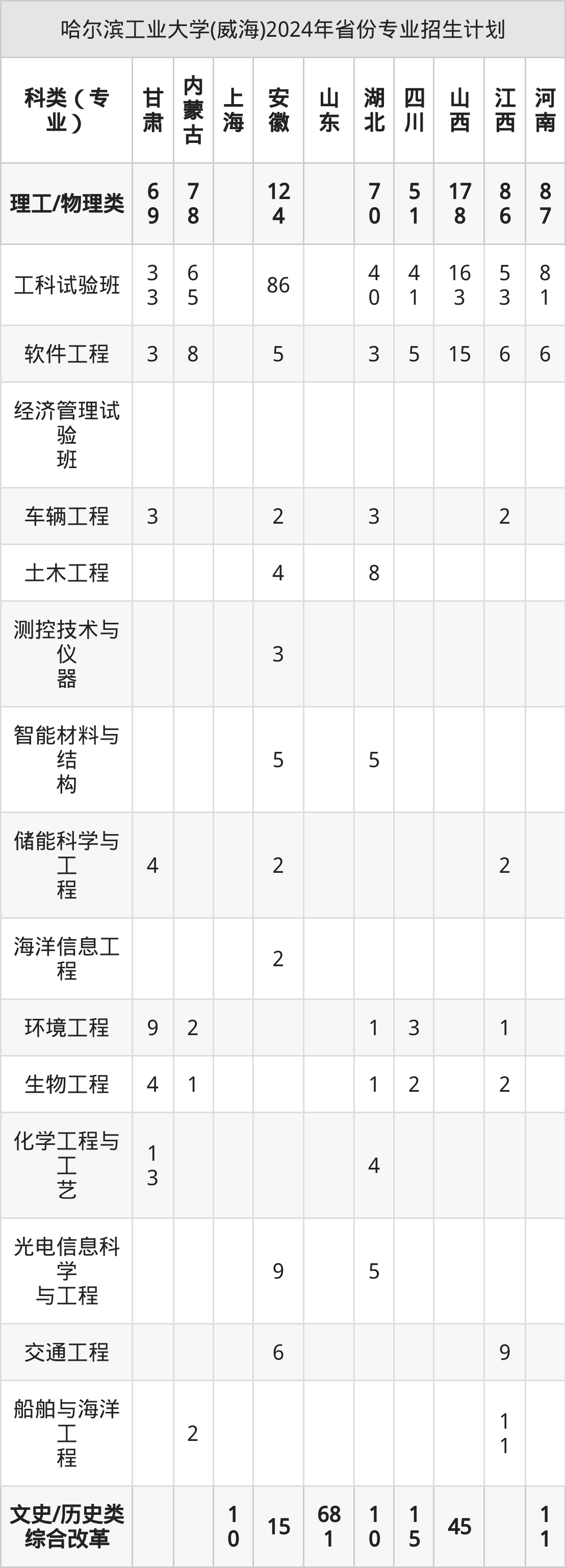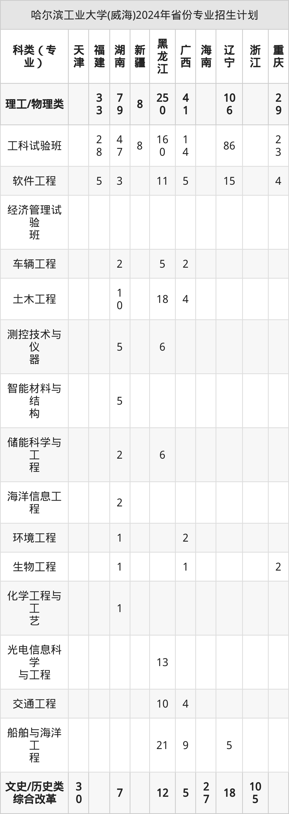2025年哈尔滨工业大学(威海)本科招生计划待公布,下面附上2024年数据,暂供参考: