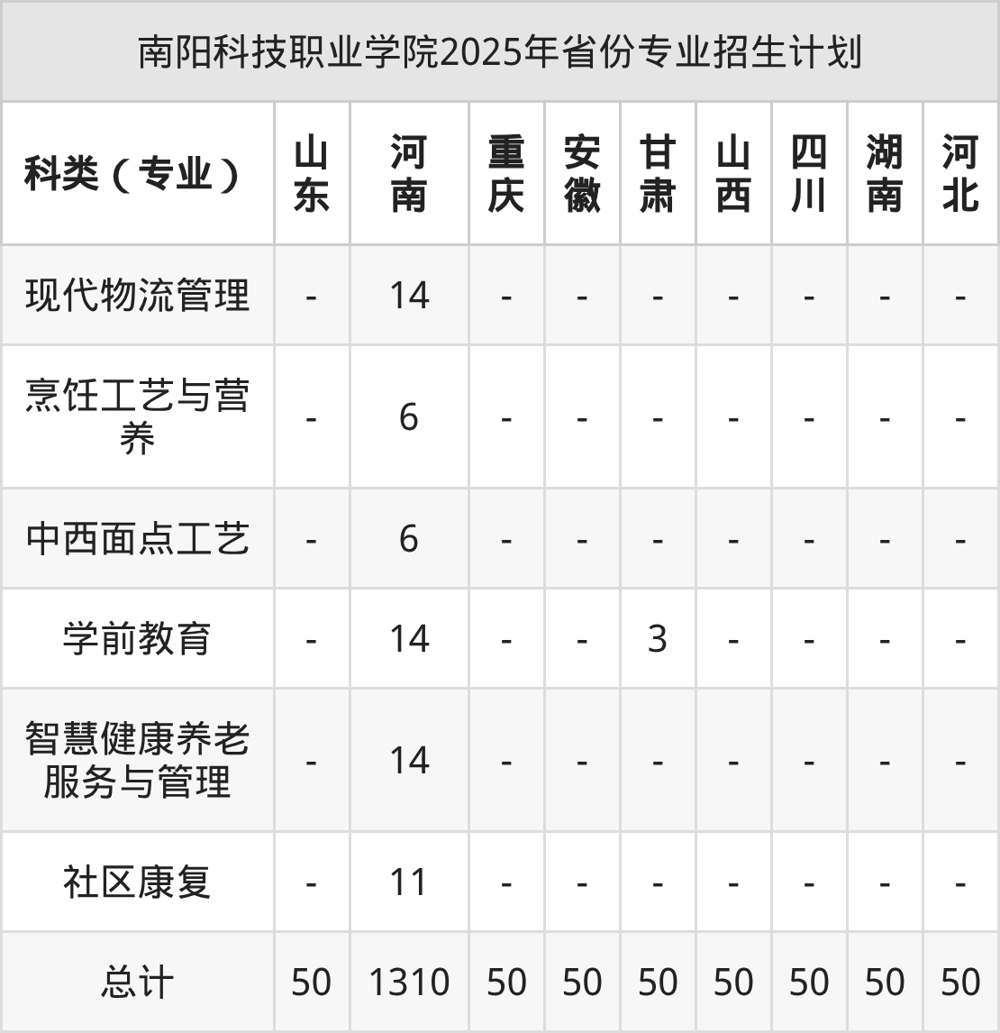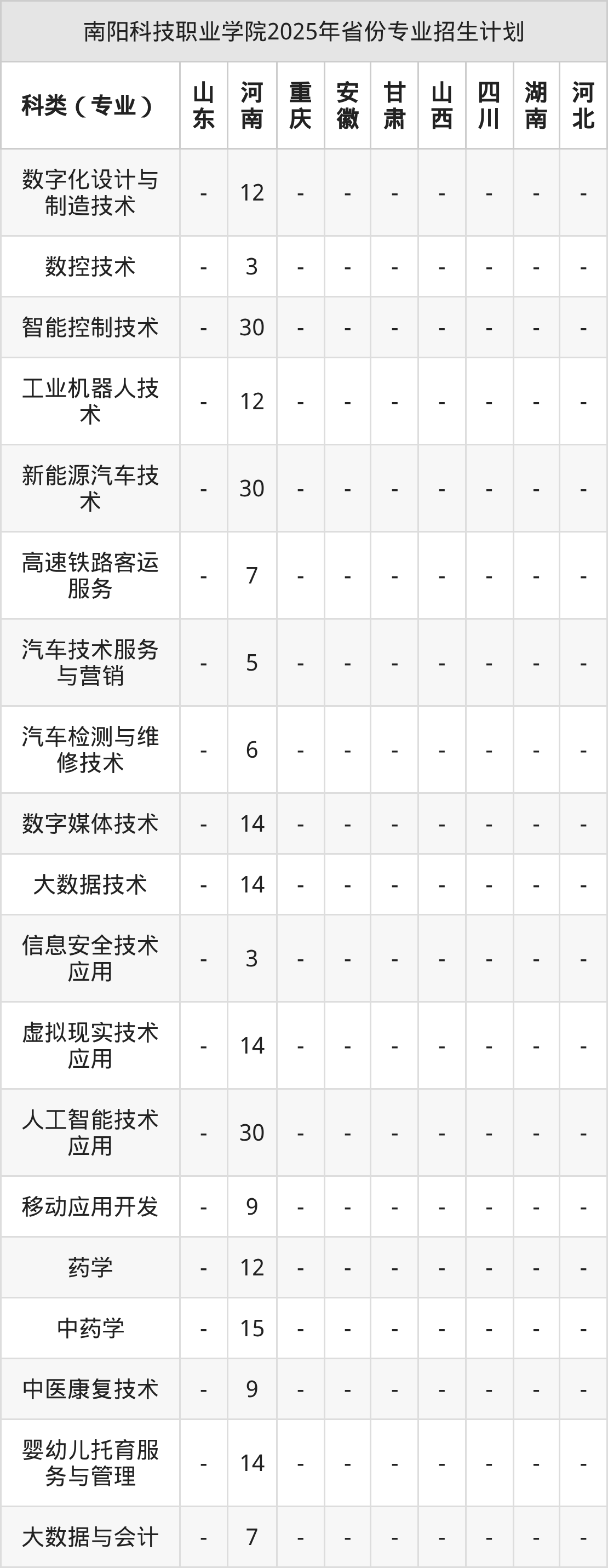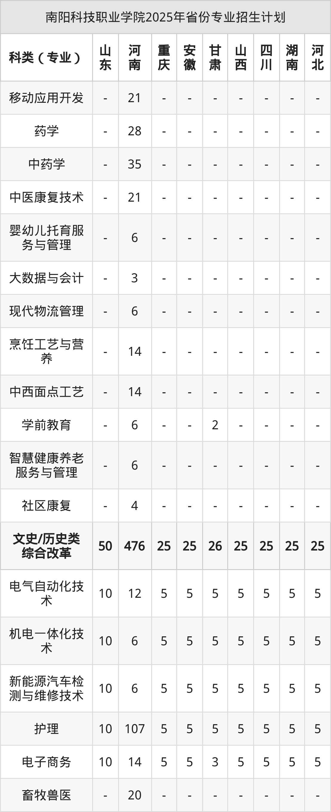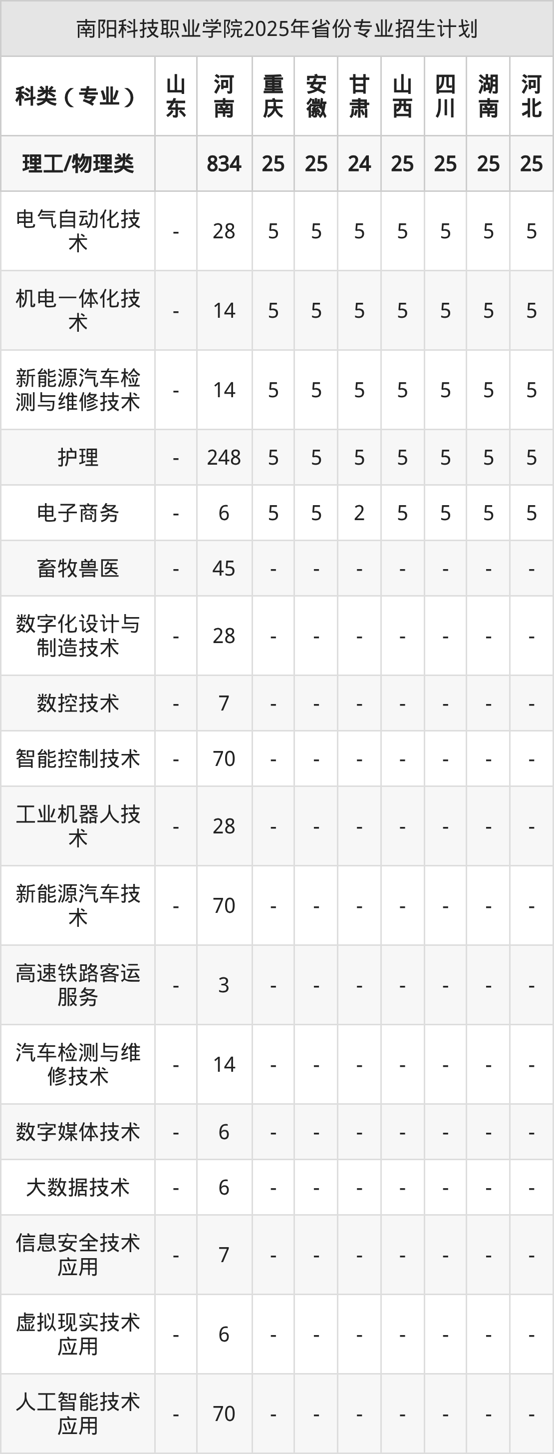 2026年南阳科技职业学院专科招生计划待公布,下面附上2025年数据,暂供参考: