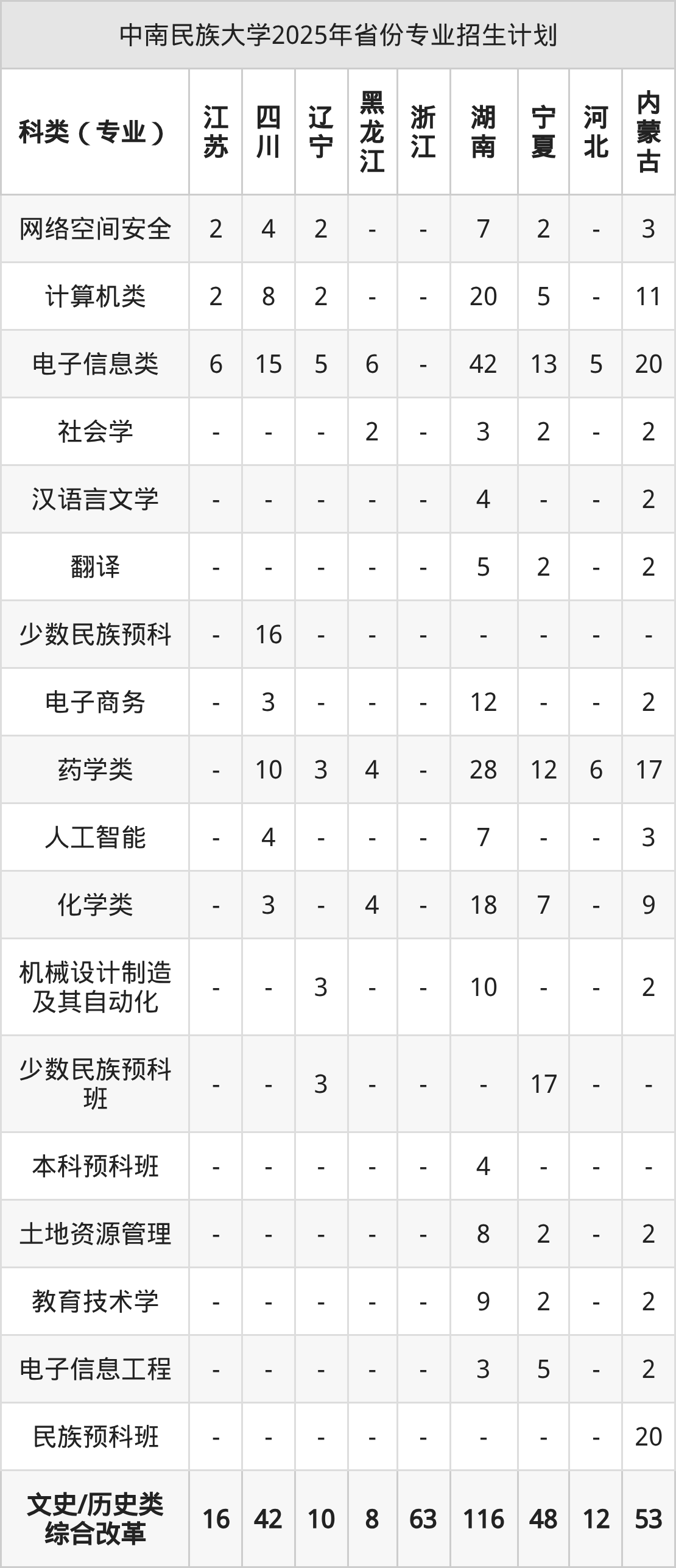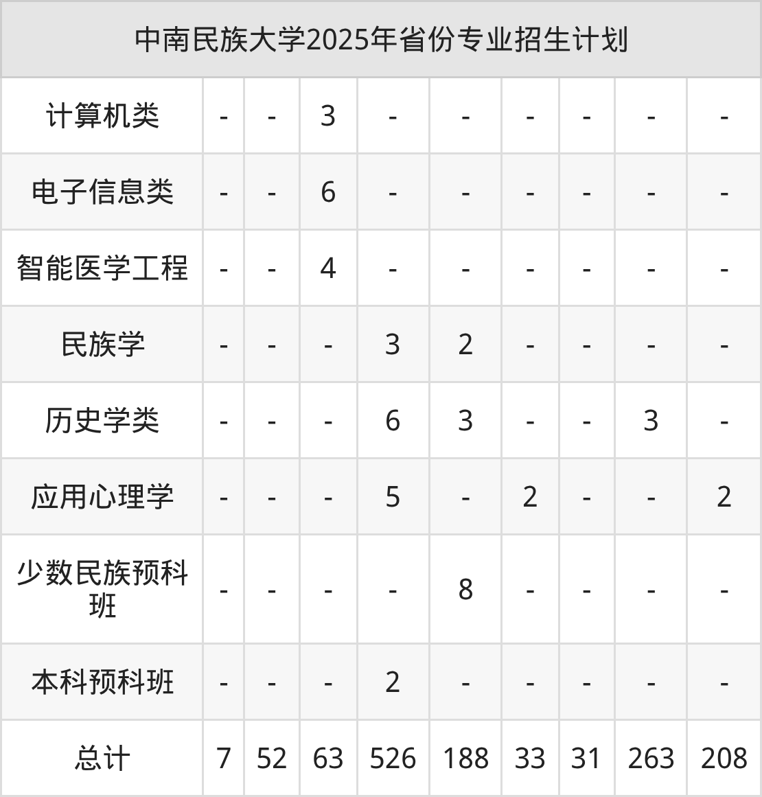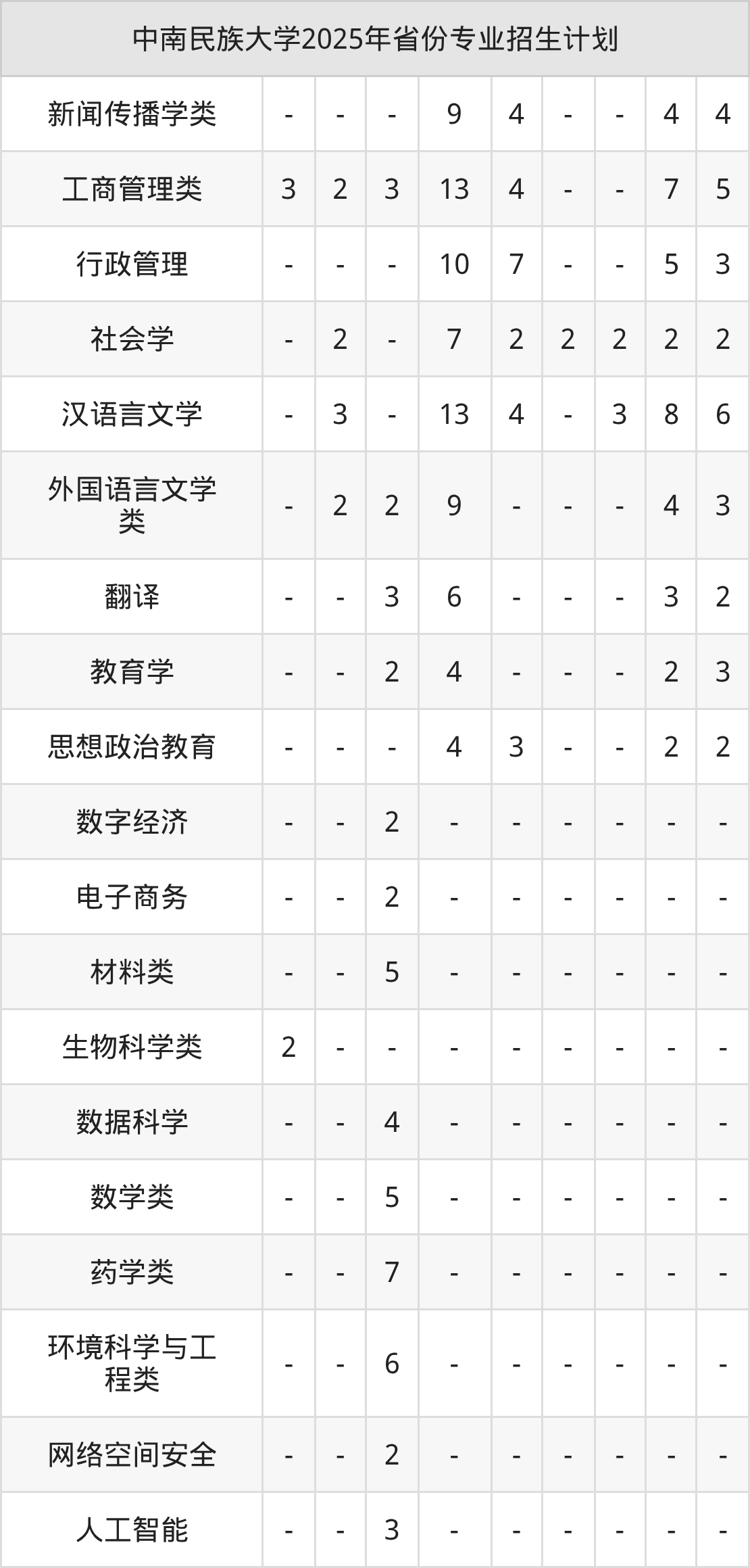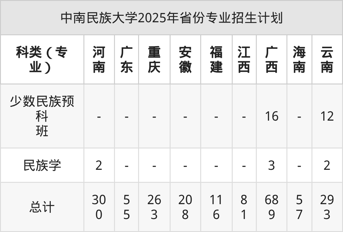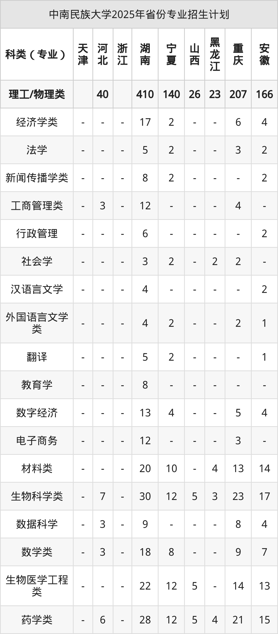 2026年中南民族大学本科招生计划待公布,下面附上2025年数据,暂供参考: