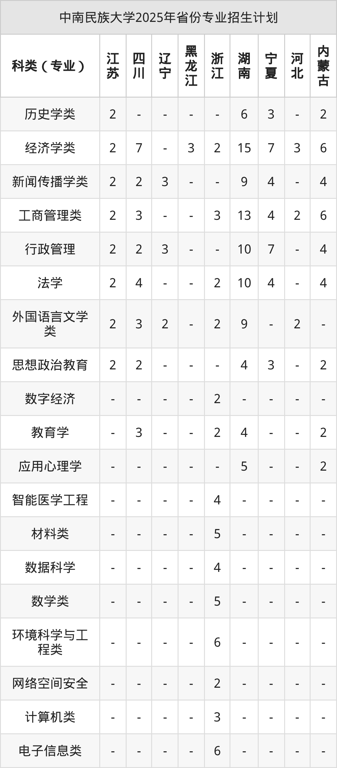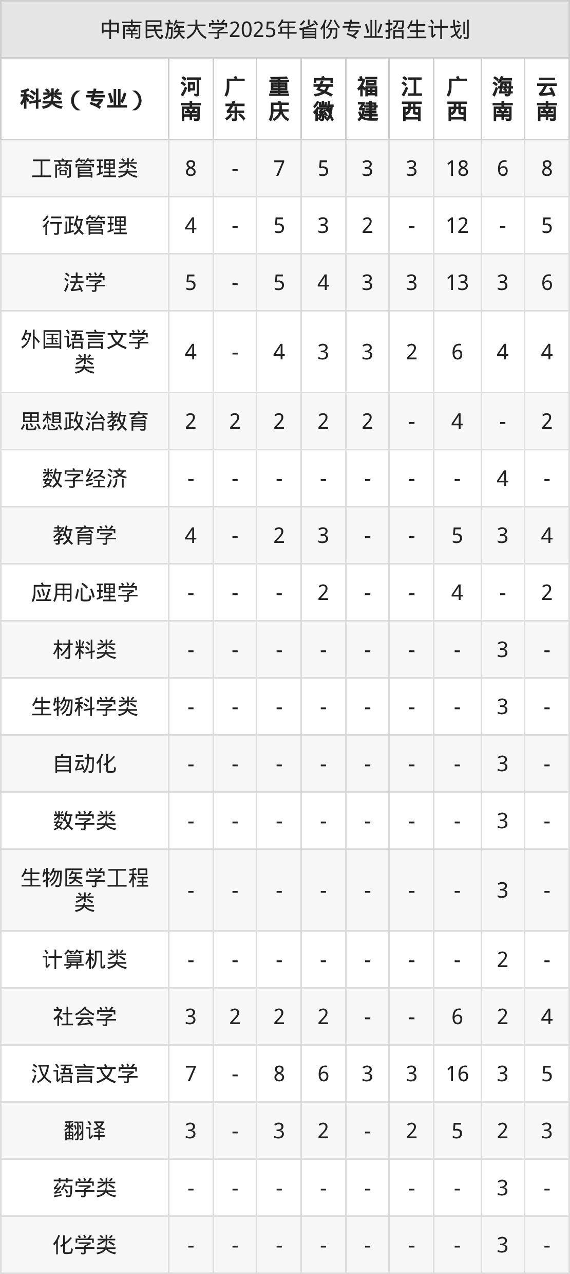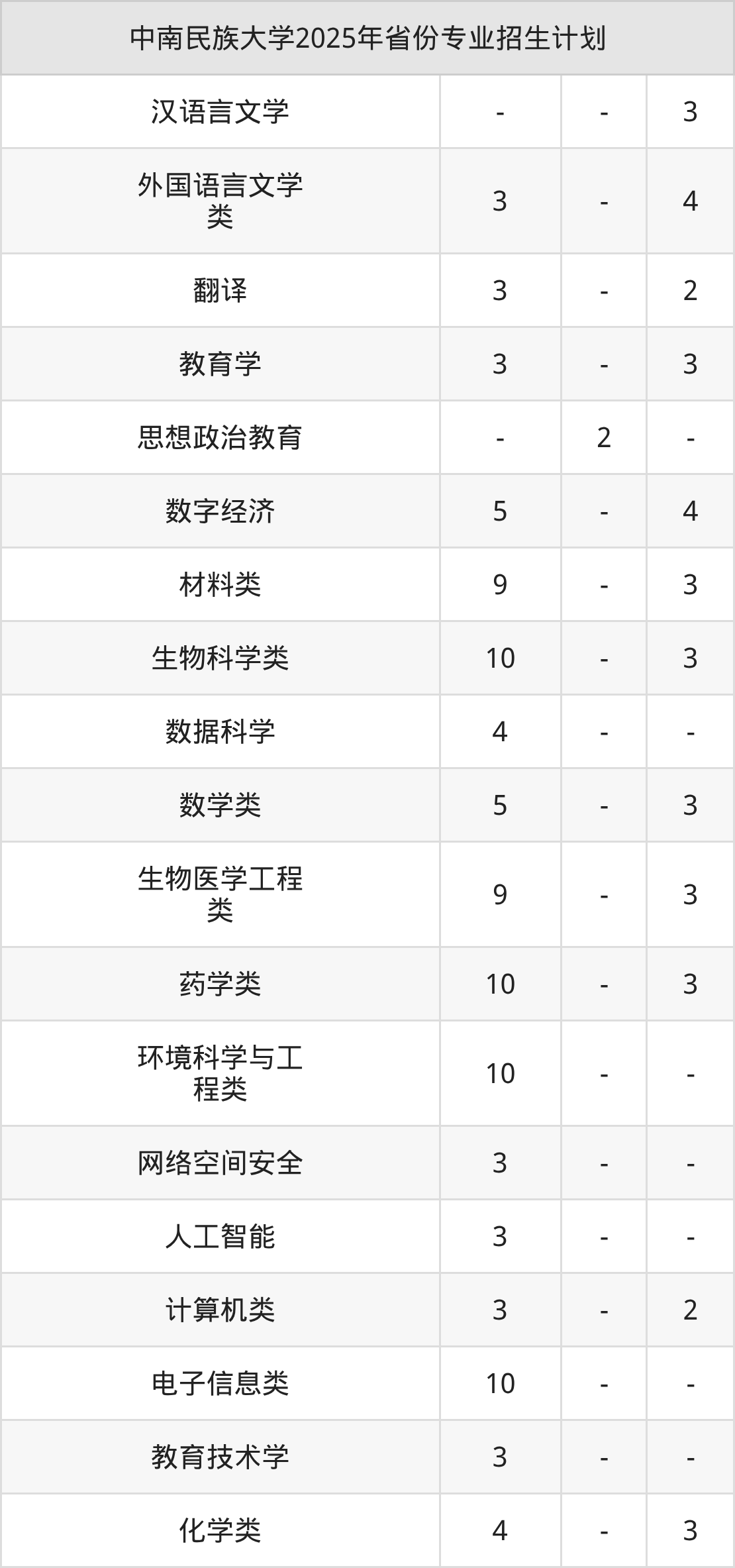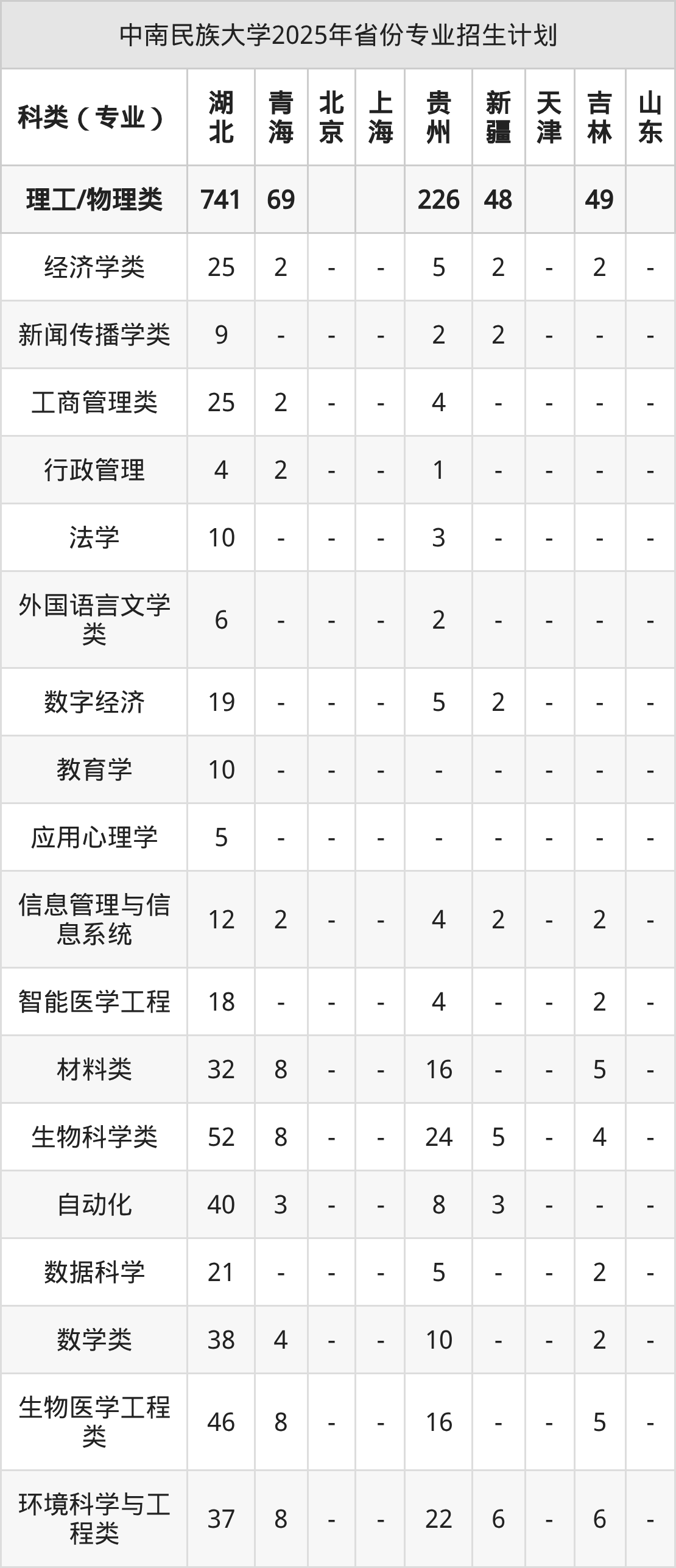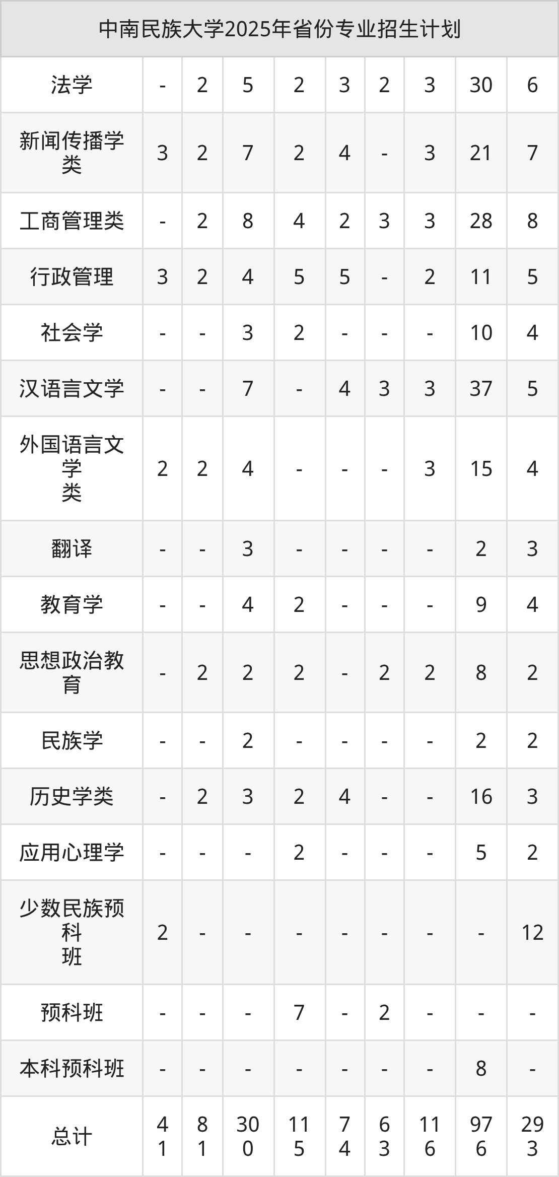 2026年中南民族大学本科招生计划待公布,下面附上2025年数据,暂供参考: