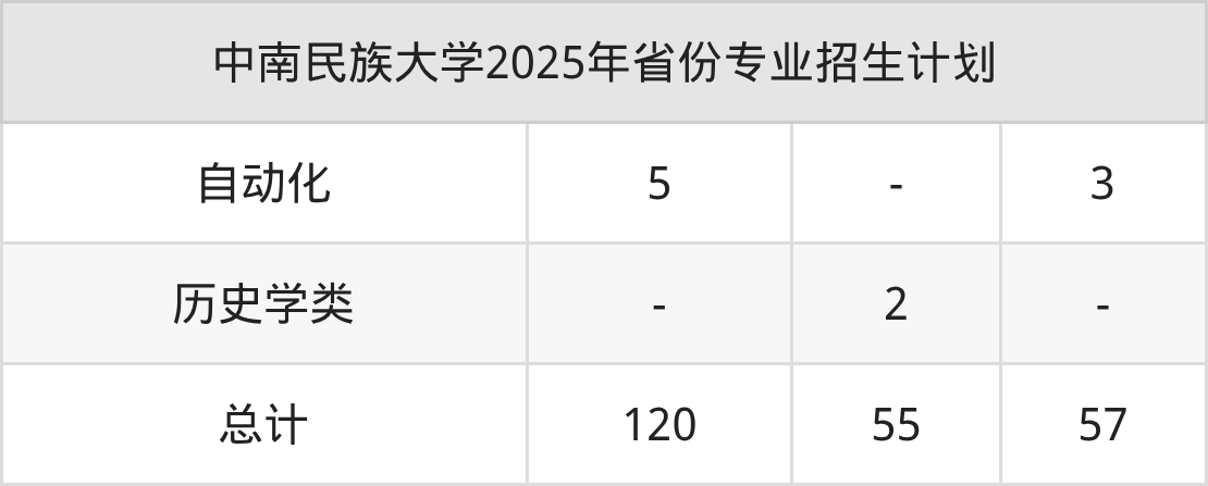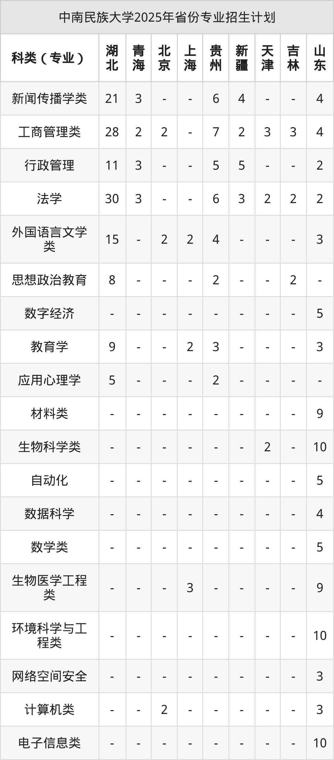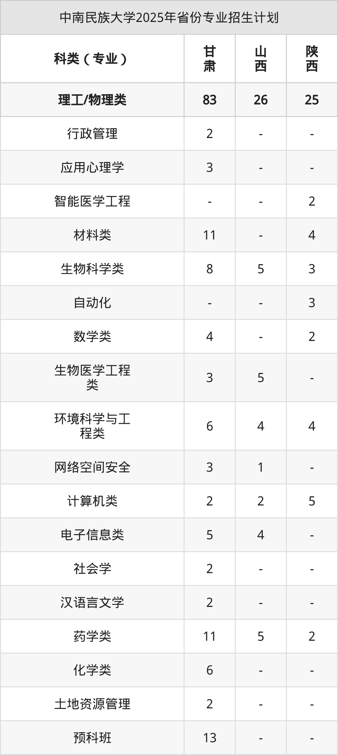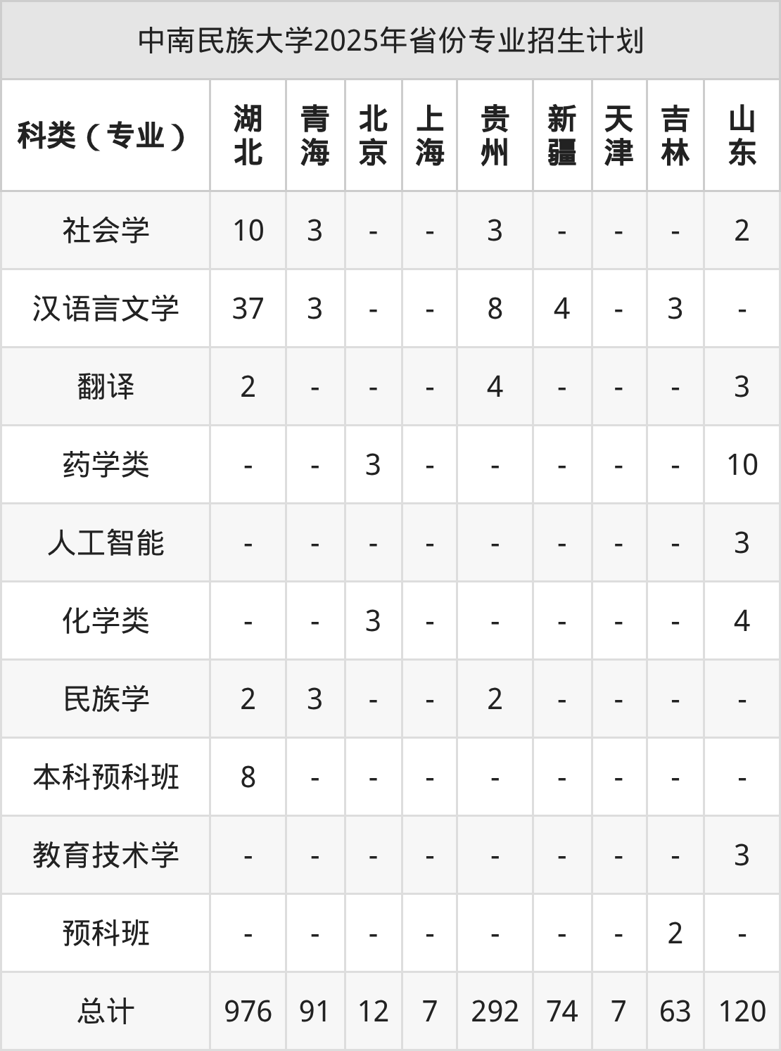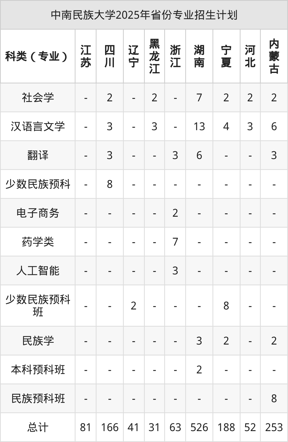 2026年中南民族大学本科招生计划待公布,下面附上2025年数据,暂供参考: