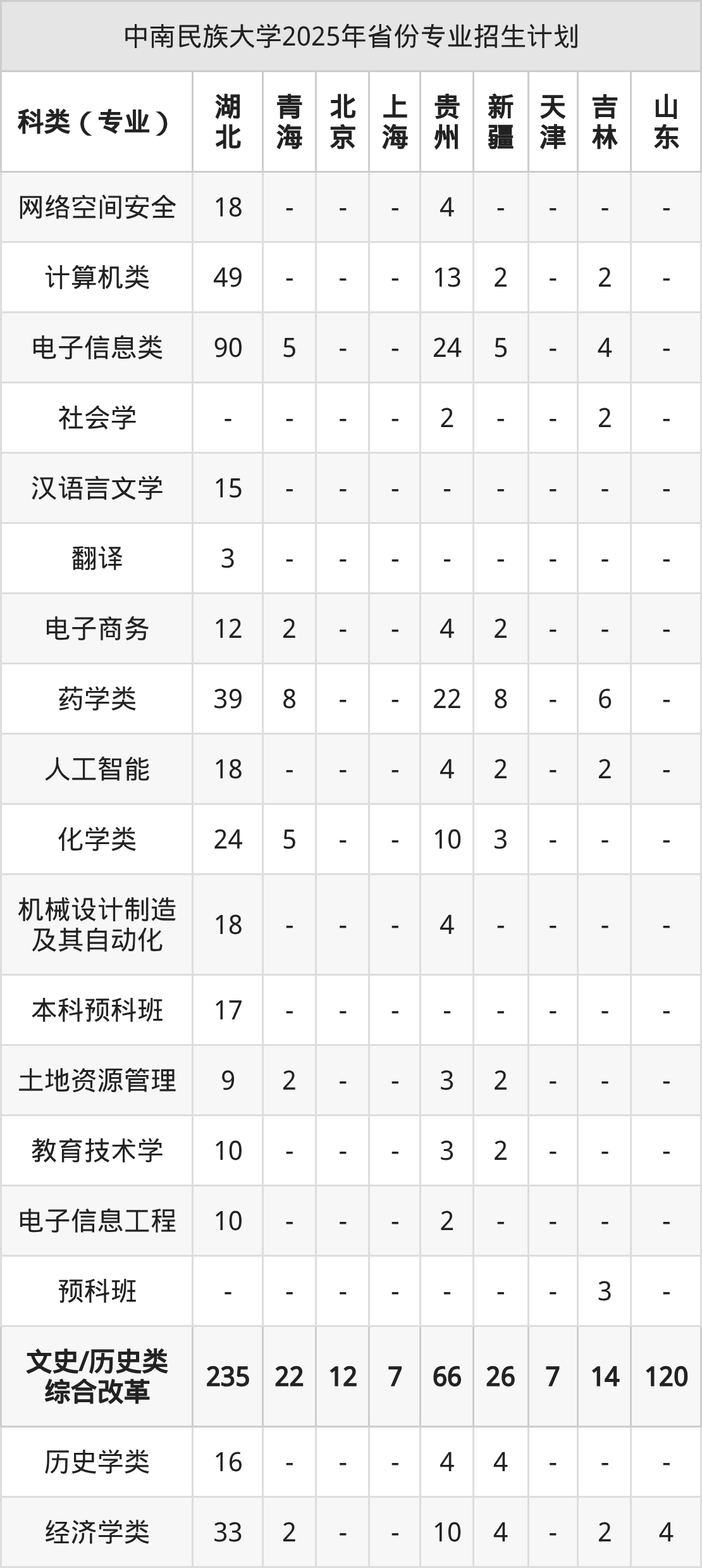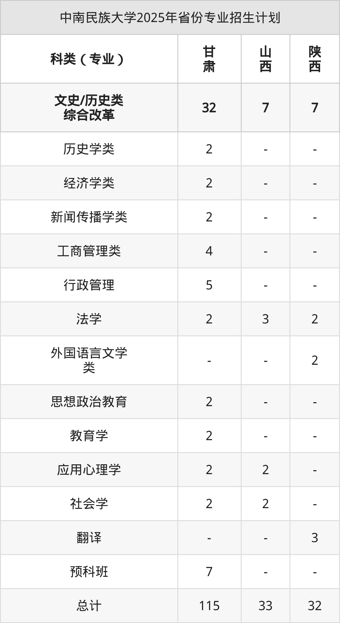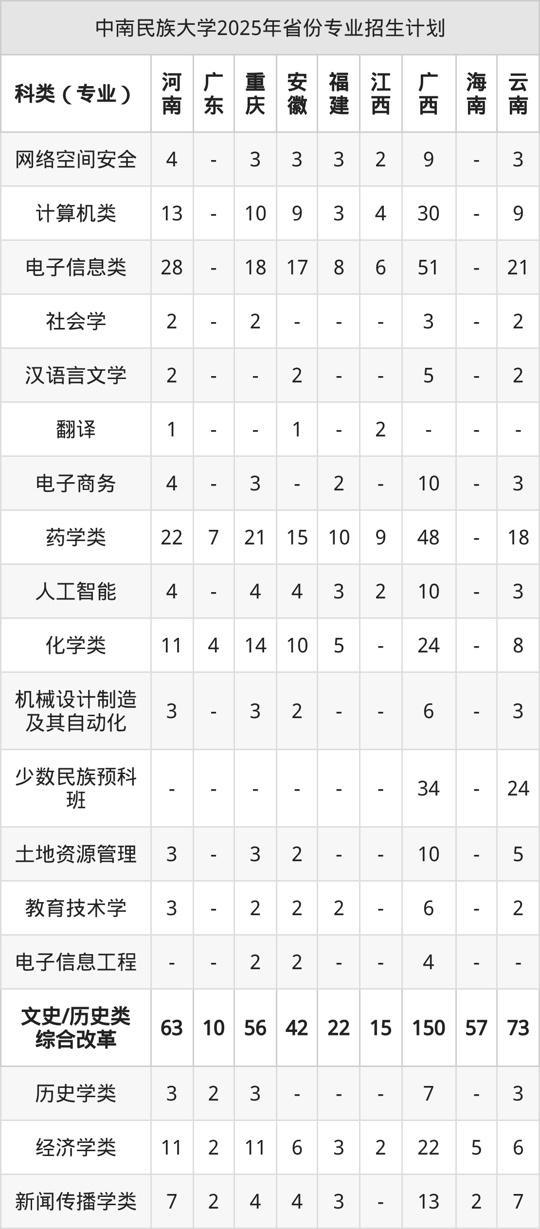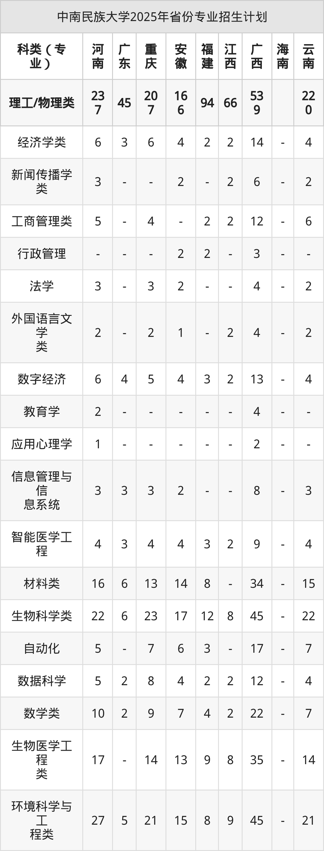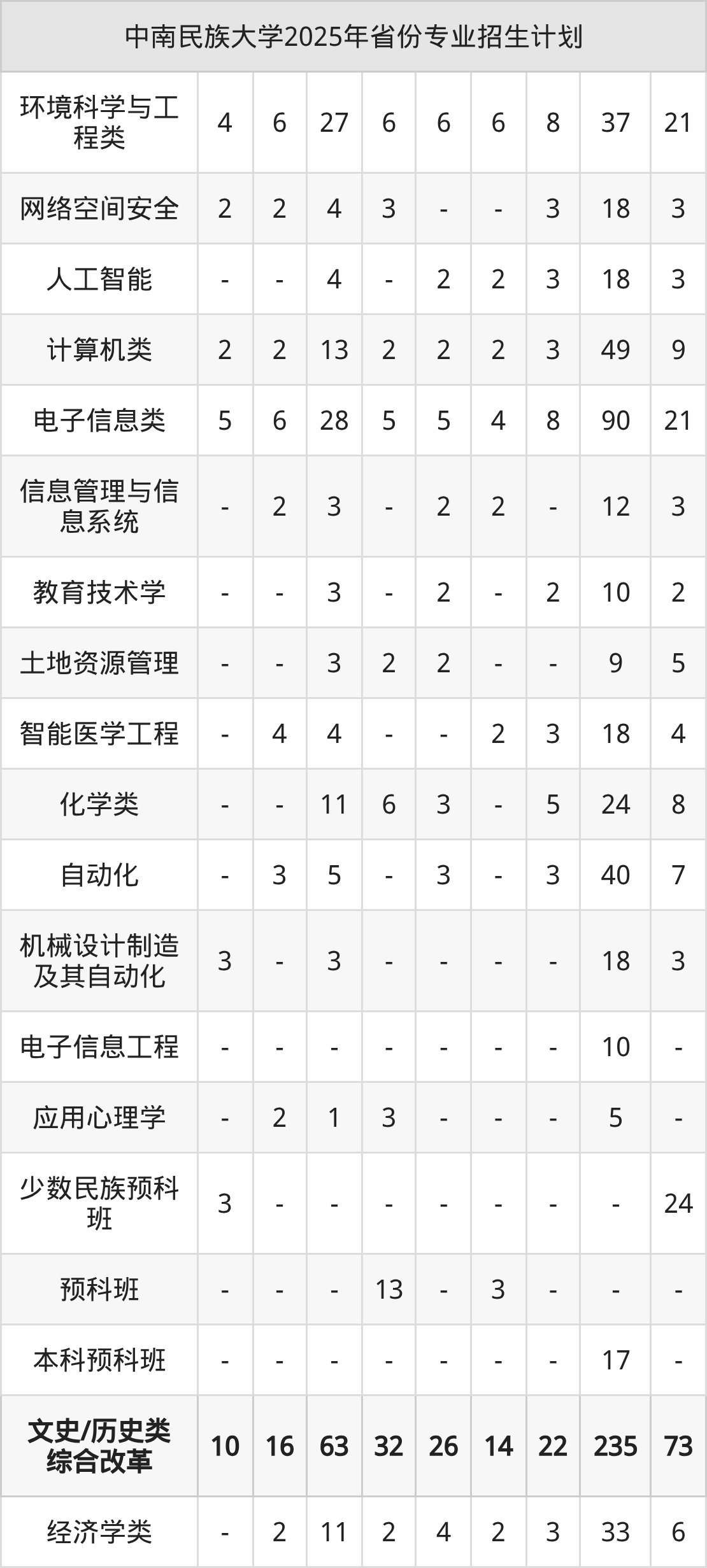2026年中南民族大学本科招生计划待公布,下面附上2025年数据,暂供参考: