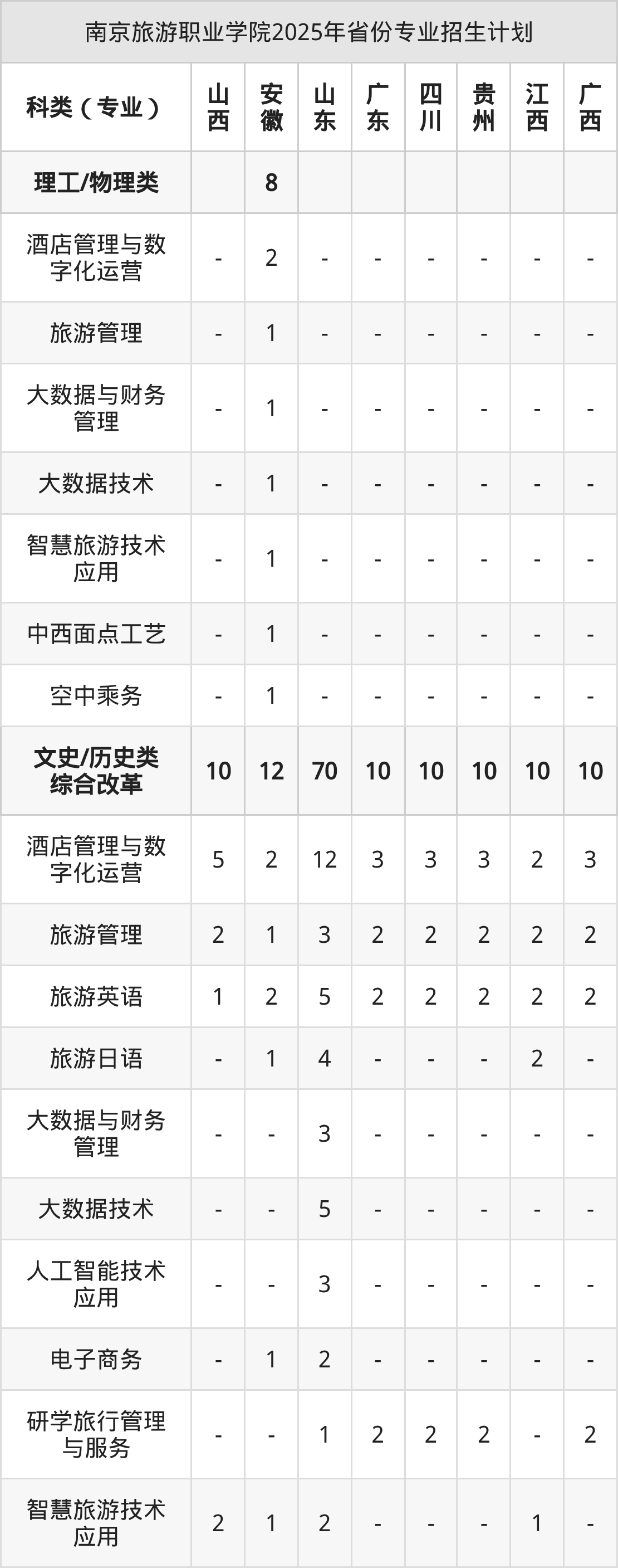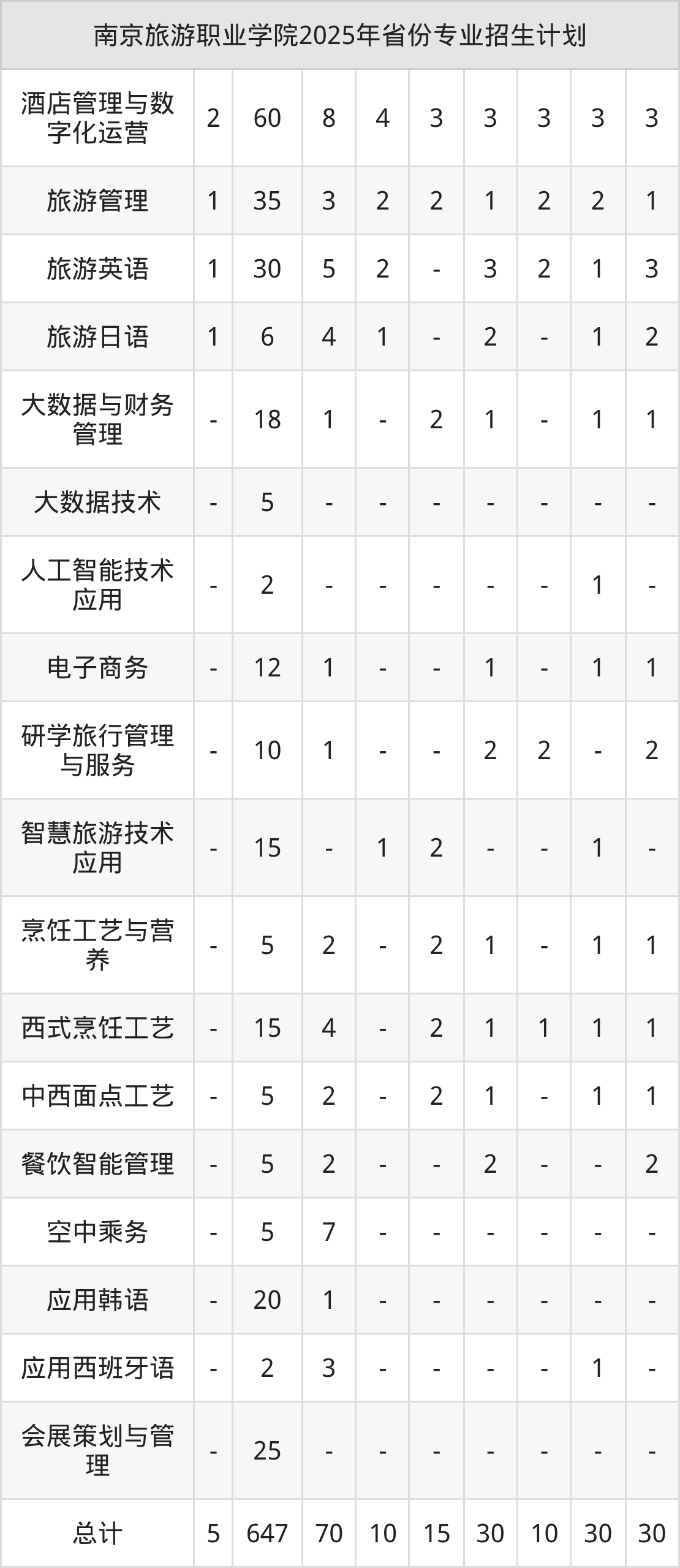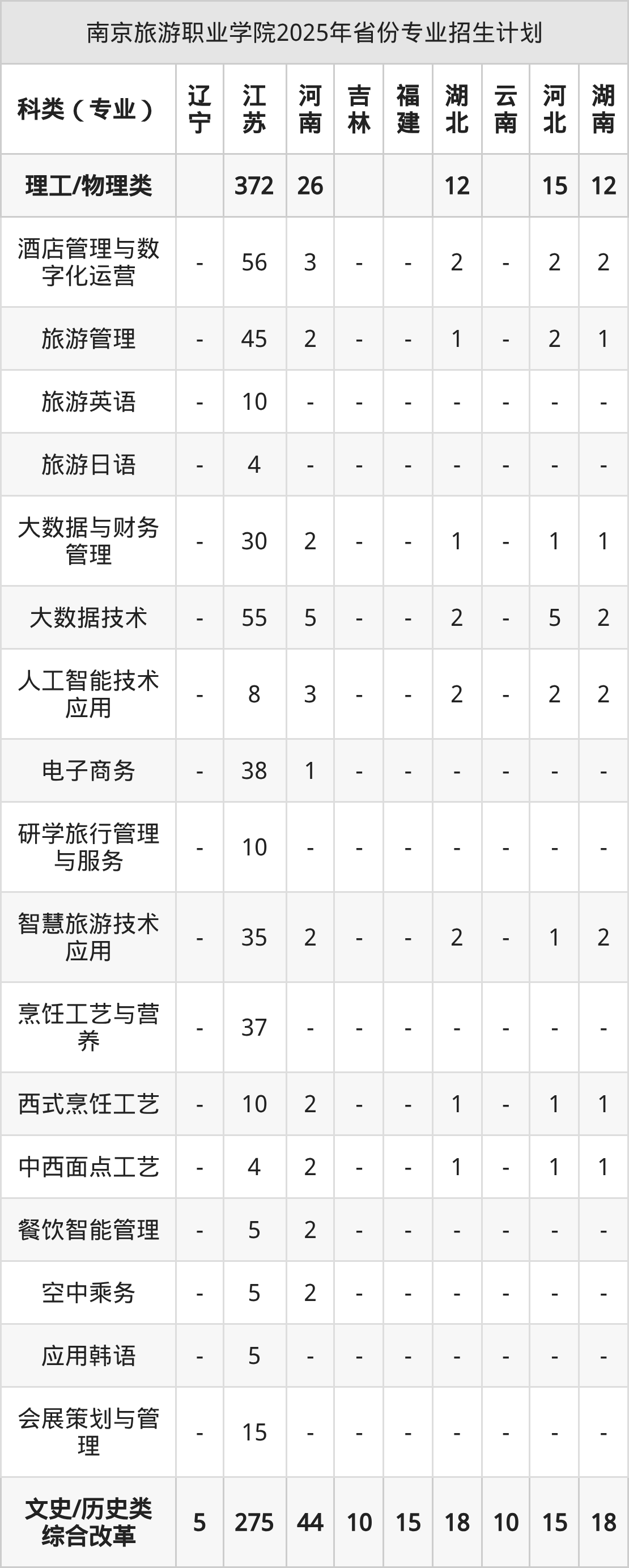 2026年南京旅游职业学院专科招生计划待公布,下面附上2025年数据,暂供参考: