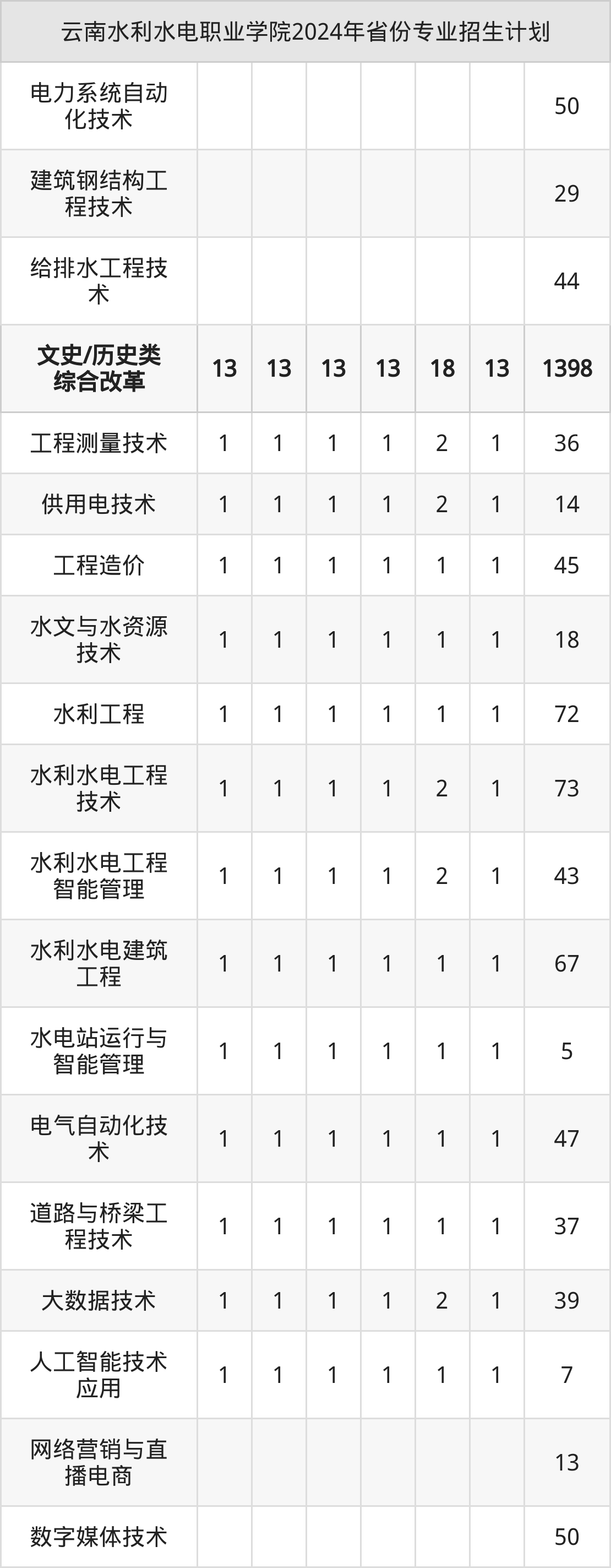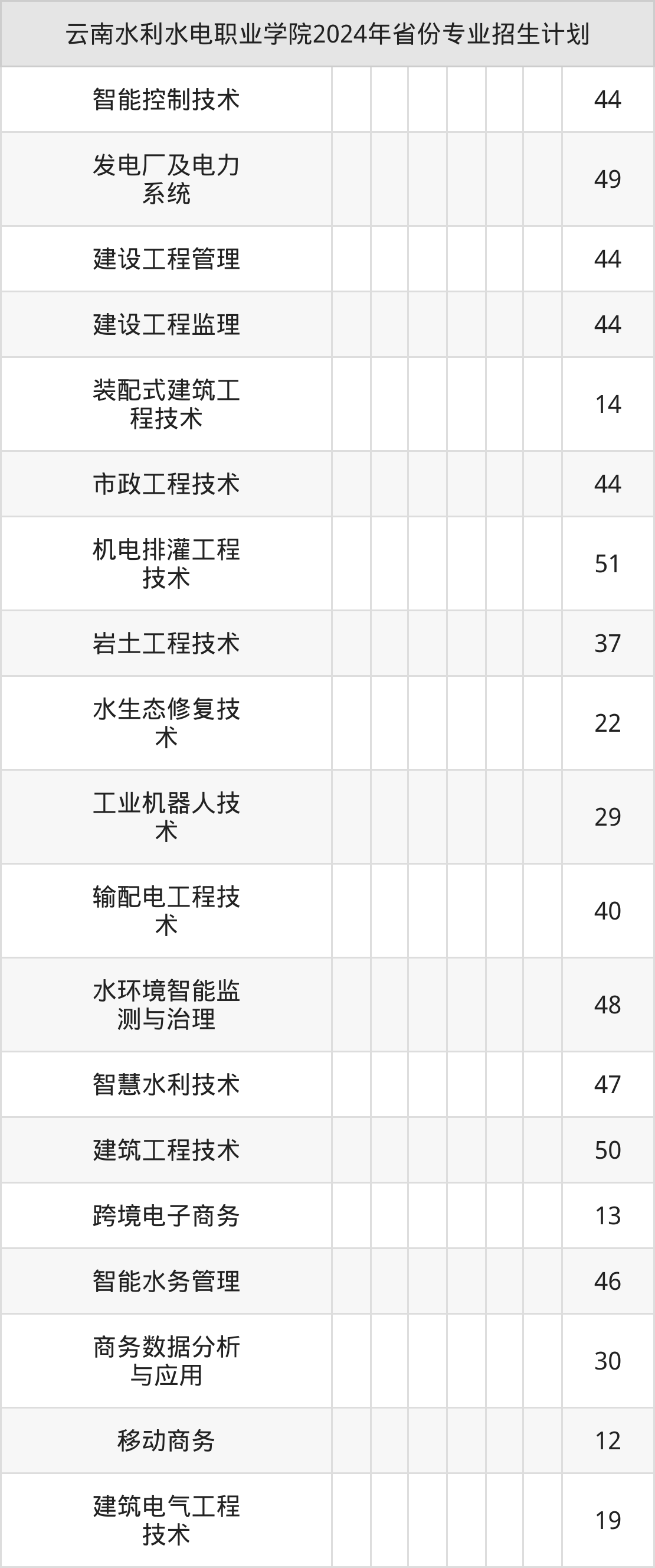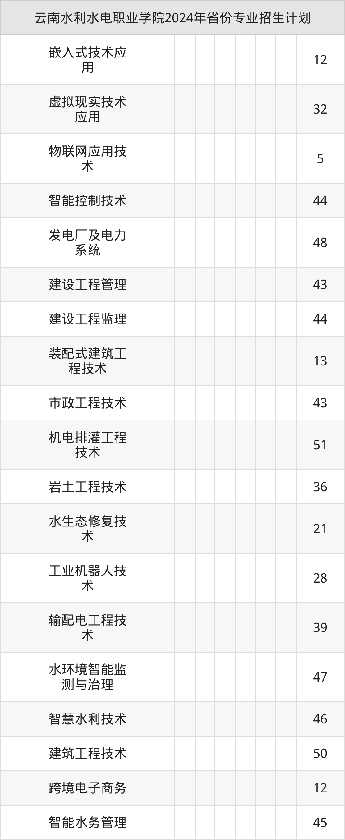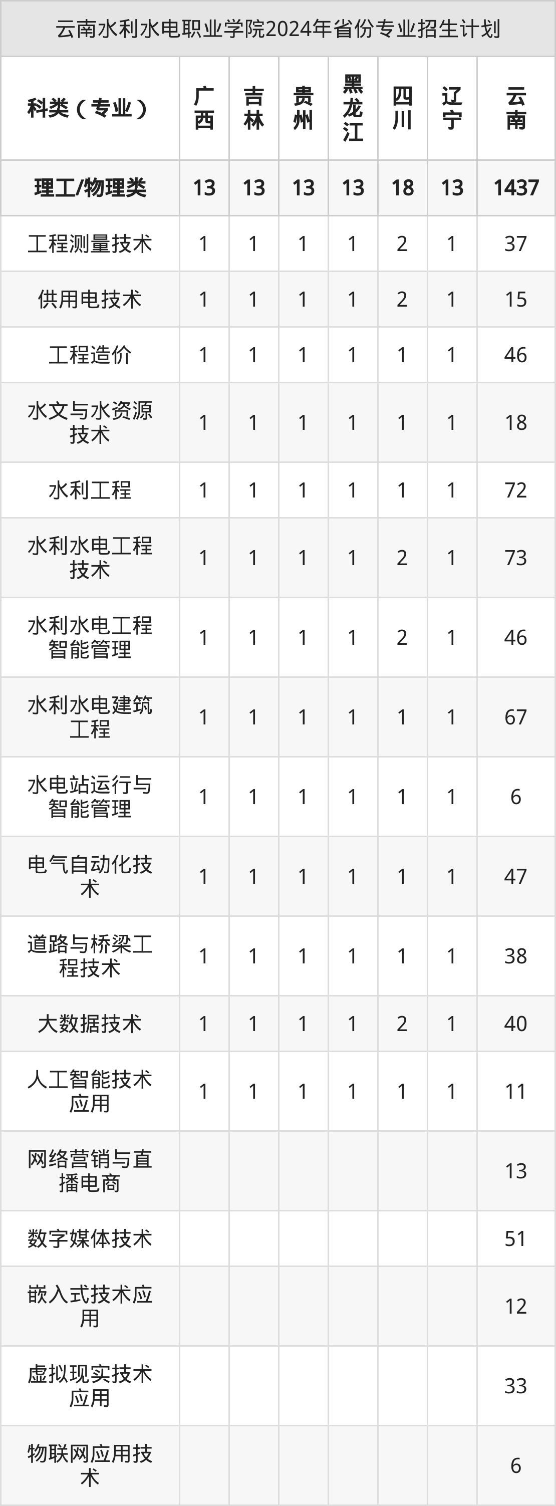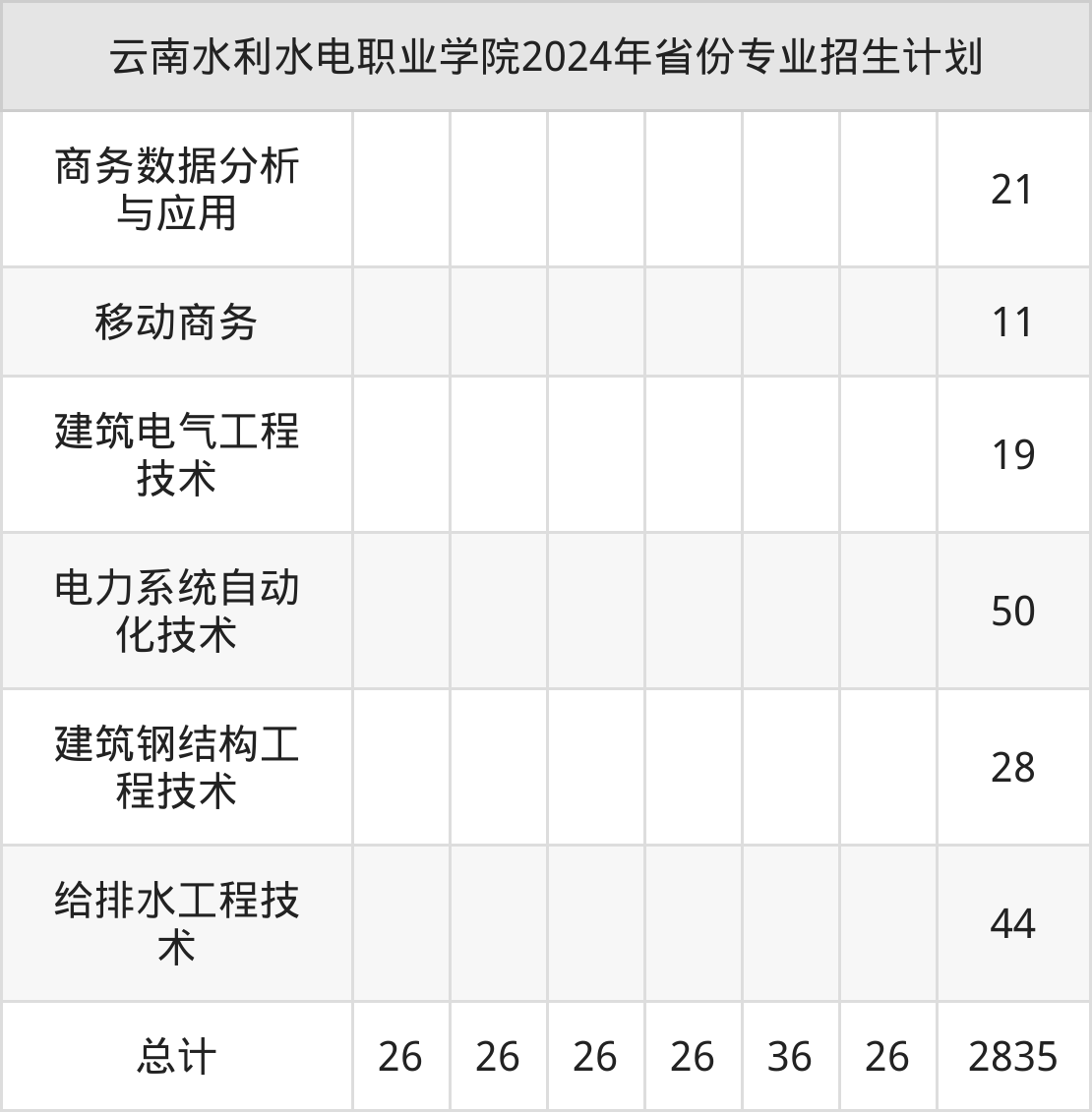 2025年云南水利水电职业学院专科招生计划待公布,下面附上2024年数据,暂供参考: