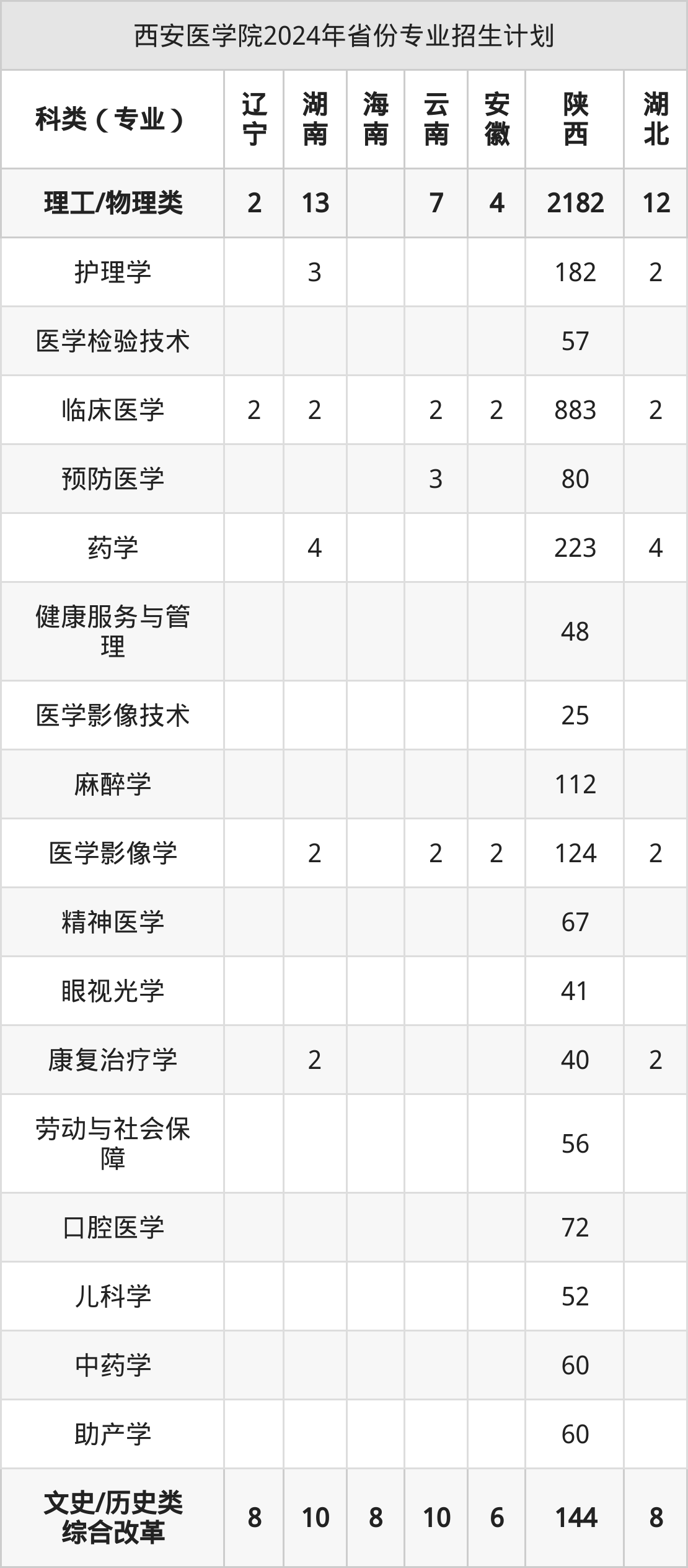 2025年西安医学院本科招生计划待公布,下面附上2024年数据,暂供参考: