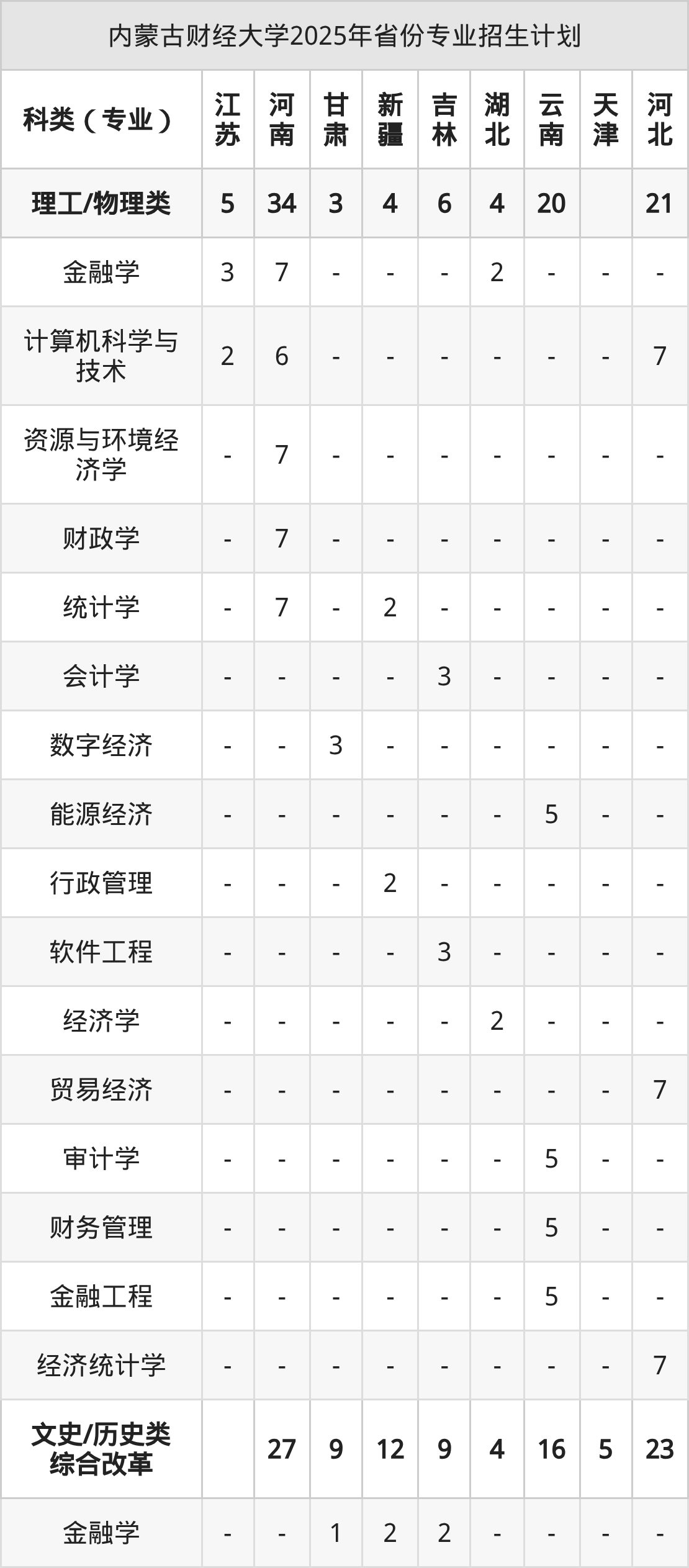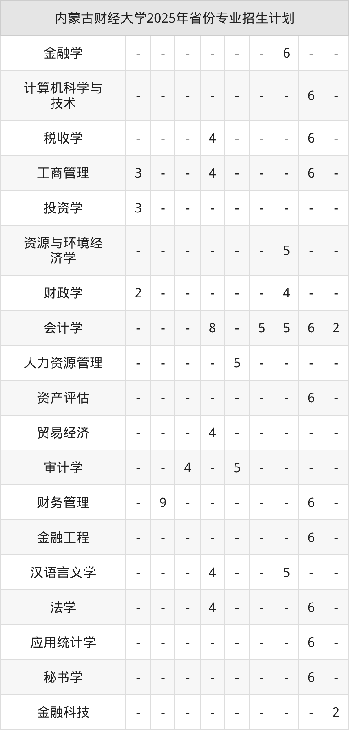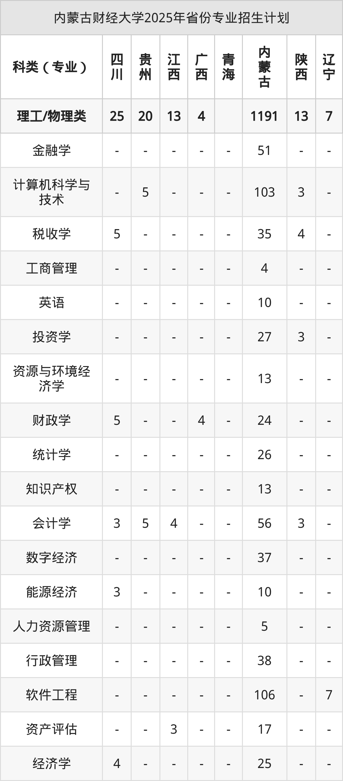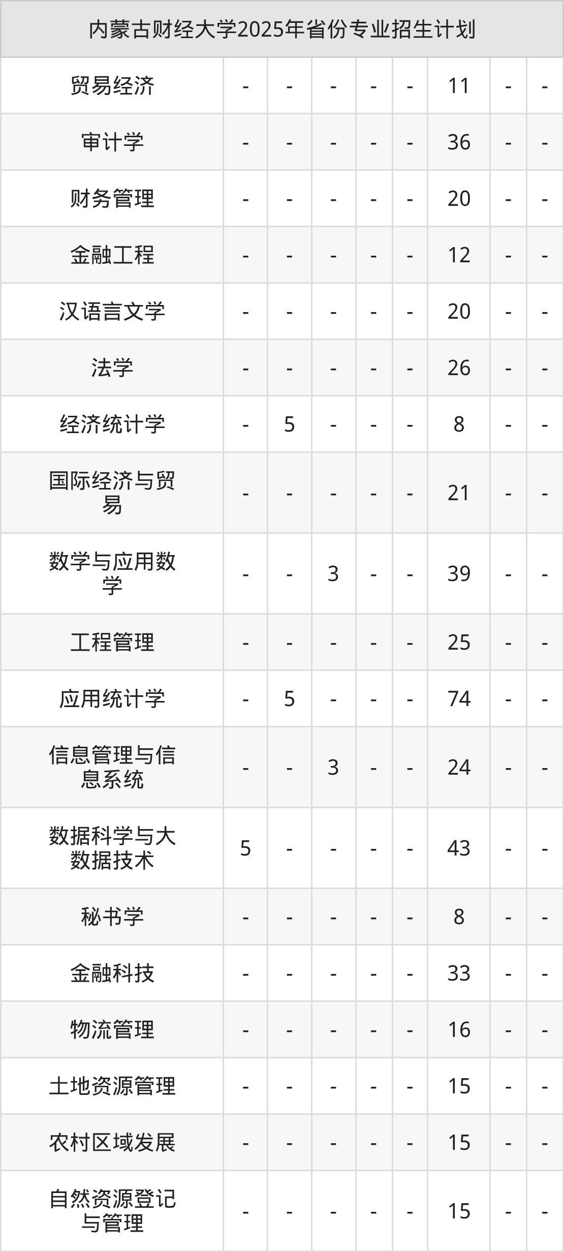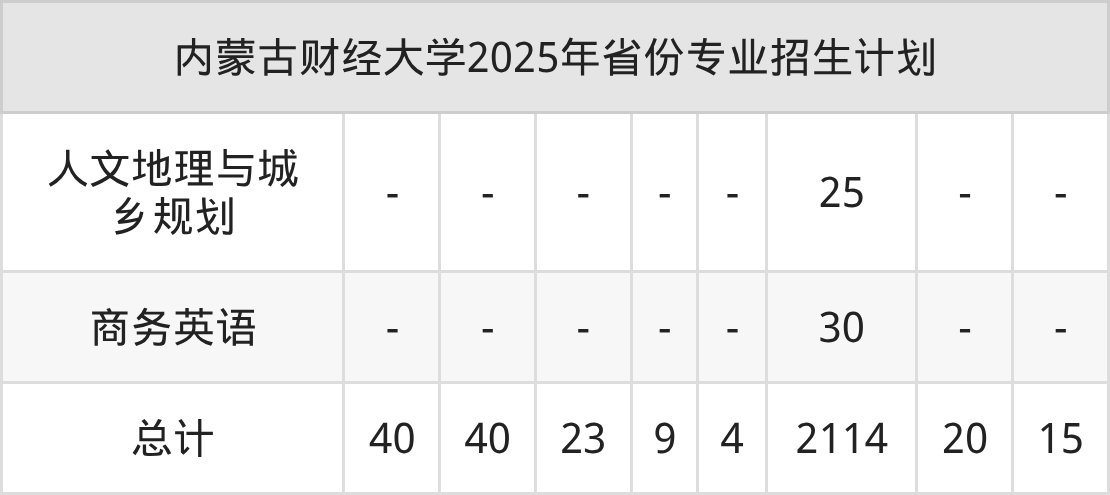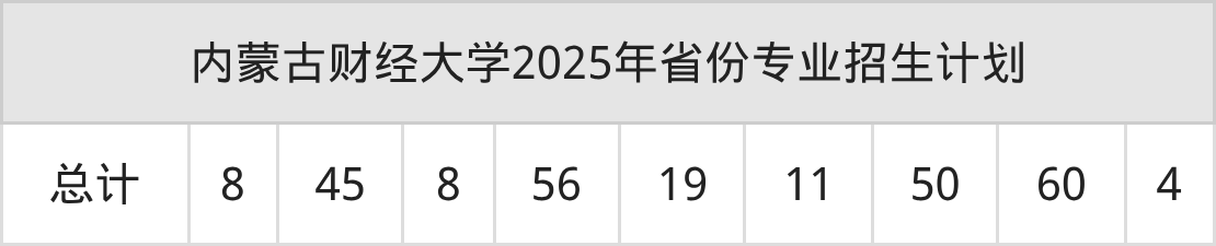 2026年内蒙古财经大学本科招生计划待公布,下面附上2025年数据,暂供参考: