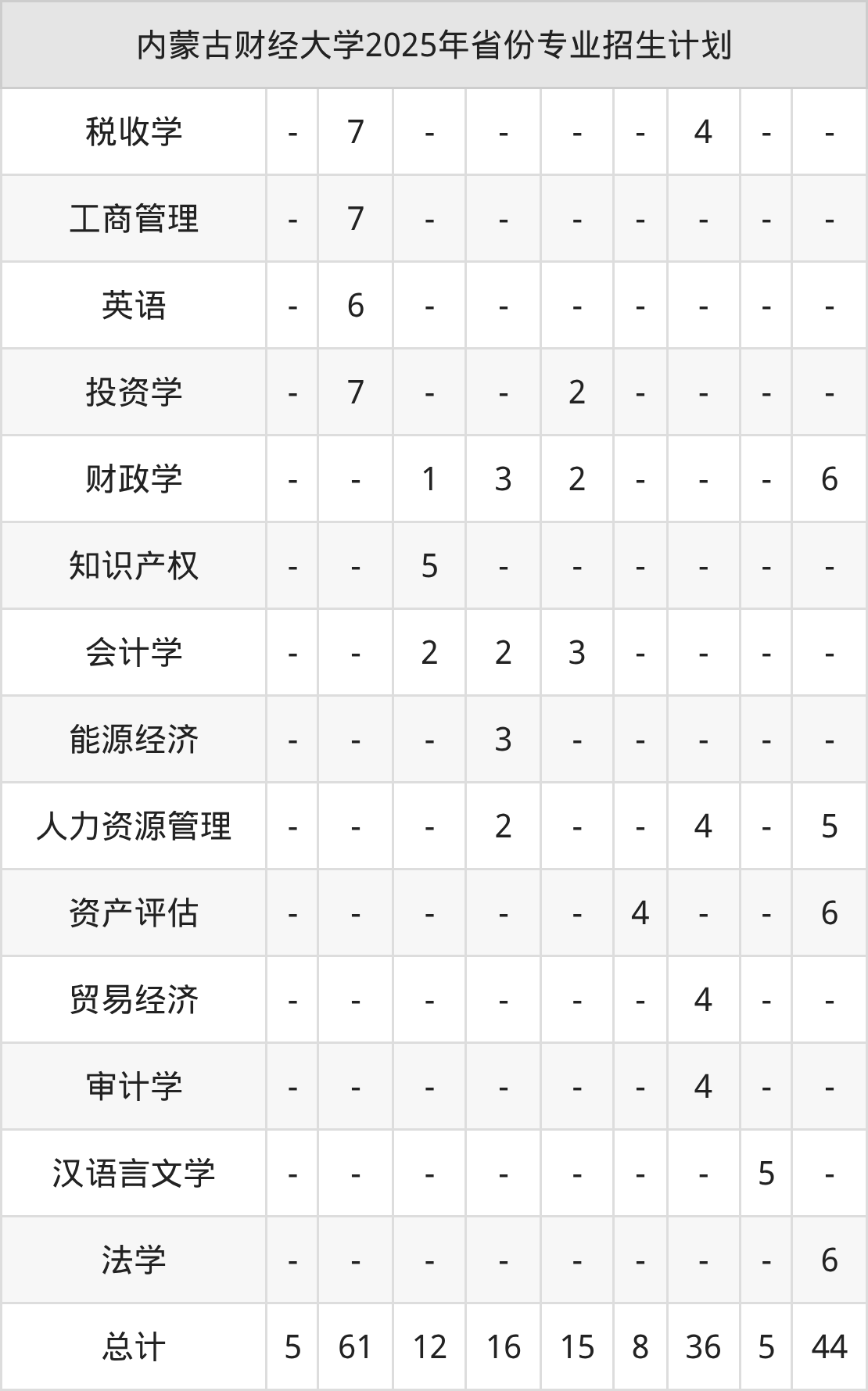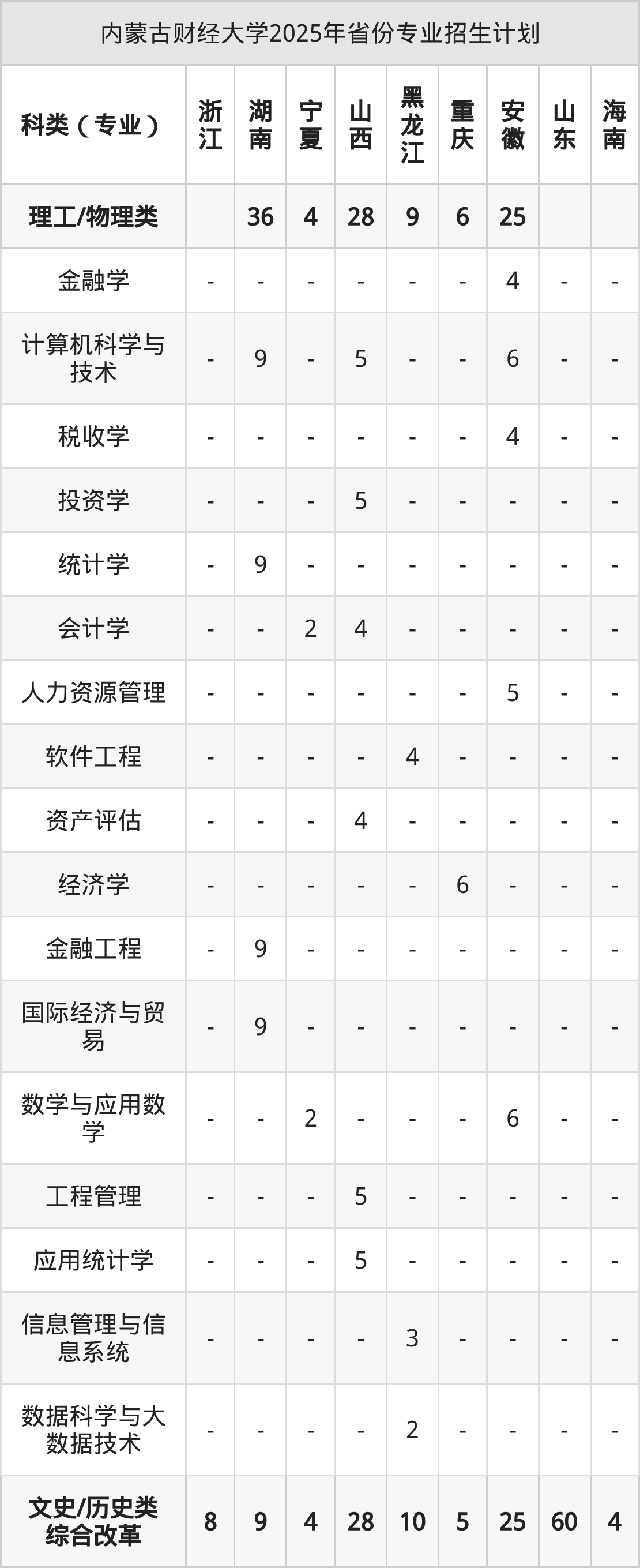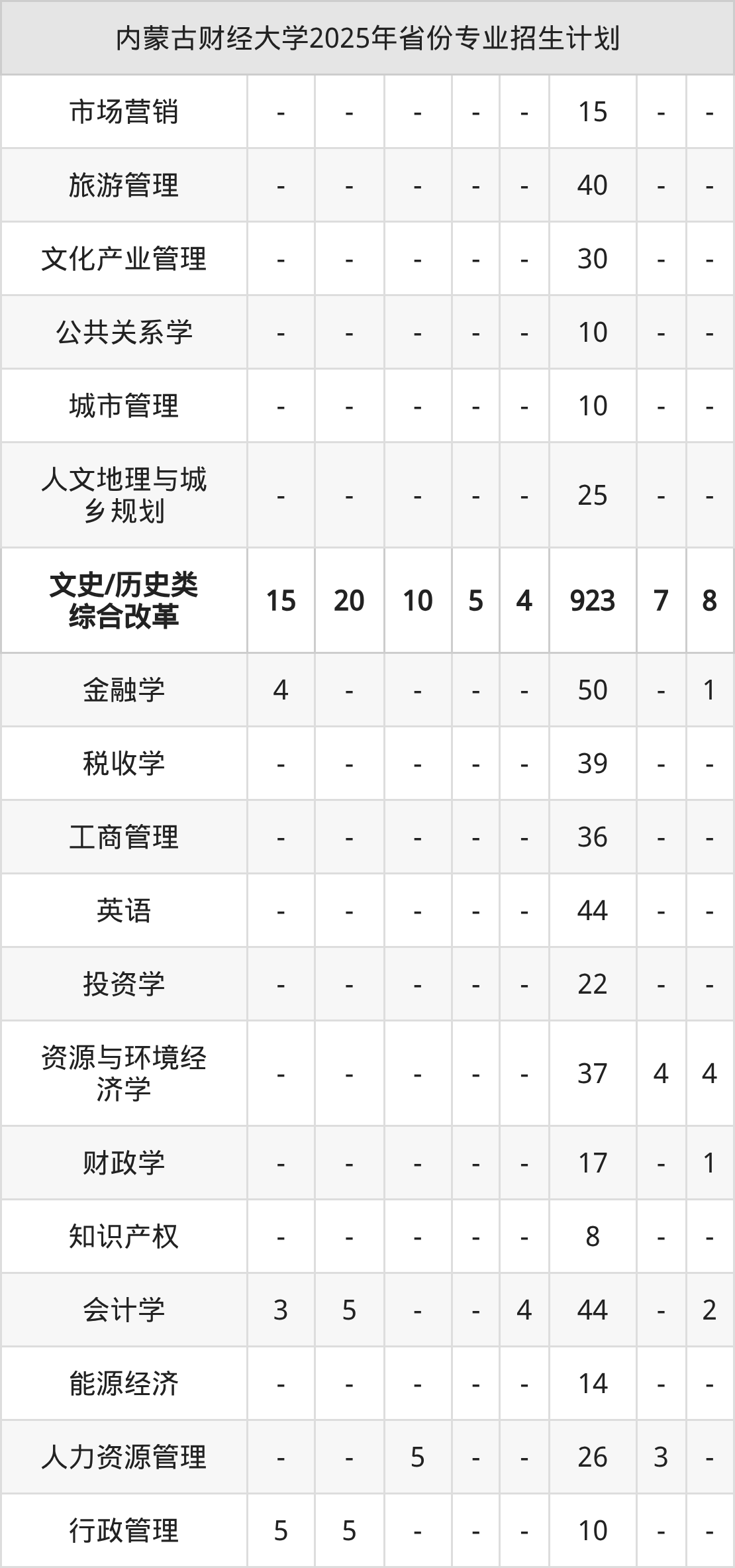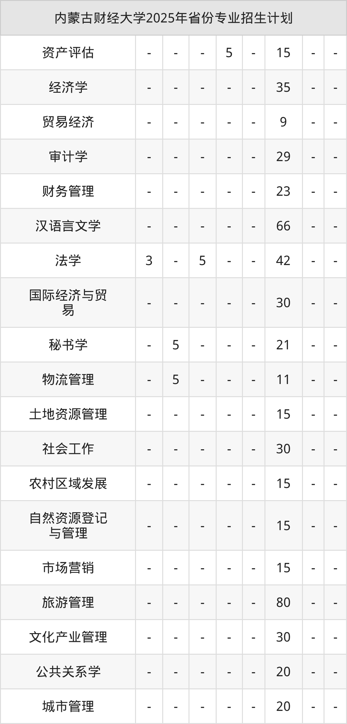 2026年内蒙古财经大学本科招生计划待公布,下面附上2025年数据,暂供参考: