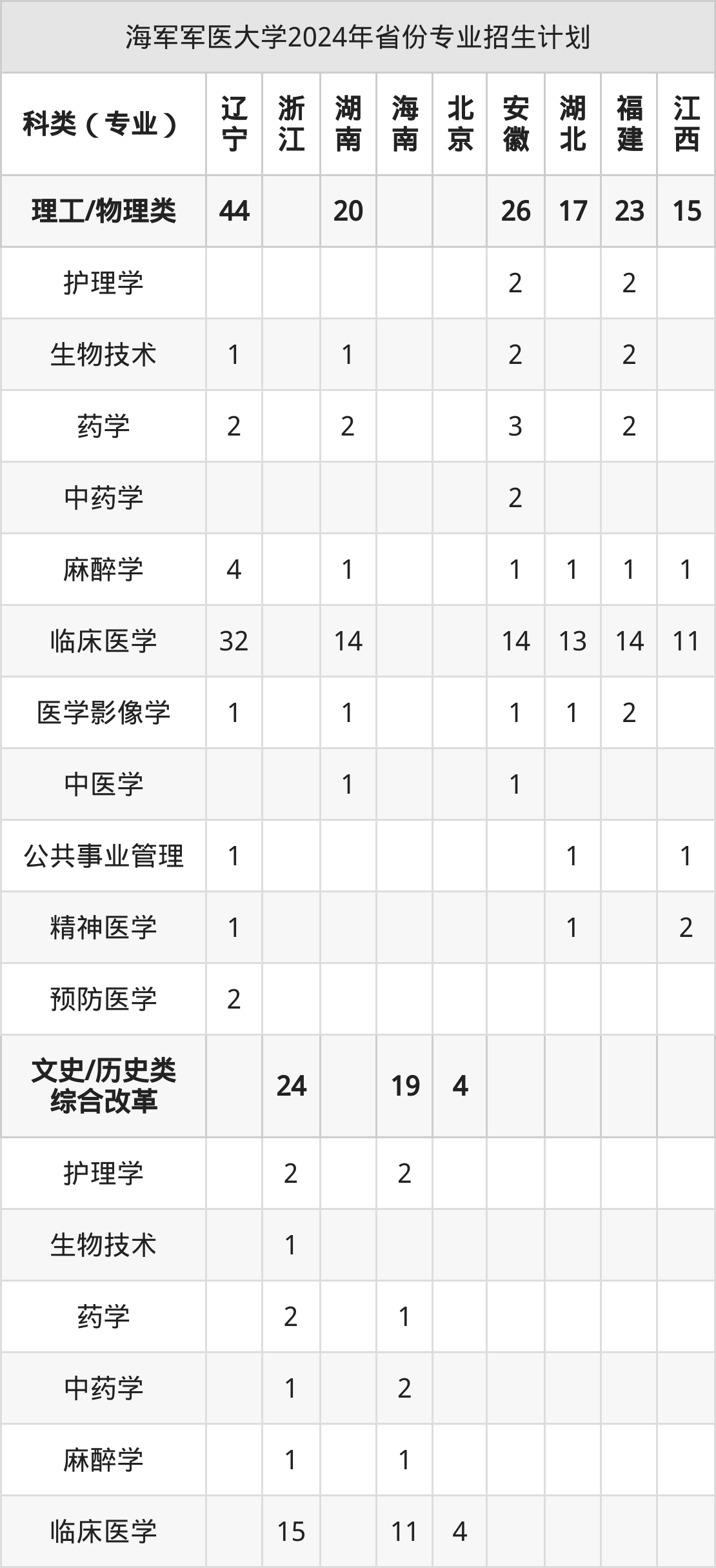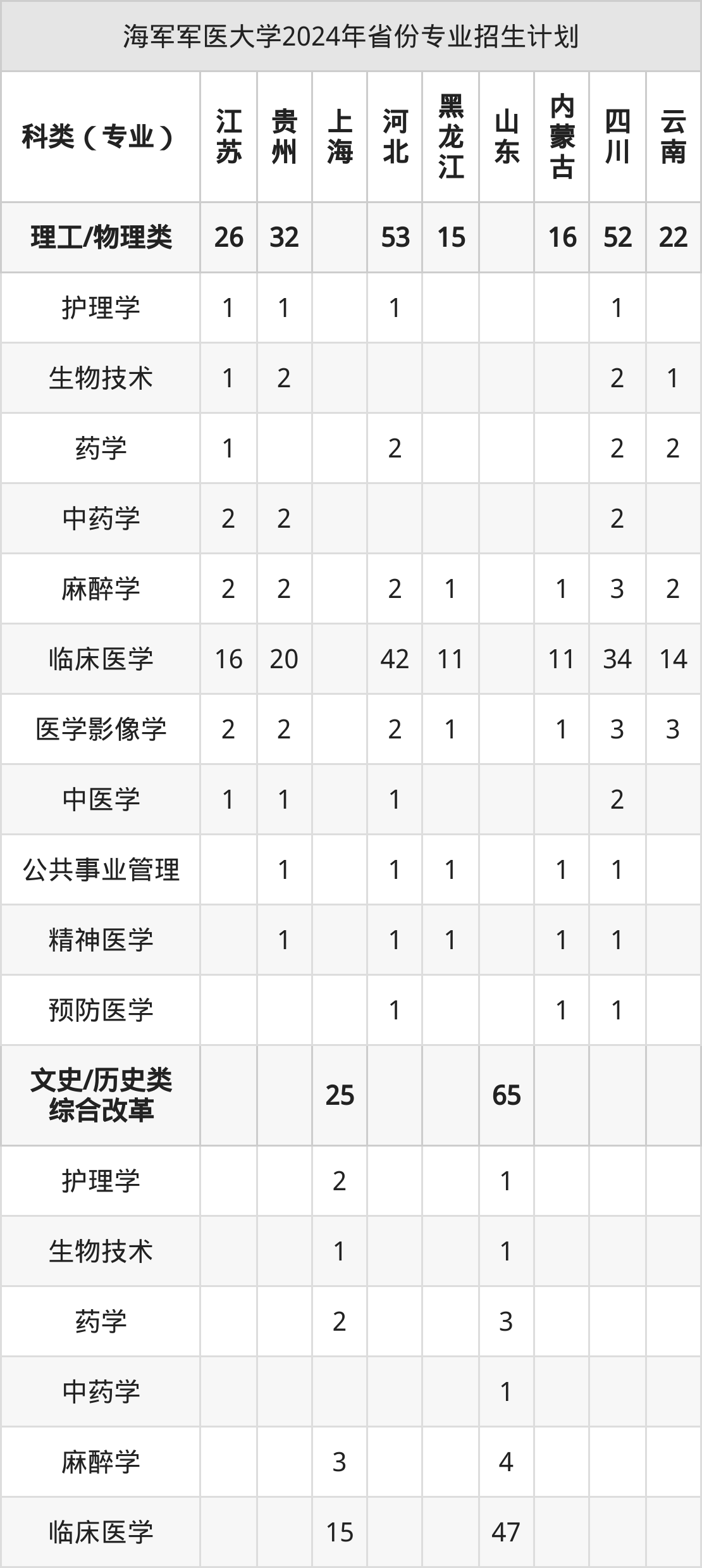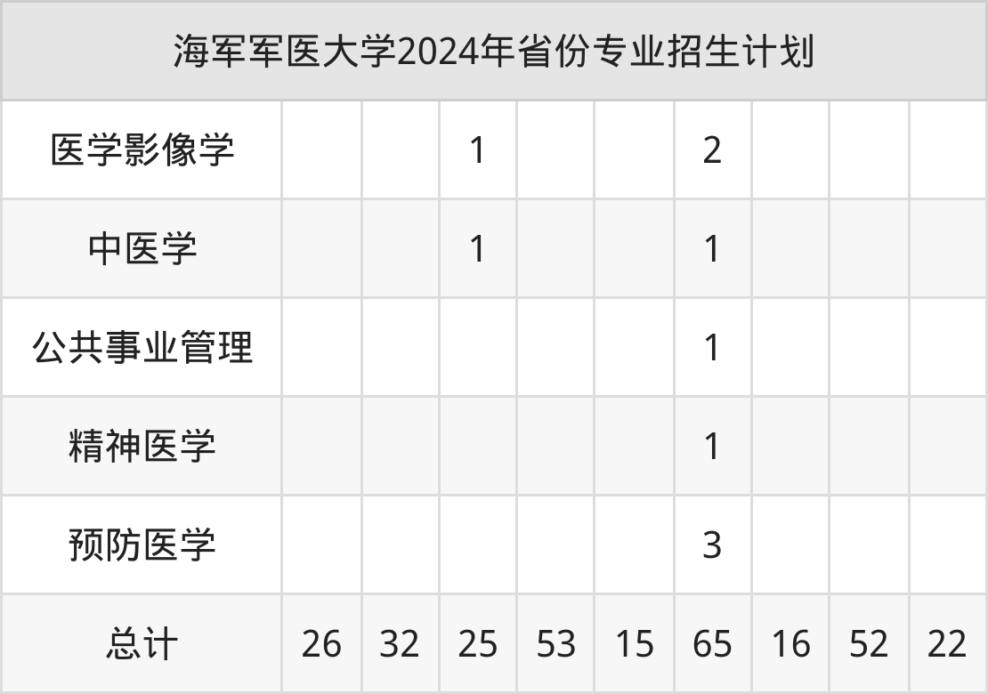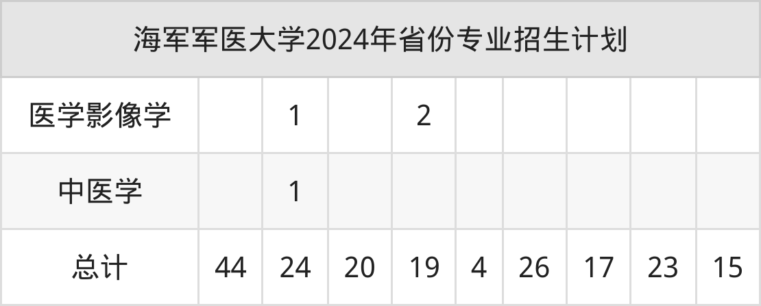 2025年海军军医大学本科招生计划待公布,下面附上2024年数据,暂供参考: