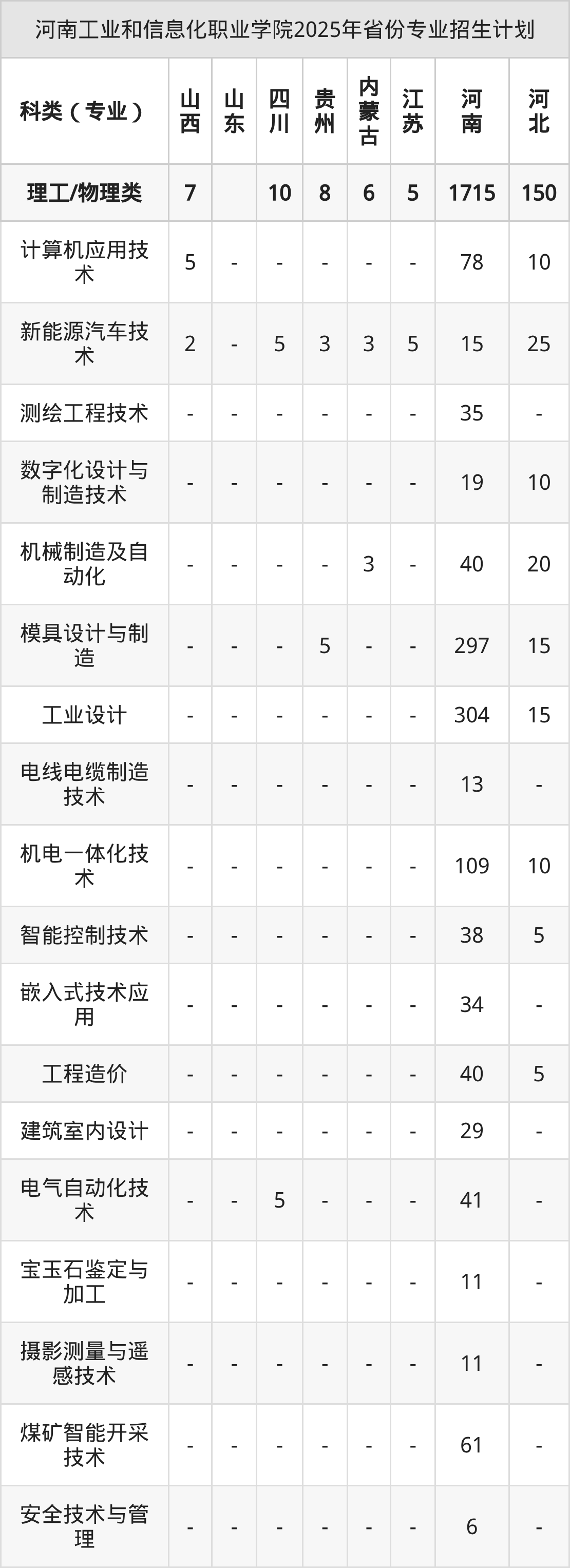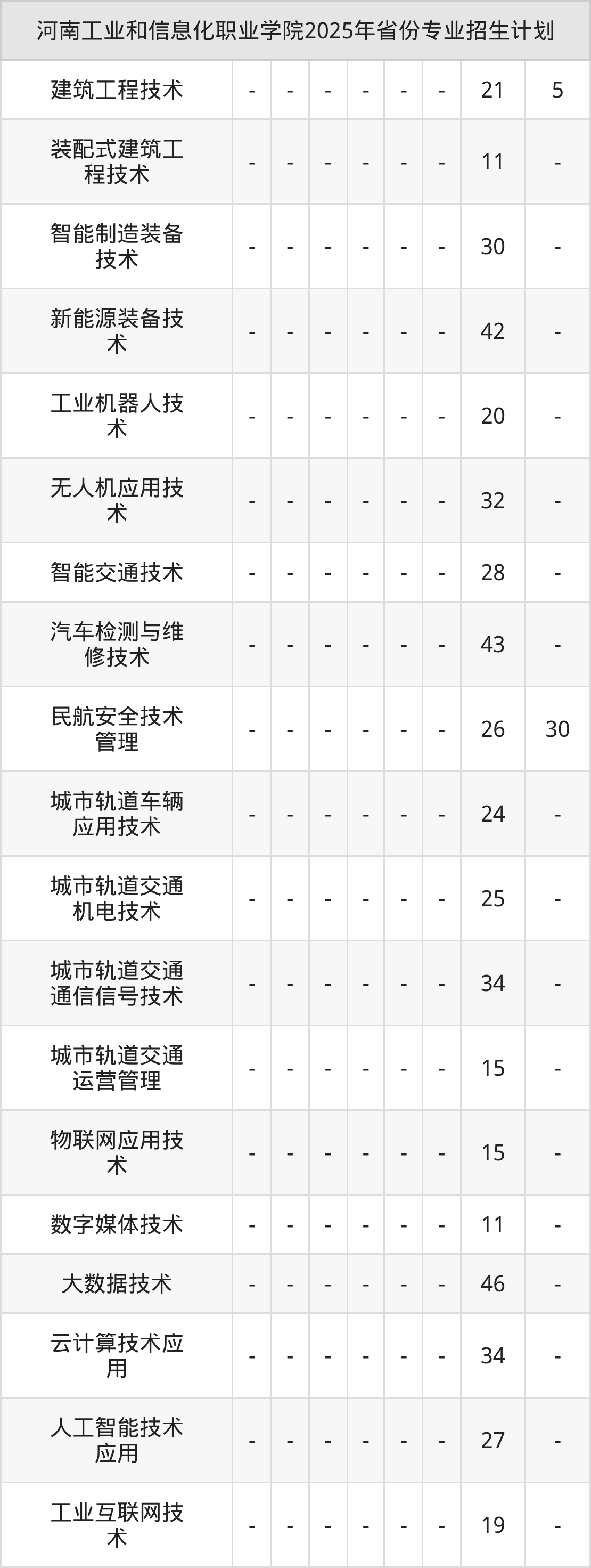 2026年河南工业和信息化职业学院专科招生计划待公布,下面附上2025年数据,暂供参考: