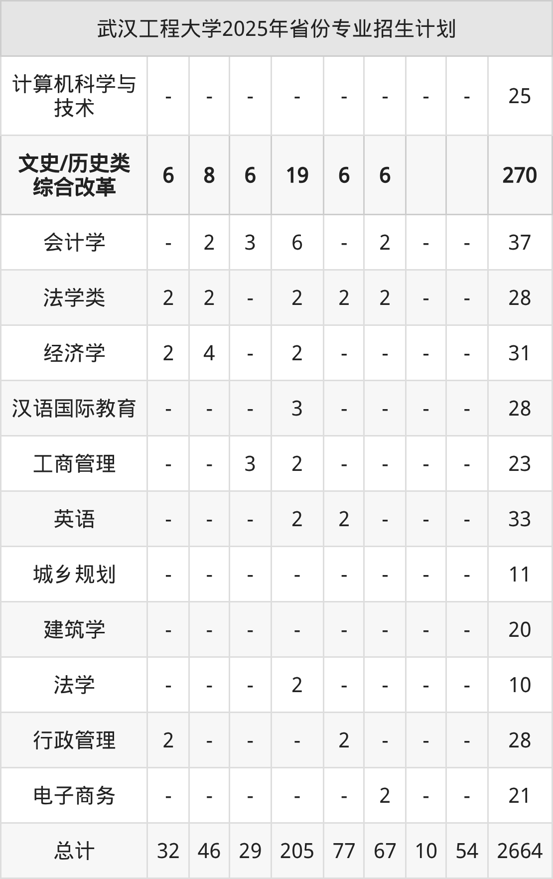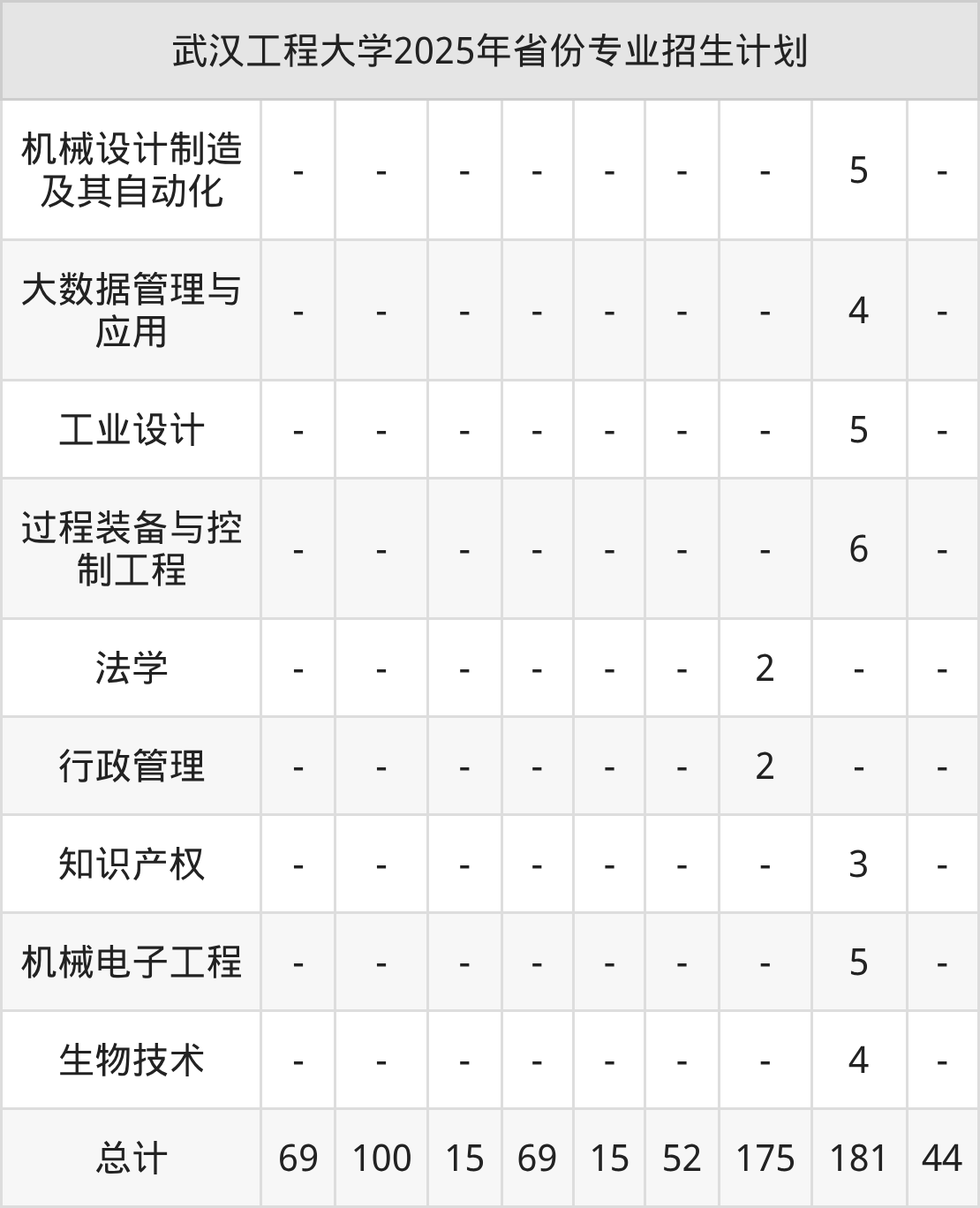 而各省份的招生计划数为湖南100人,山东181人,青海14人,广西147人,河南205人等。