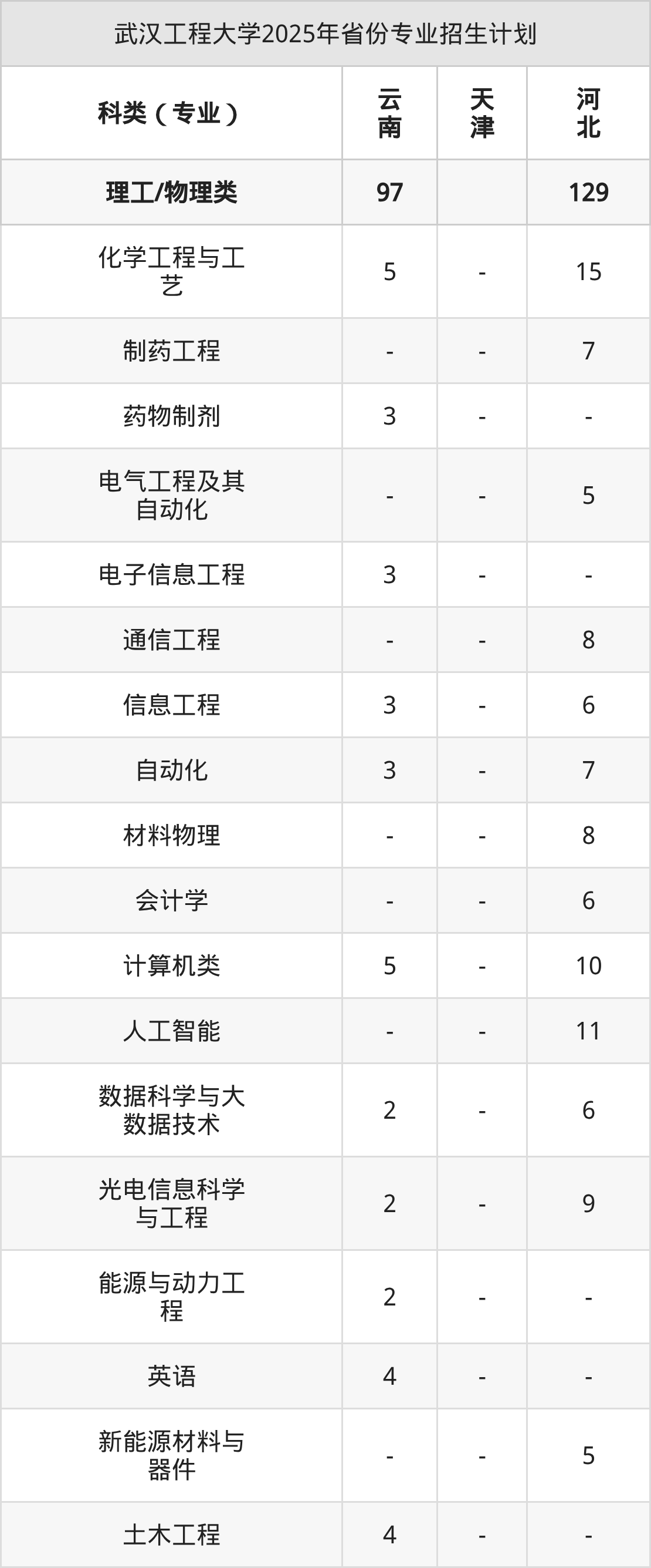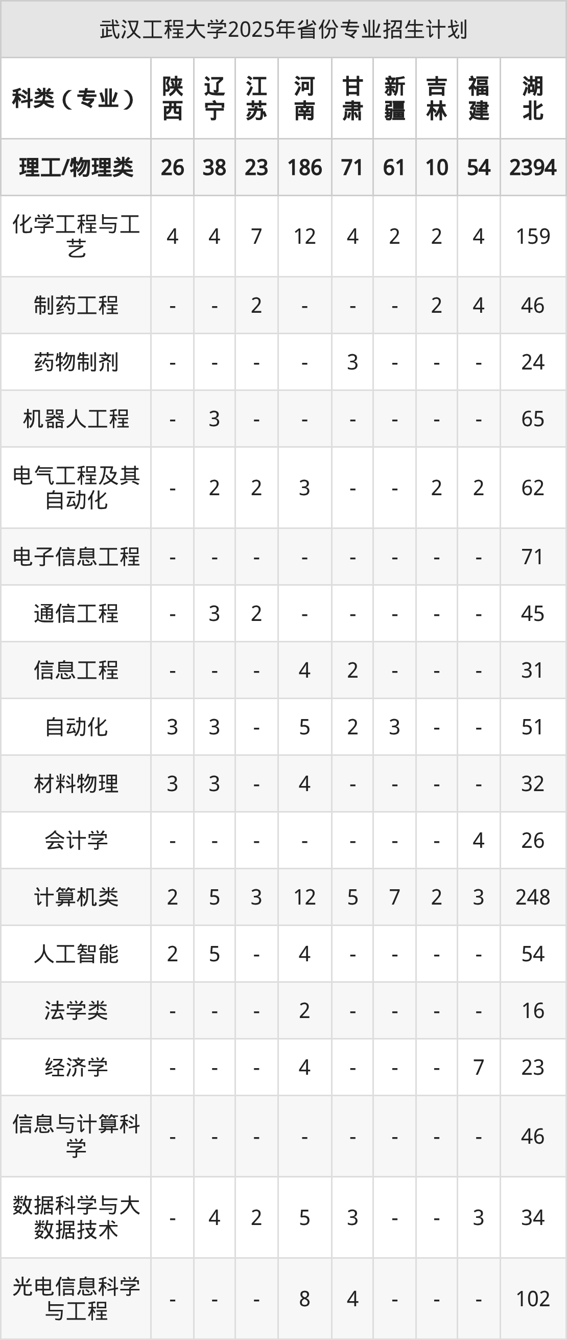 2026年武汉工程大学本科招生计划待公布,下面附上2025年数据,暂供参考: