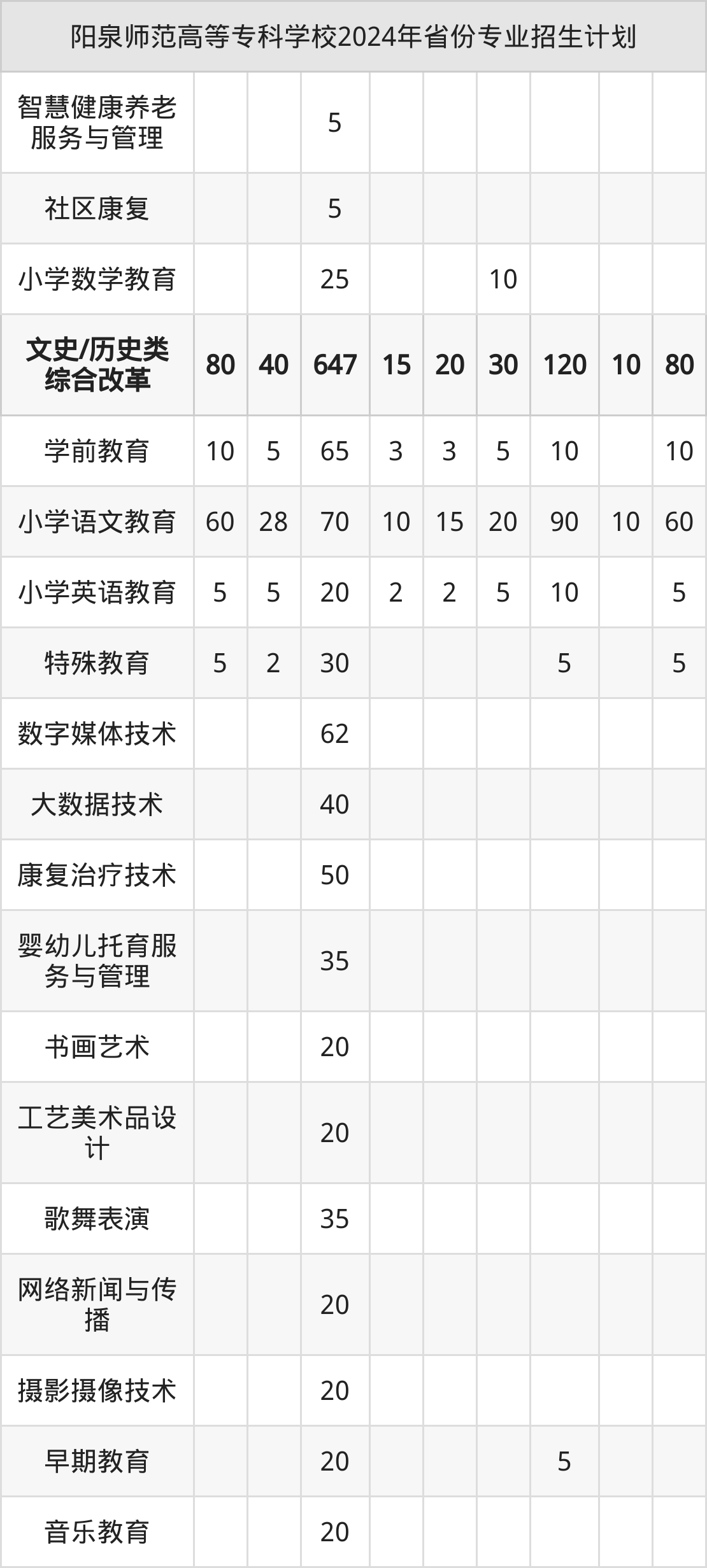 2025年阳泉师范高等专科学校专科招生计划待公布,下面附上2024年数据,暂供参考: