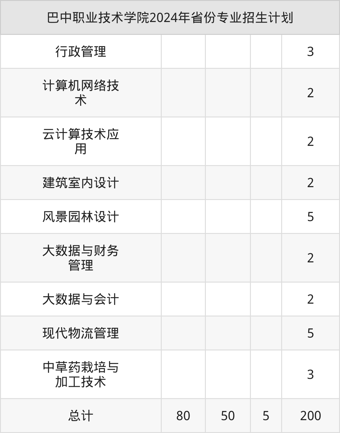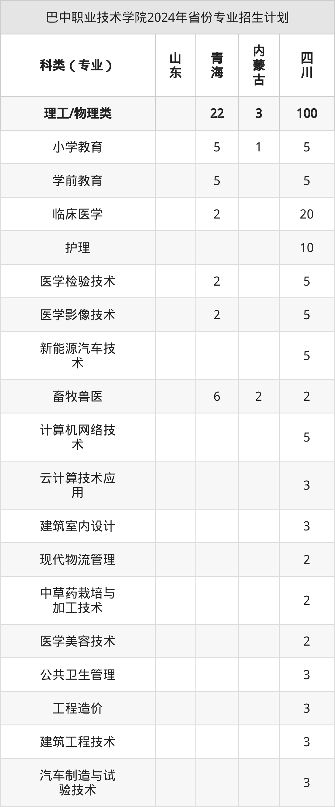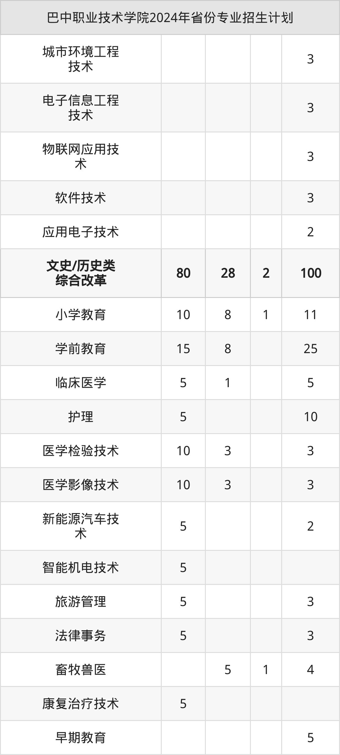 2025年巴中职业技术学院专科招生计划待公布,下面附上2024年数据,暂供参考: