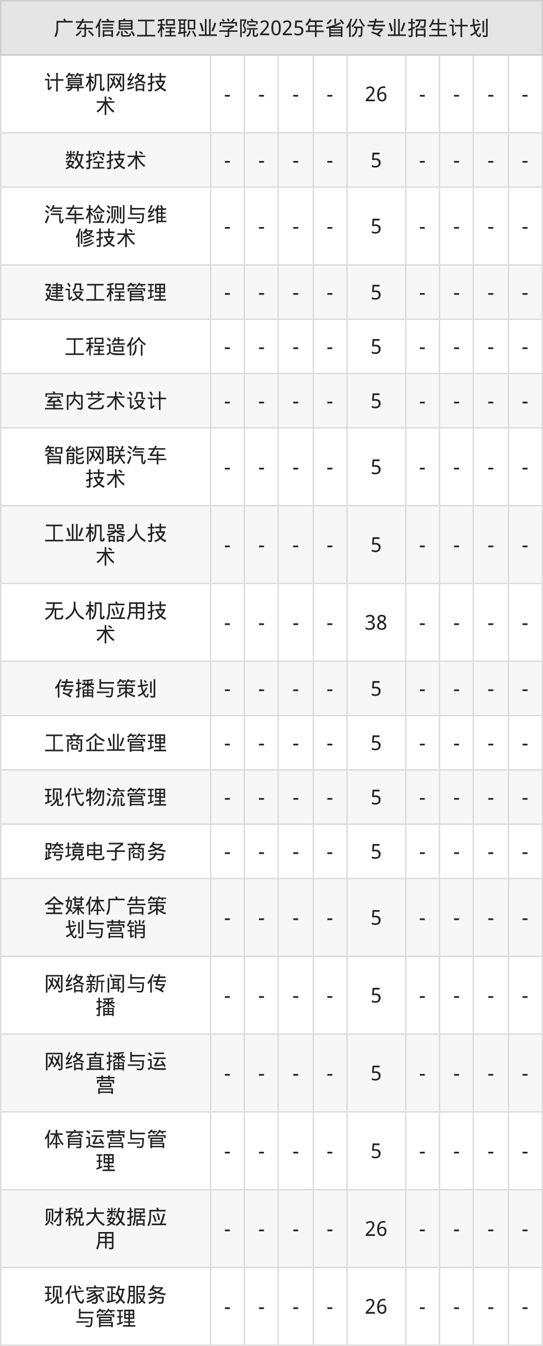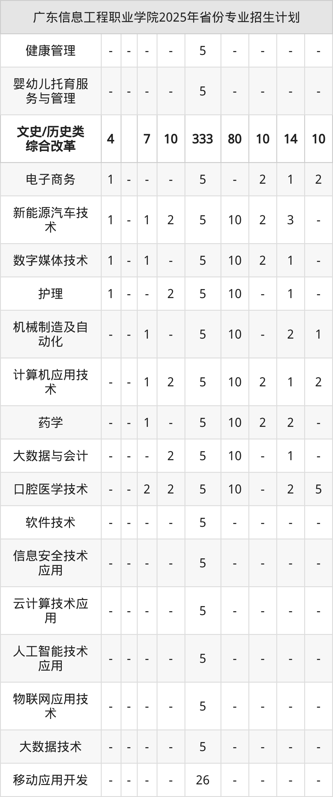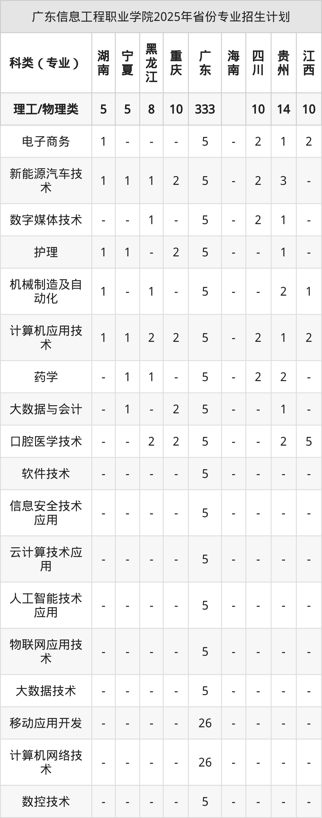 2026年广东信息工程职业学院专科招生计划待公布,下面附上2025年数据,暂供参考: