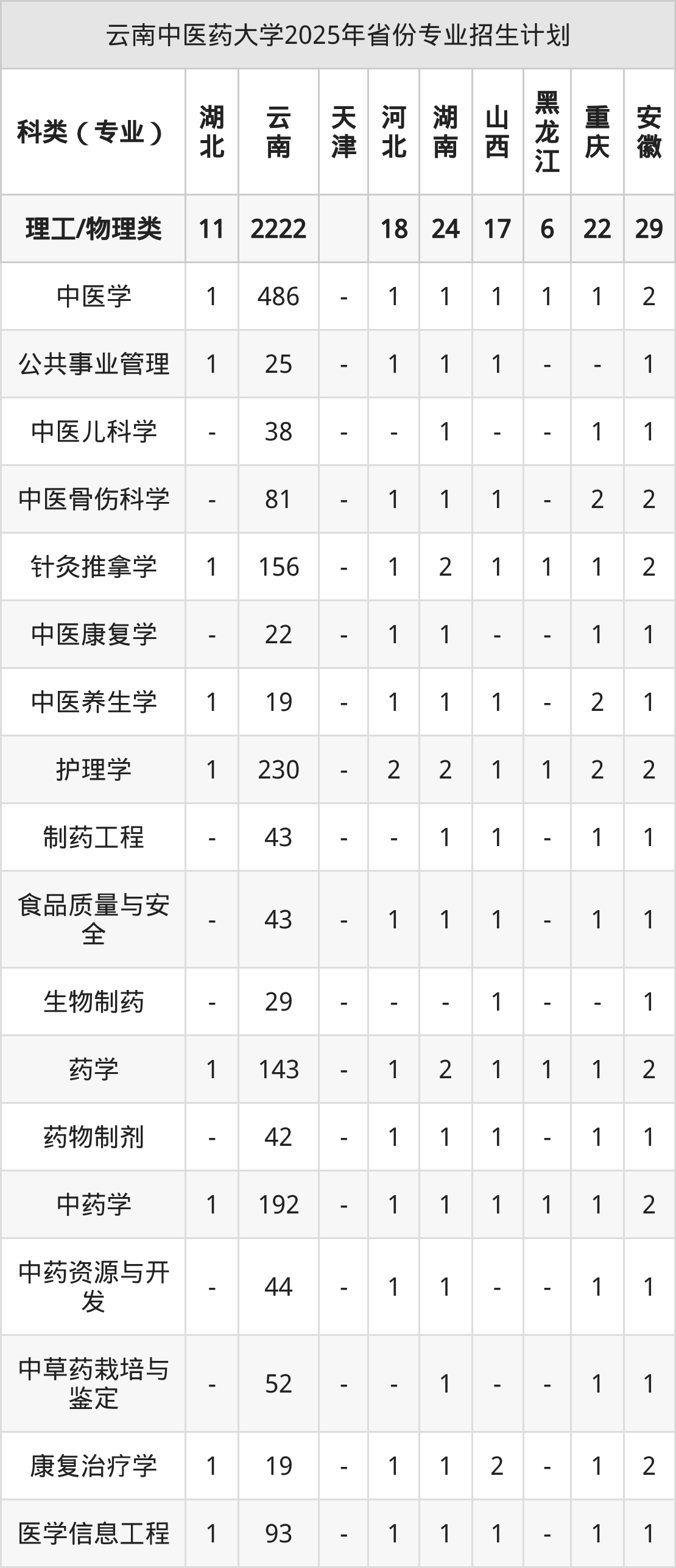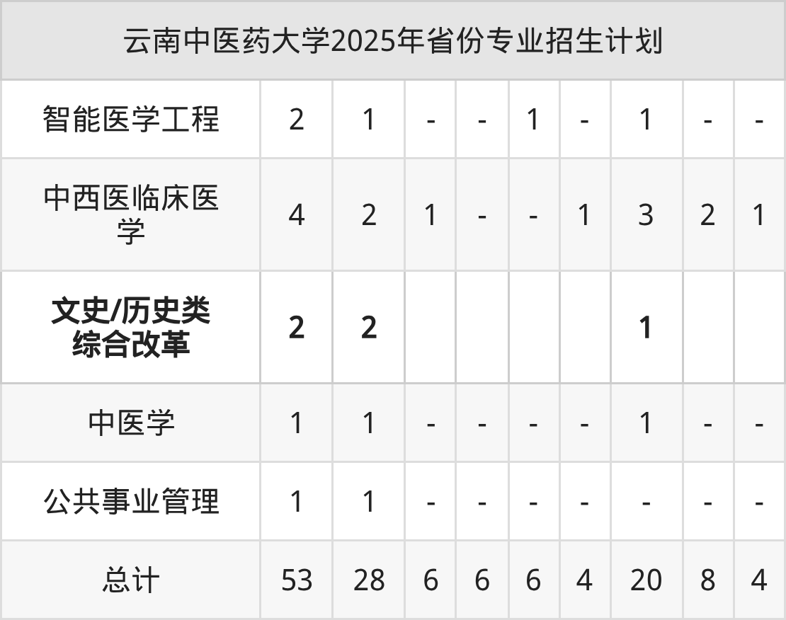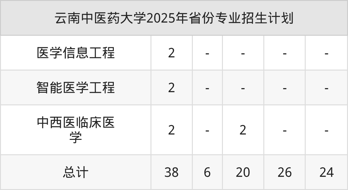2026年云南中医药大学本科招生计划待公布,下面附上2025年数据,暂供参考: