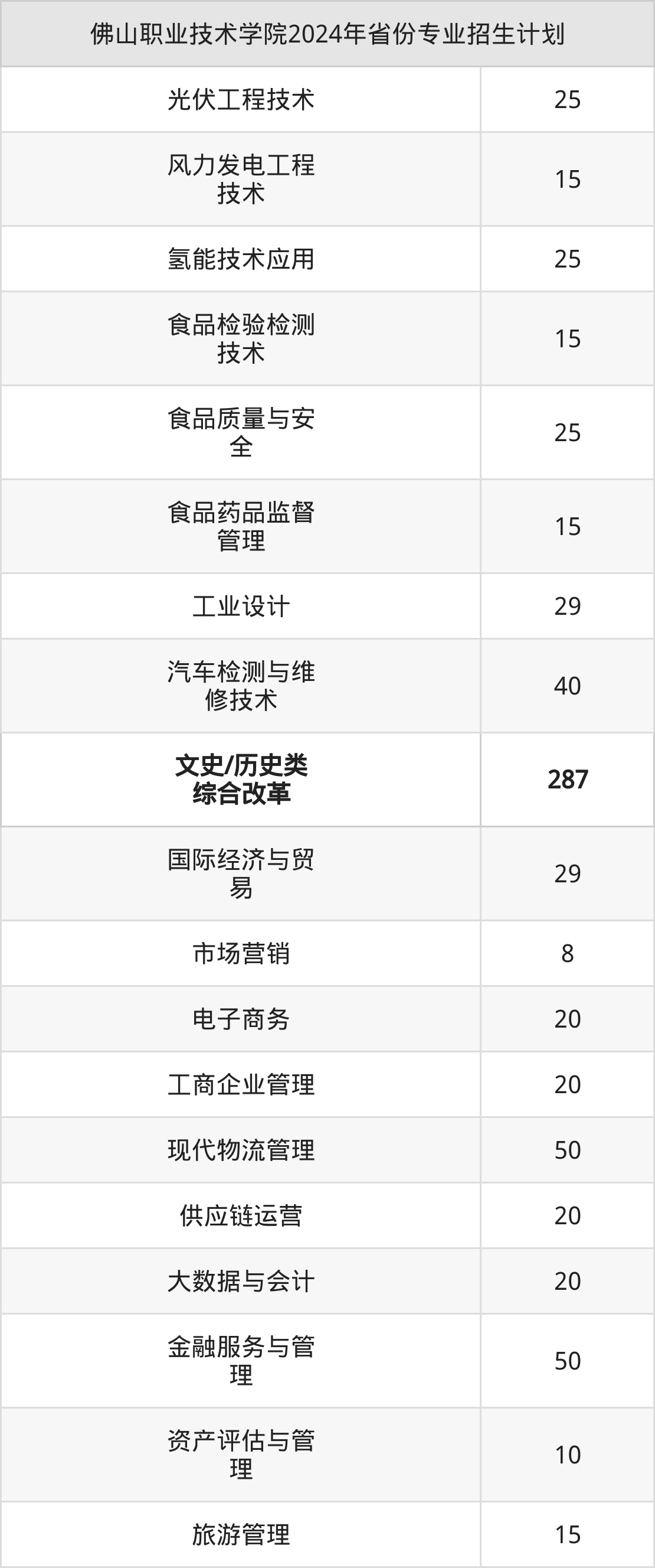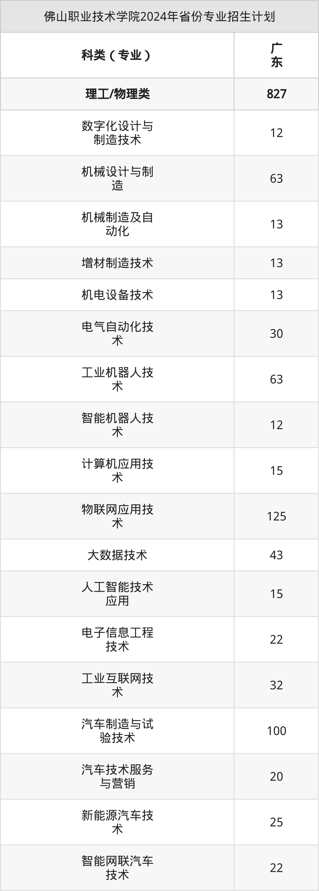 2025年佛山职业技术学院专科招生计划待公布,下面附上2024年数据,暂供参考: