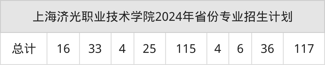 2025年上海济光职业技术学院专科招生计划待公布,下面附上2024年数据,暂供参考: