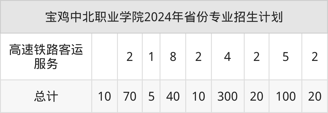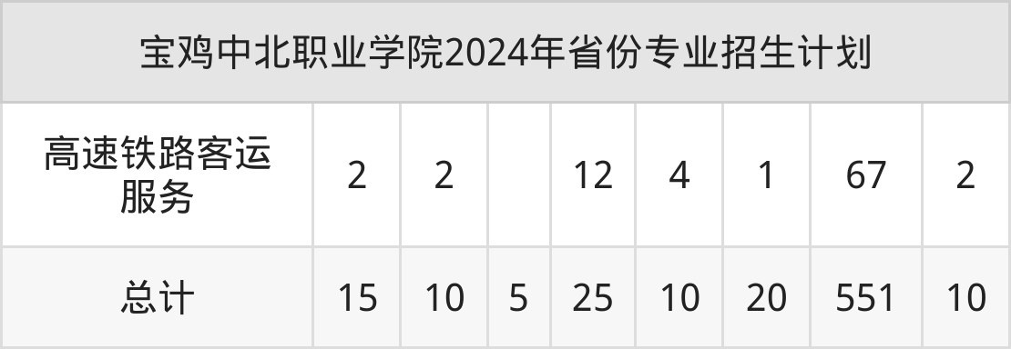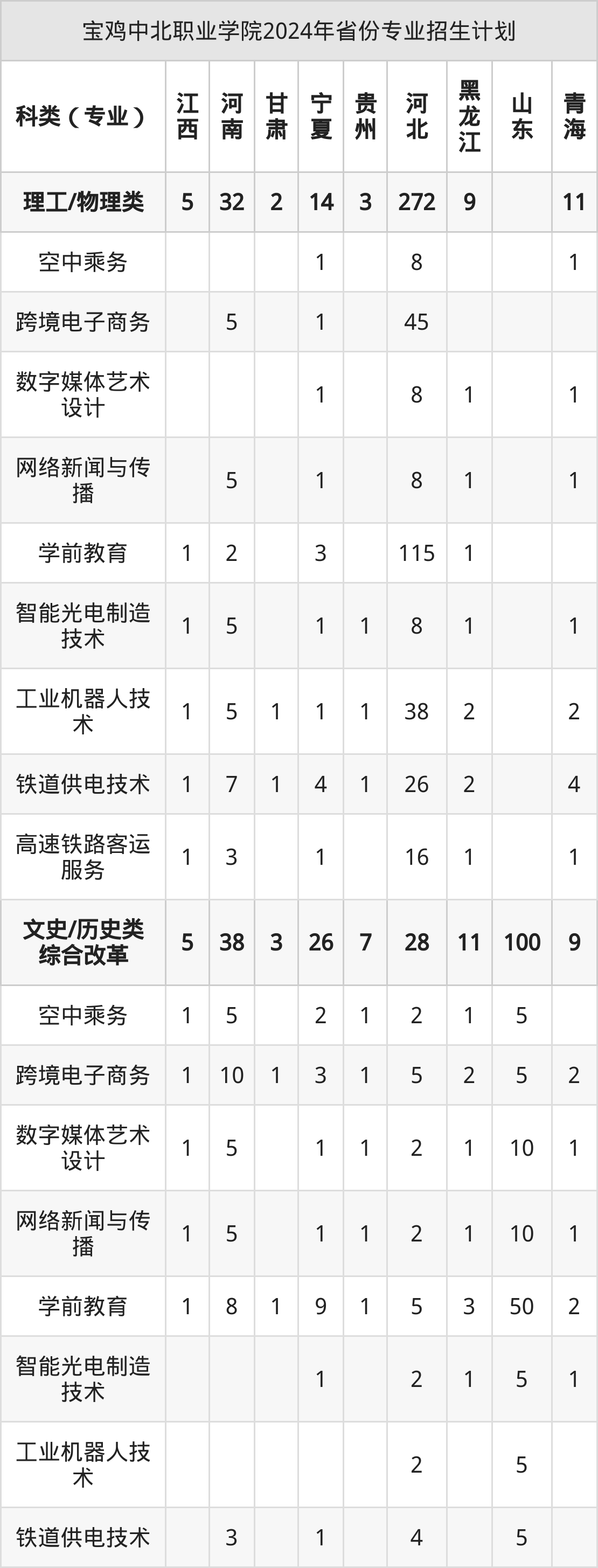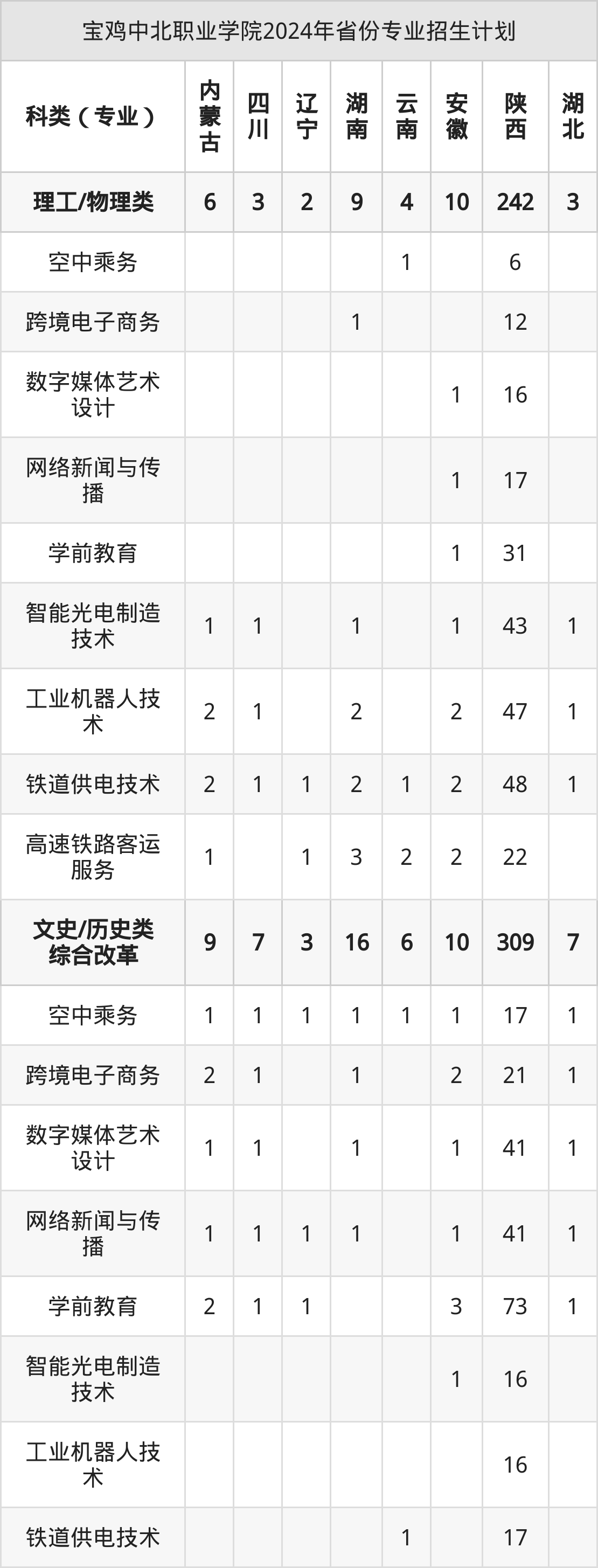 2025年宝鸡中北职业学院专科招生计划待公布,下面附上2024年数据,暂供参考: